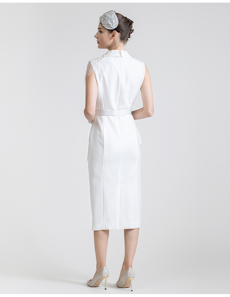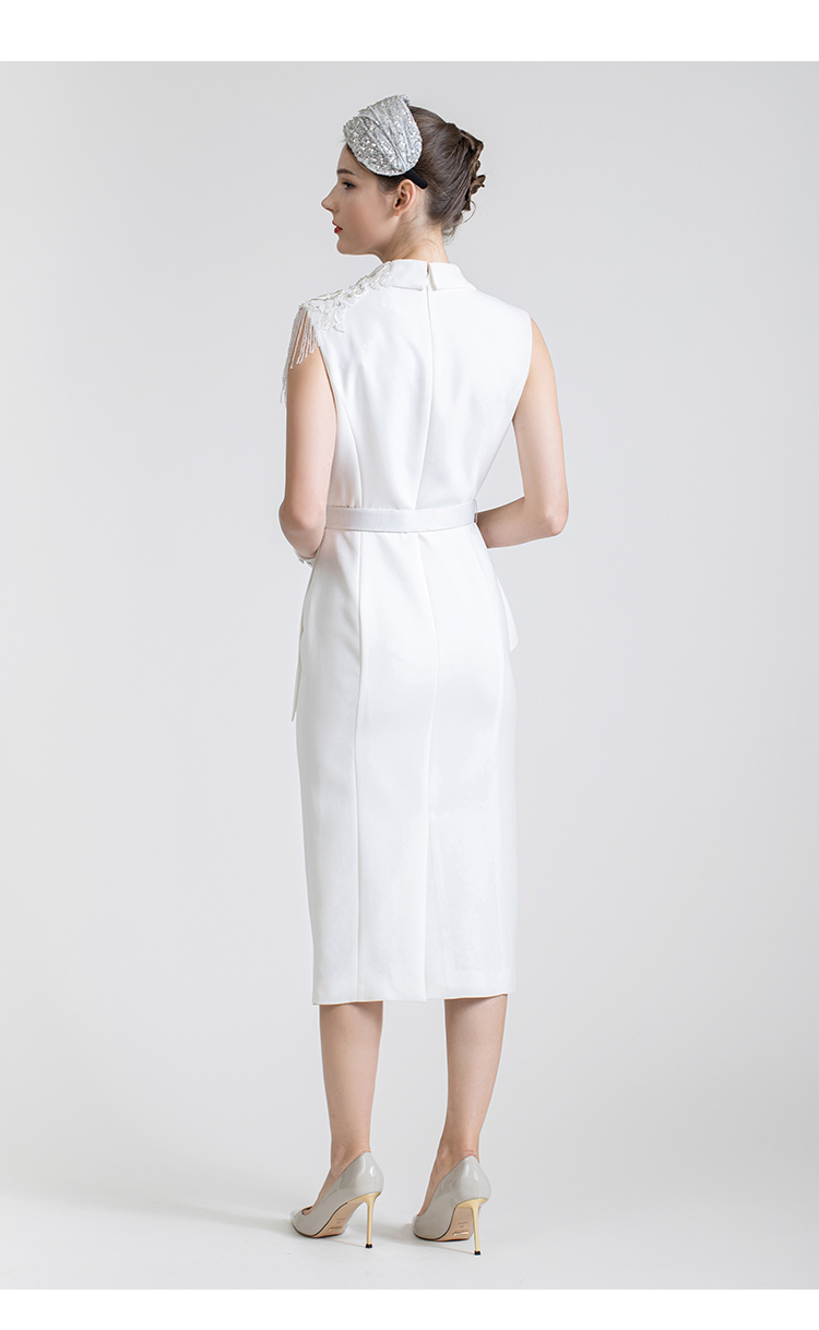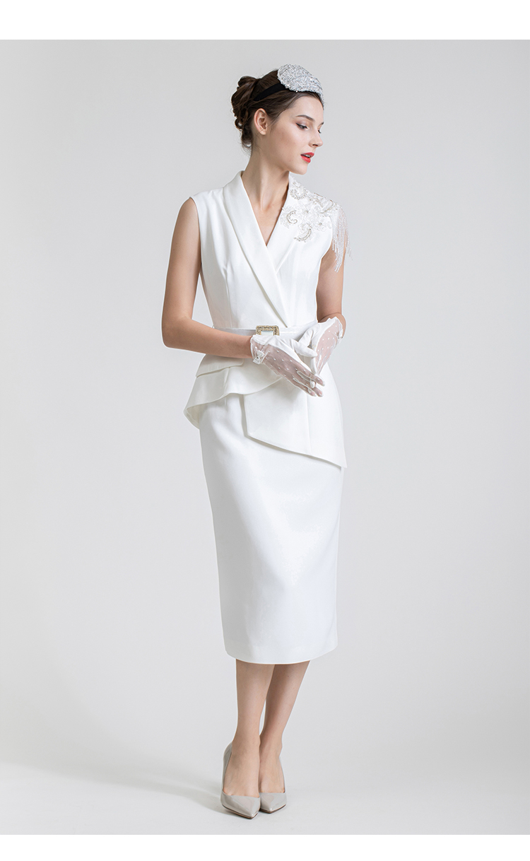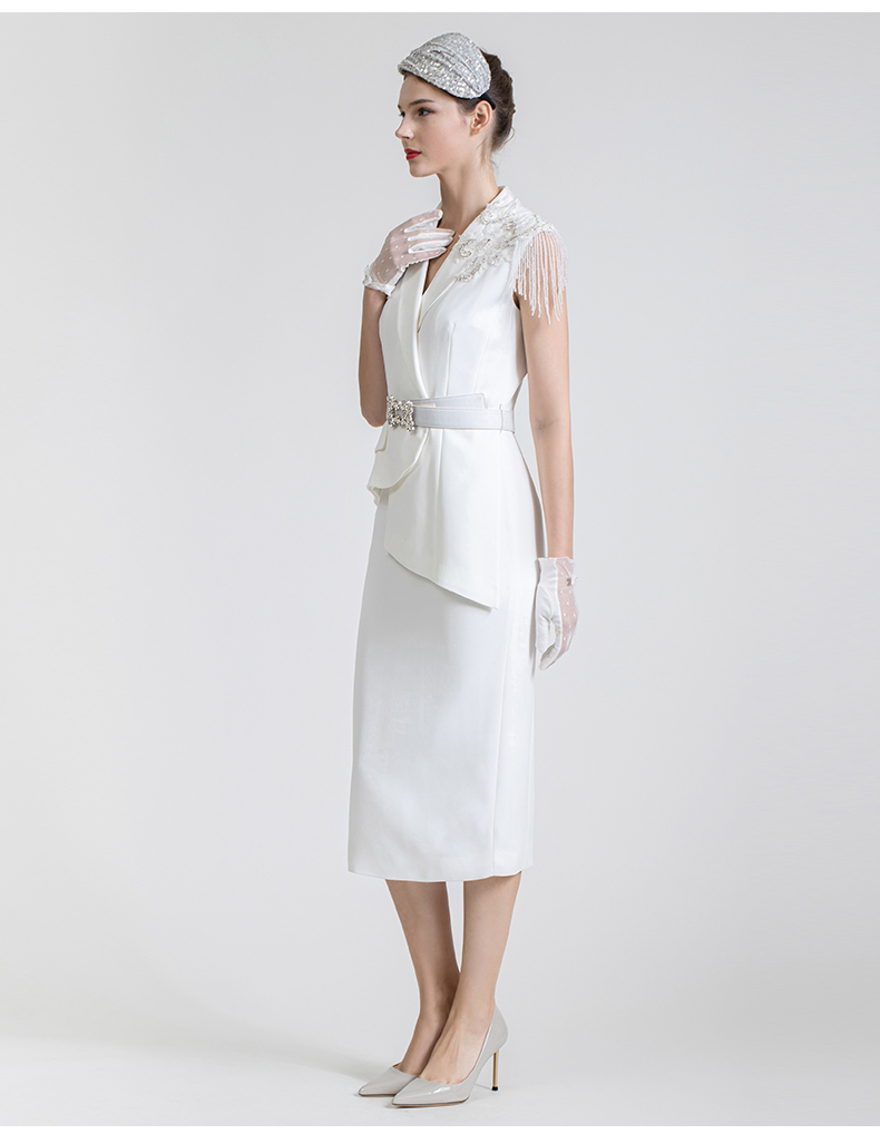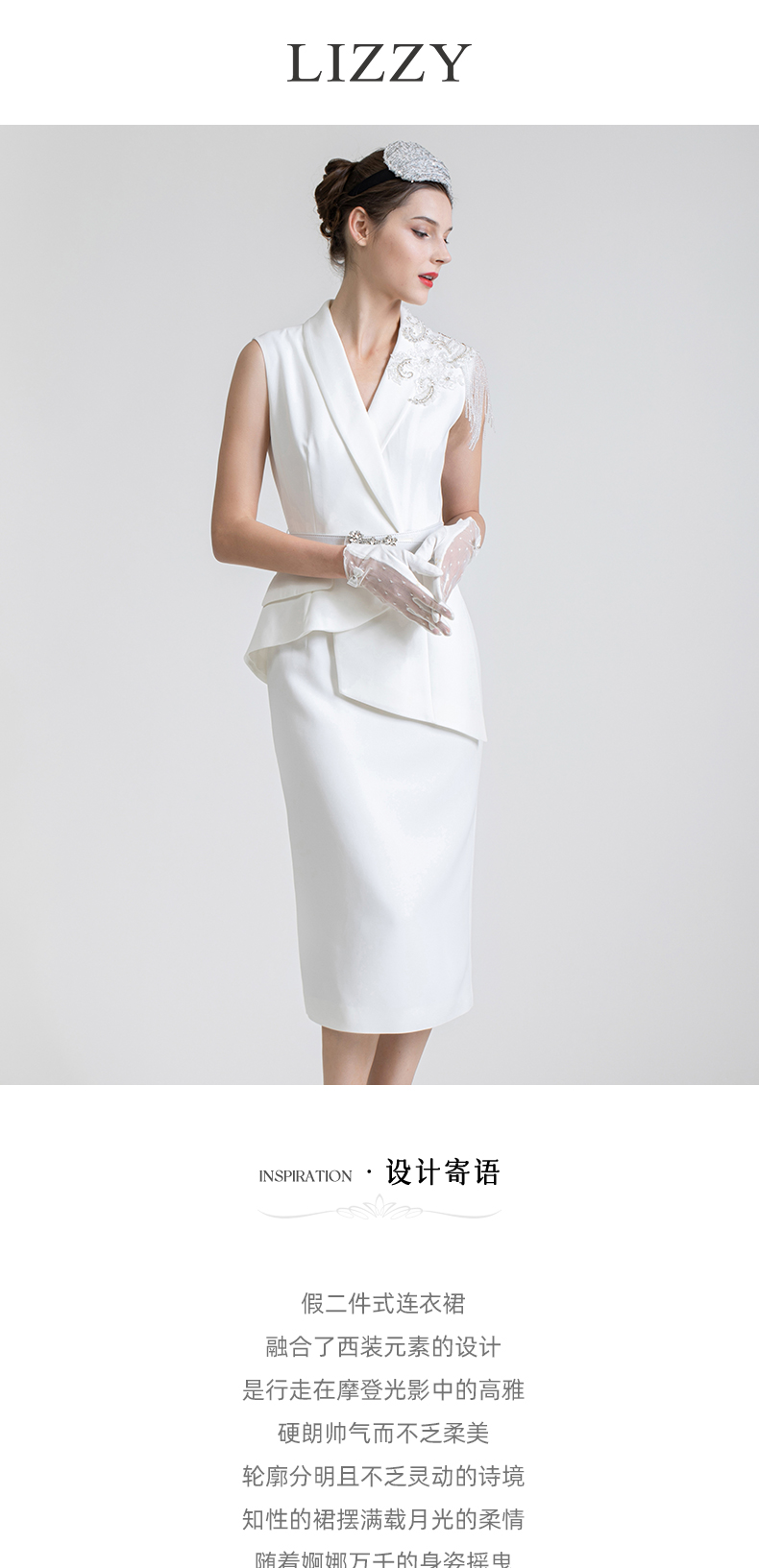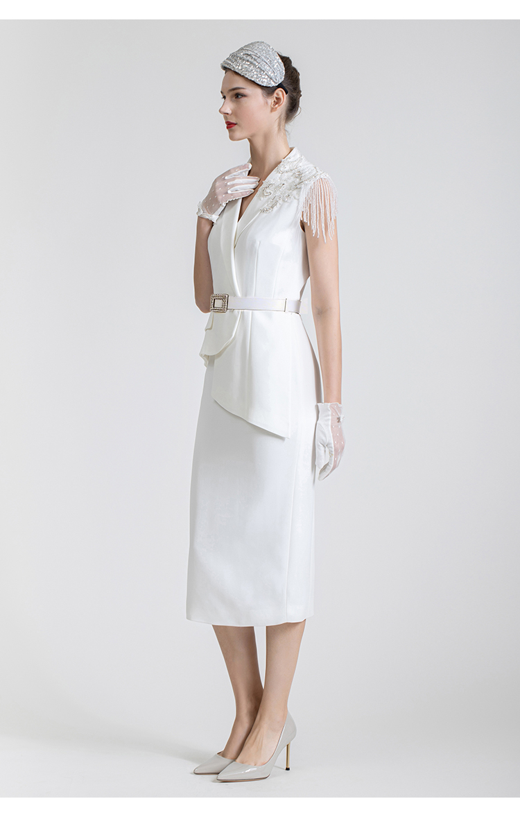LIZZY 西装领钉珠流苏假二件式连衣裙7434