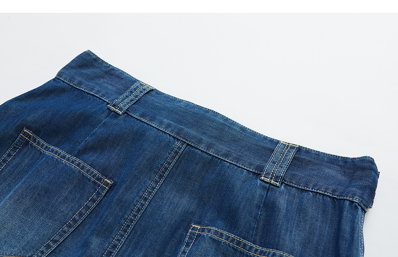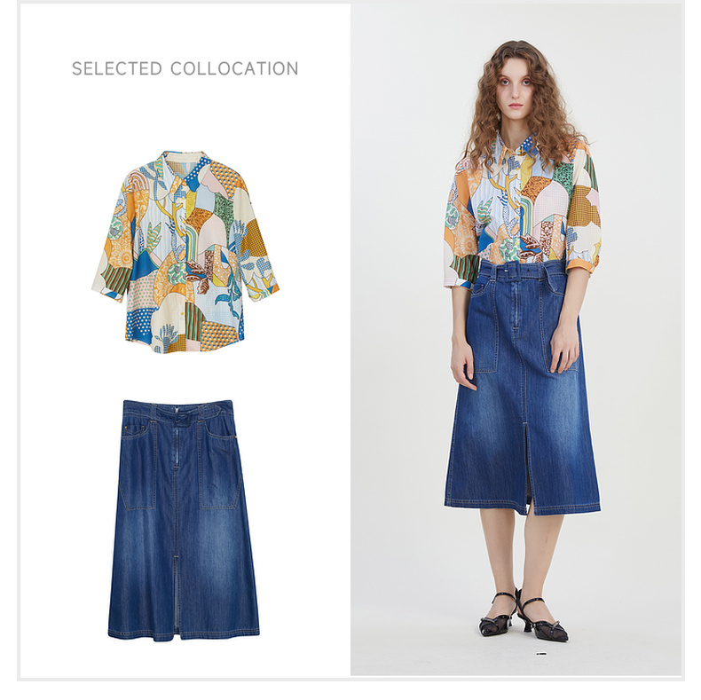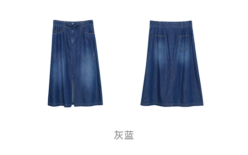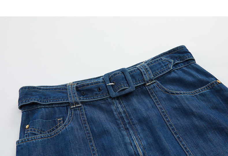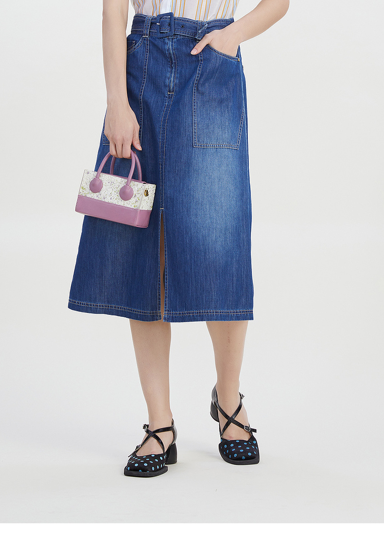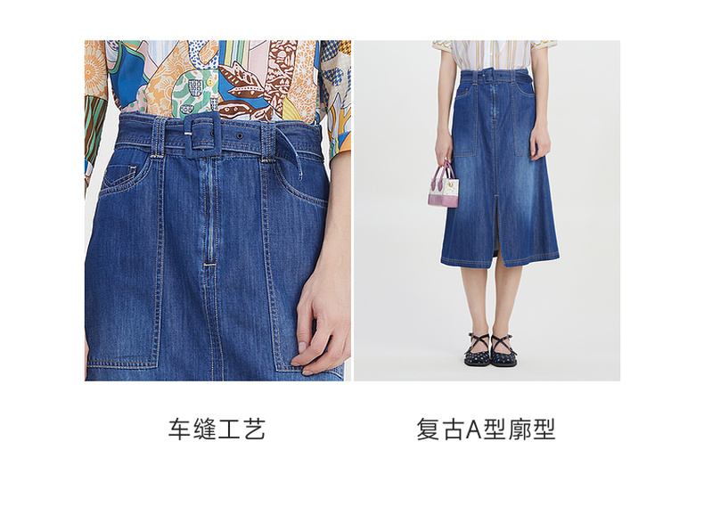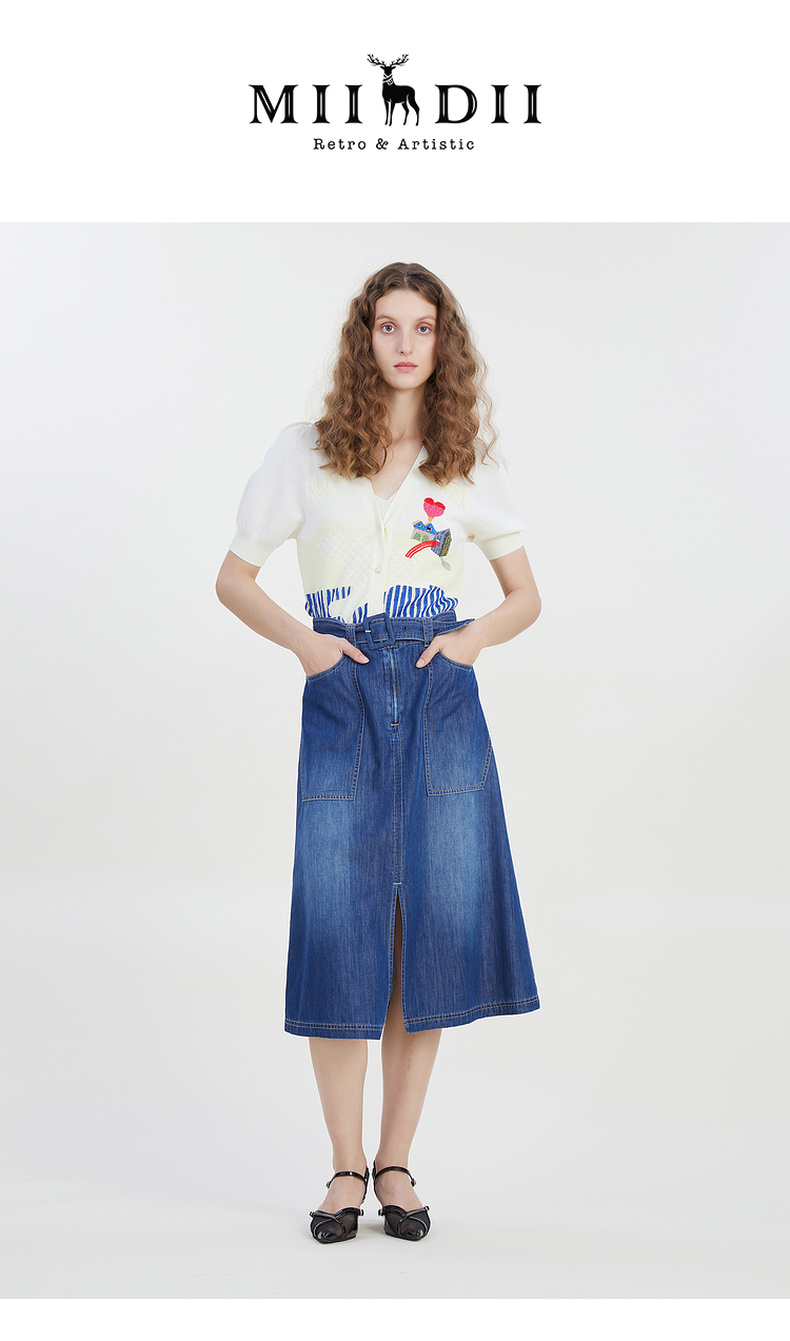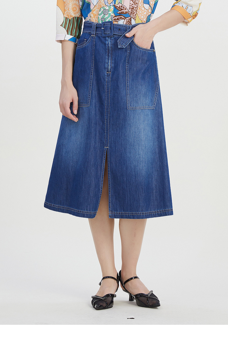 谜底2023夏季新款高腰牛仔半身裙A型前开叉中长裙配腰带232MB0530