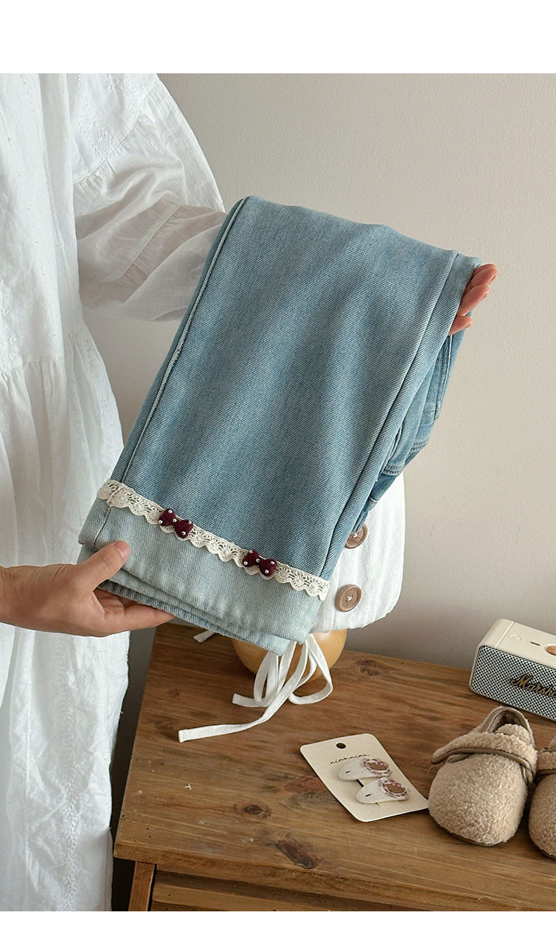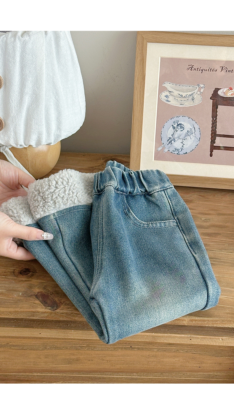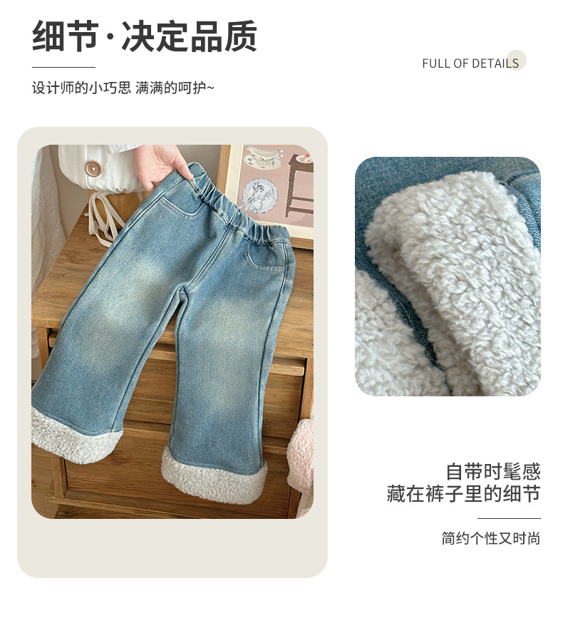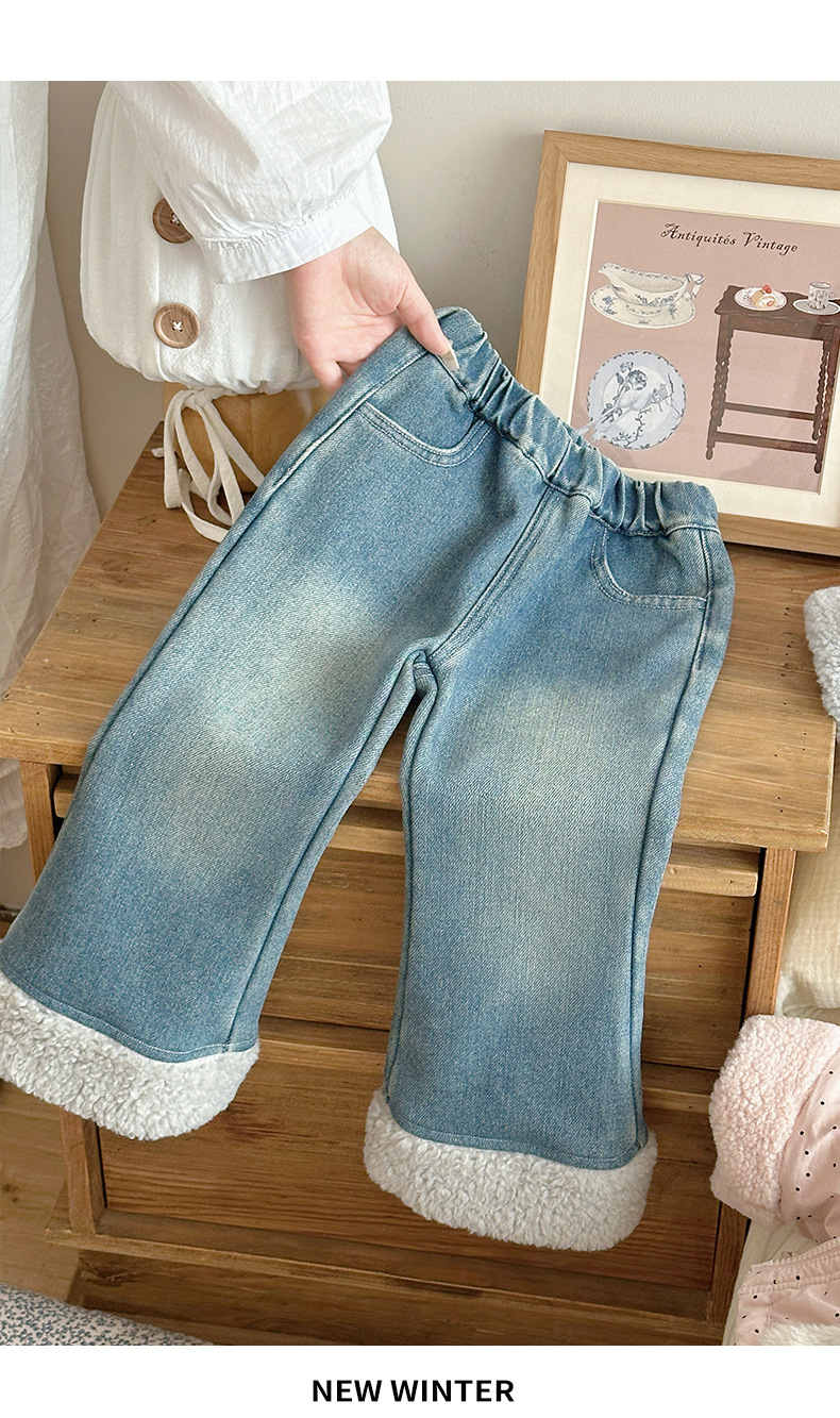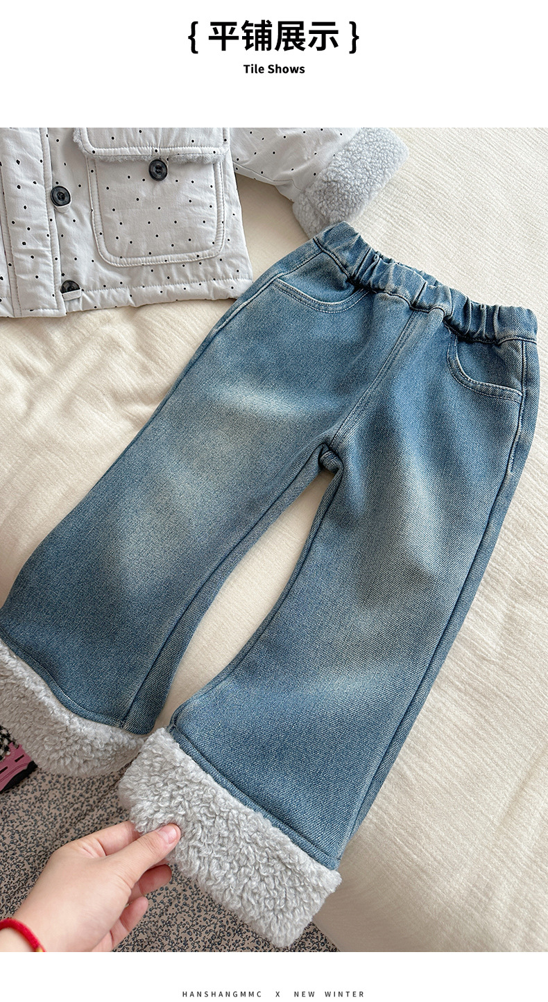 部分码数预售7天内发货!!【儿童服饰丨吾家儿童加绒牛仔裤】内里加绒面料细腻,质地柔软,高弹力松紧裤腰设计,不易挑身型,经典色系搭配花边设计简约不失时髦度,版型廓形宽松舒适,出街或上学穿搭都合适
