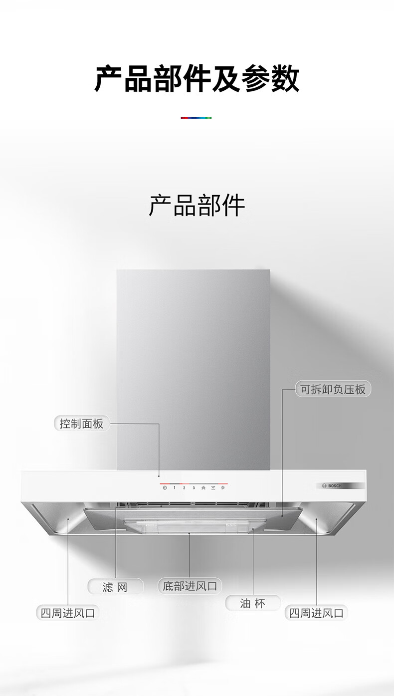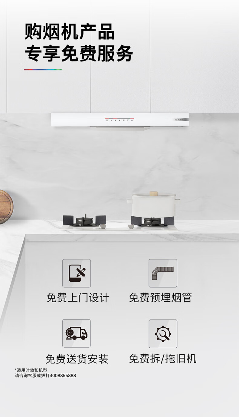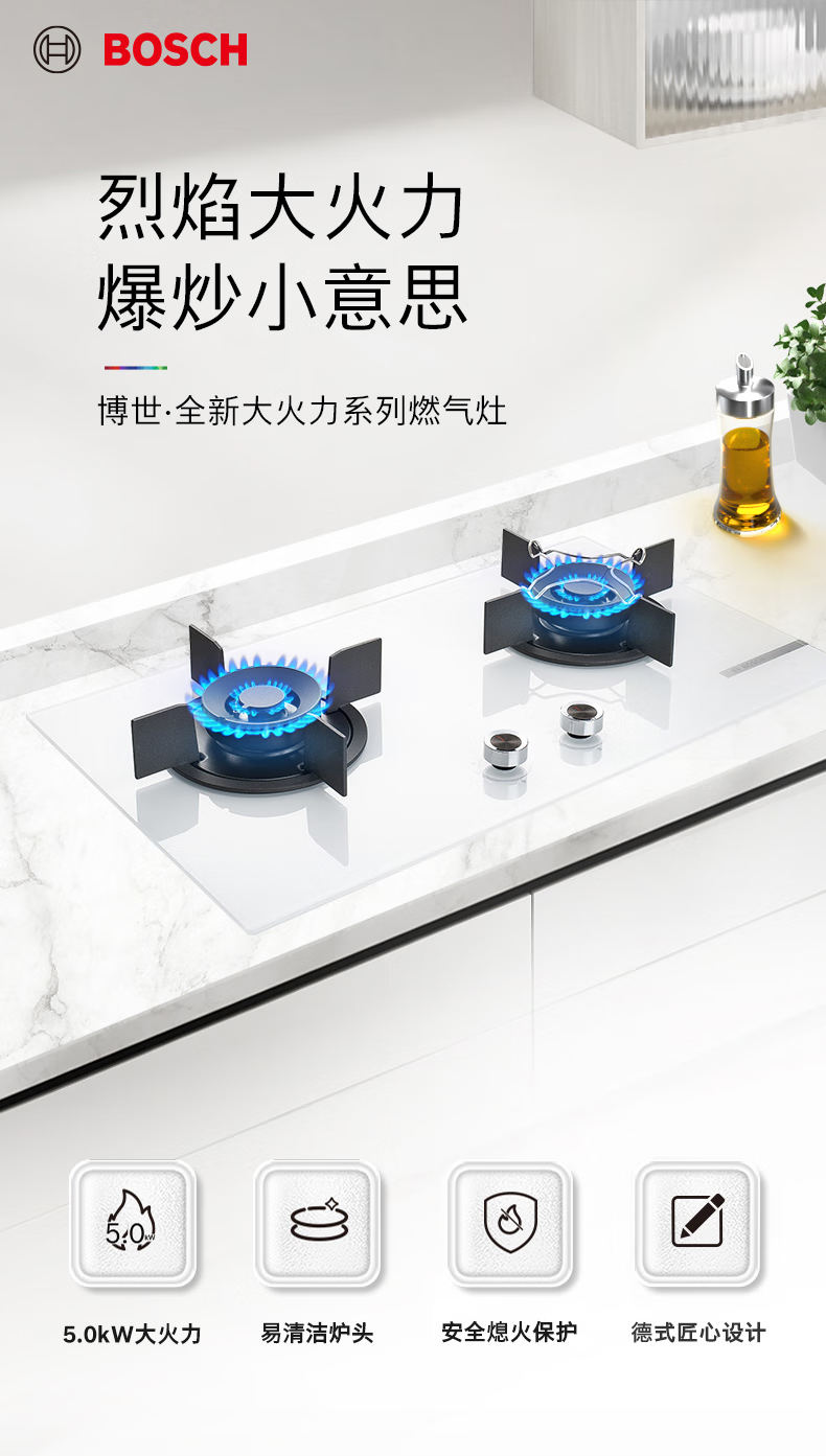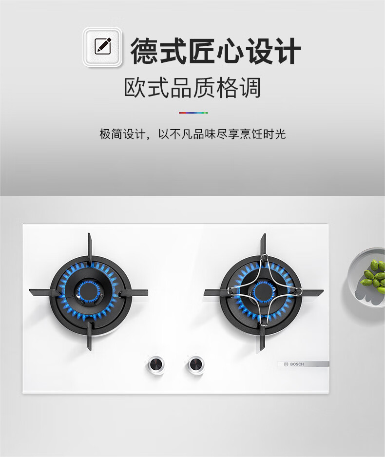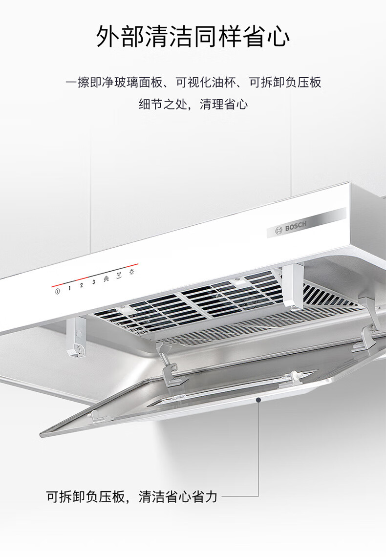 博世(BOSCH)【天鹅白系列】致薄5D烟灶套装 23立方吸抽油烟机 热风自清洁 嵌入式燃气灶 5.0kW大火力 天然气 DWWDT3NB1W+PDW633VAMP