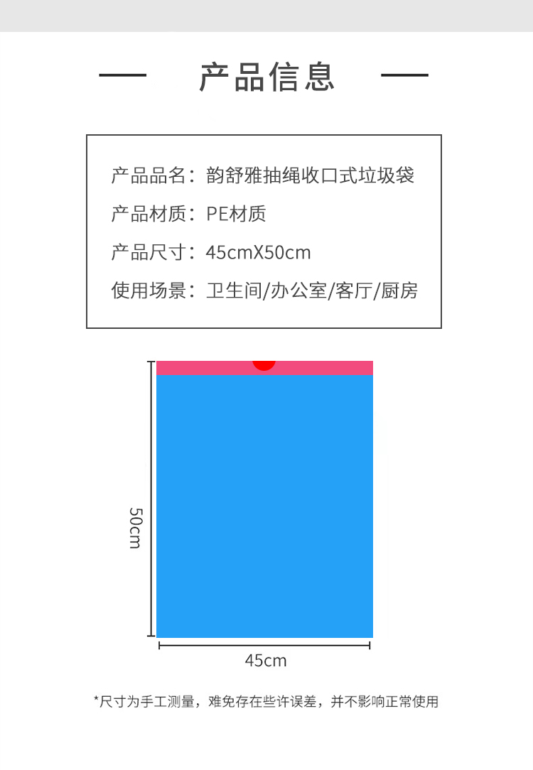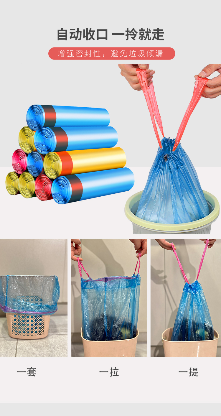 抽绳收口式垃圾袋加厚中大号75只 自动收口 一拎就走