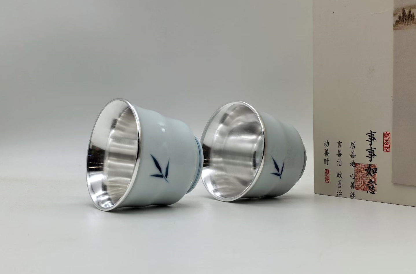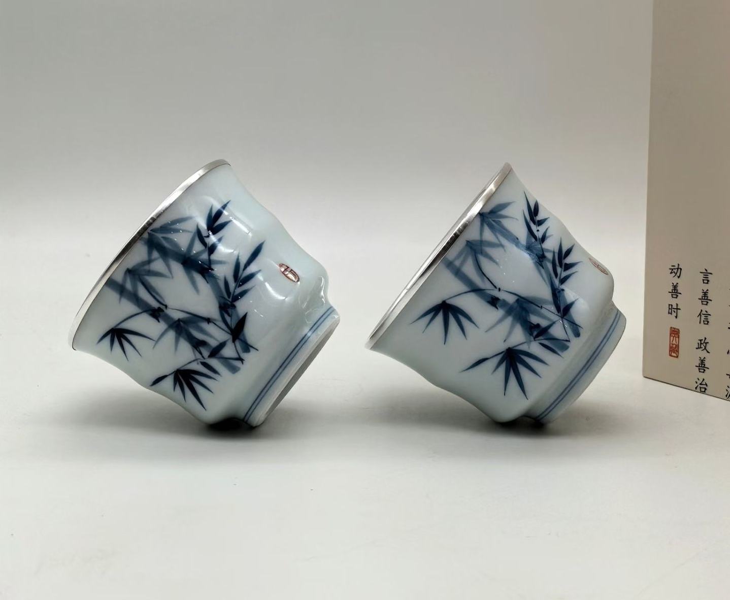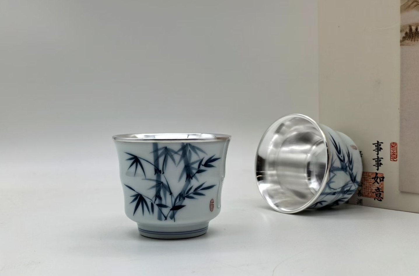 光宝堂瓷包银手绘竹报平安品茗杯单杯