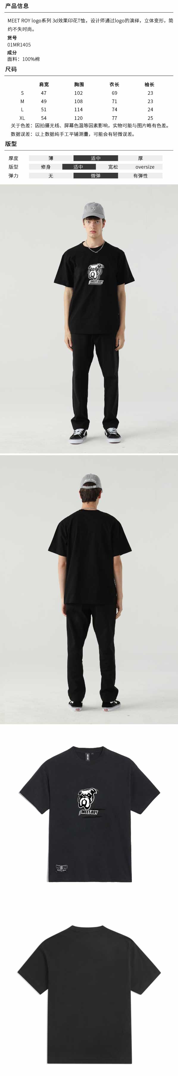 MEET ROY logo系列3d狗头印花T恤01MR1405