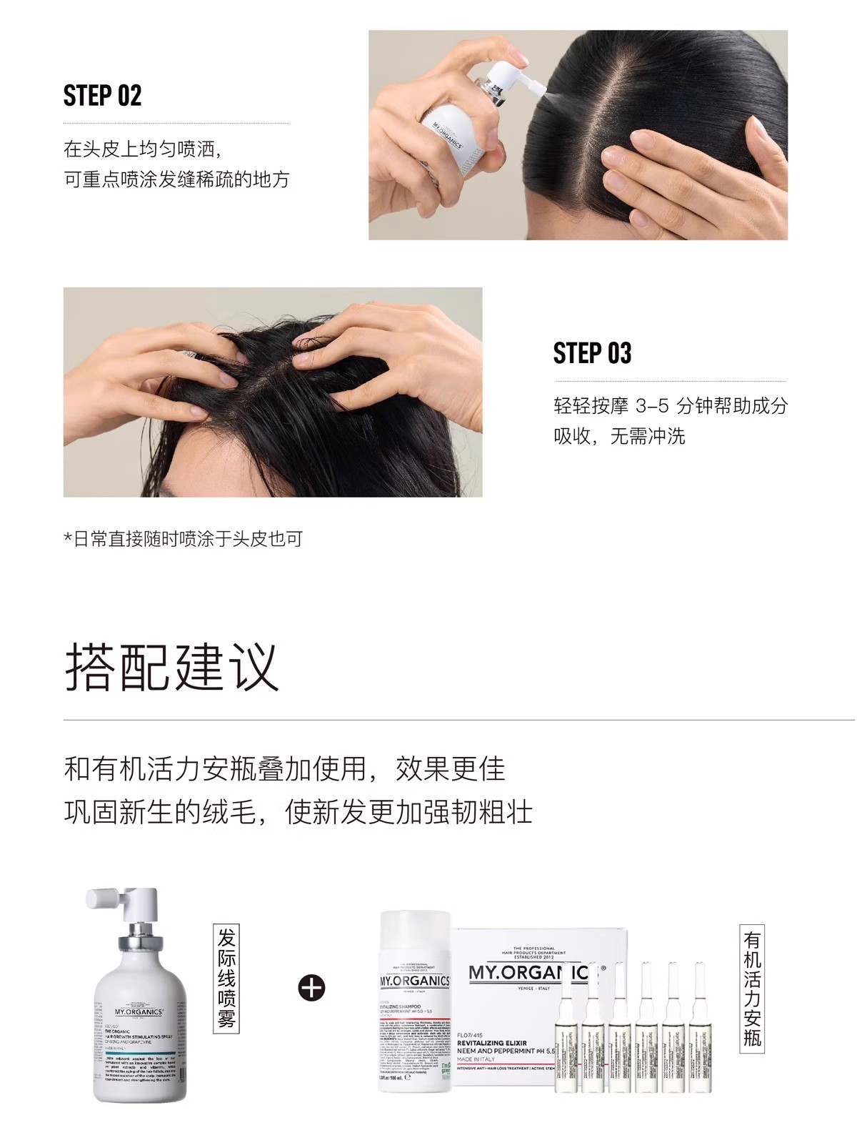 My organics 有机活力生发喷雾 头皮精华 发际线喷雾50ml章小蕙推荐