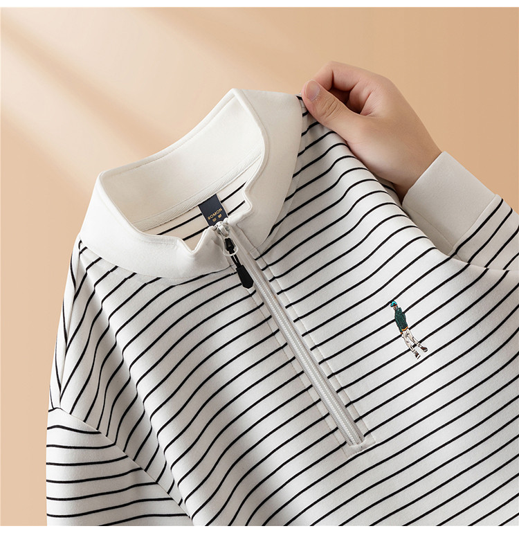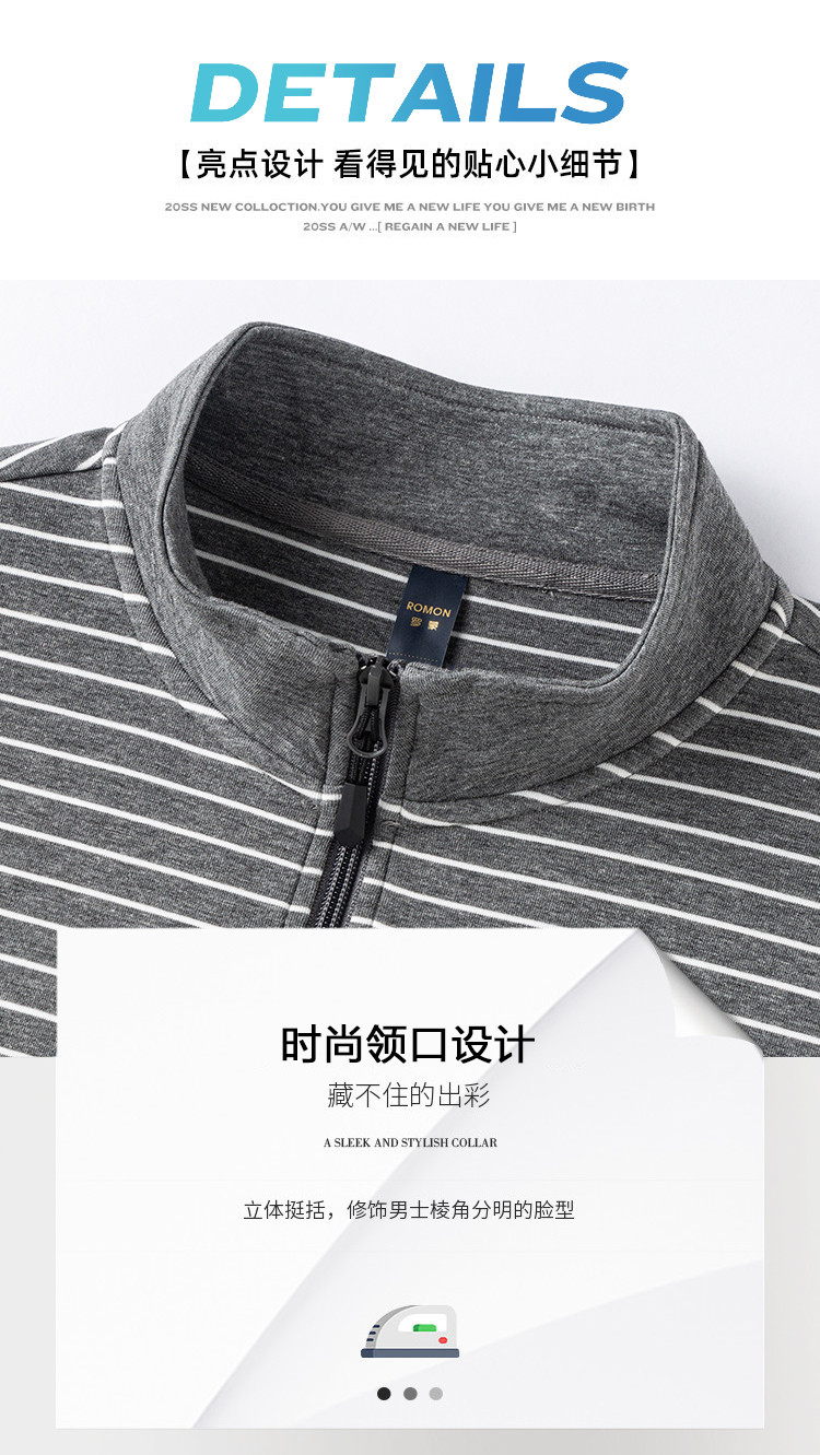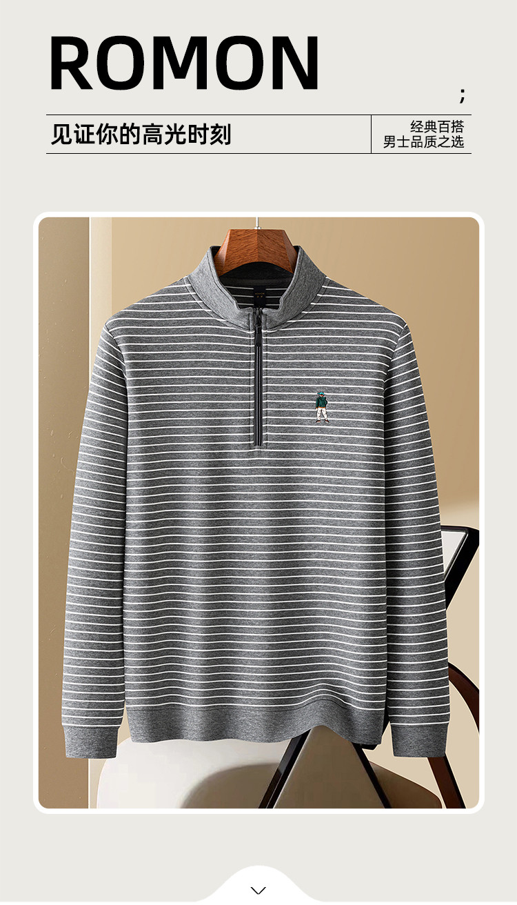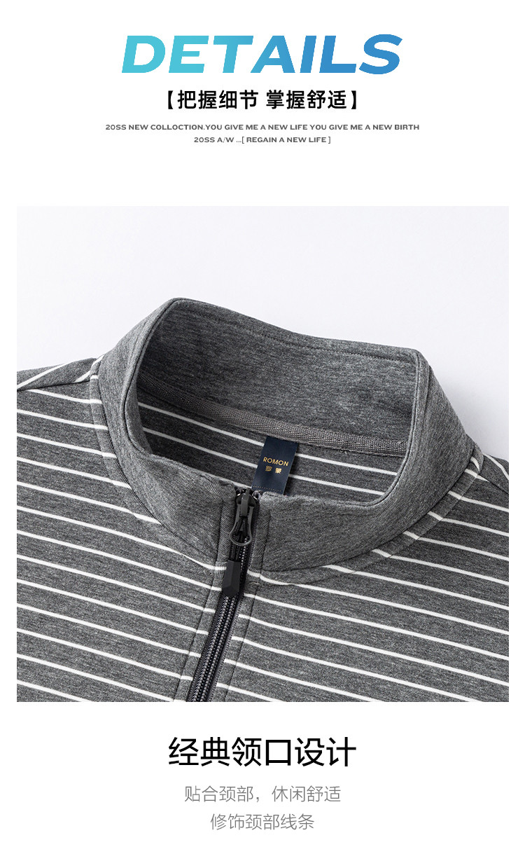 【色织空气层海魂衫】罗蒙春秋长袖T恤男士立领半拉链卫衣男春秋打底卫衣外套男