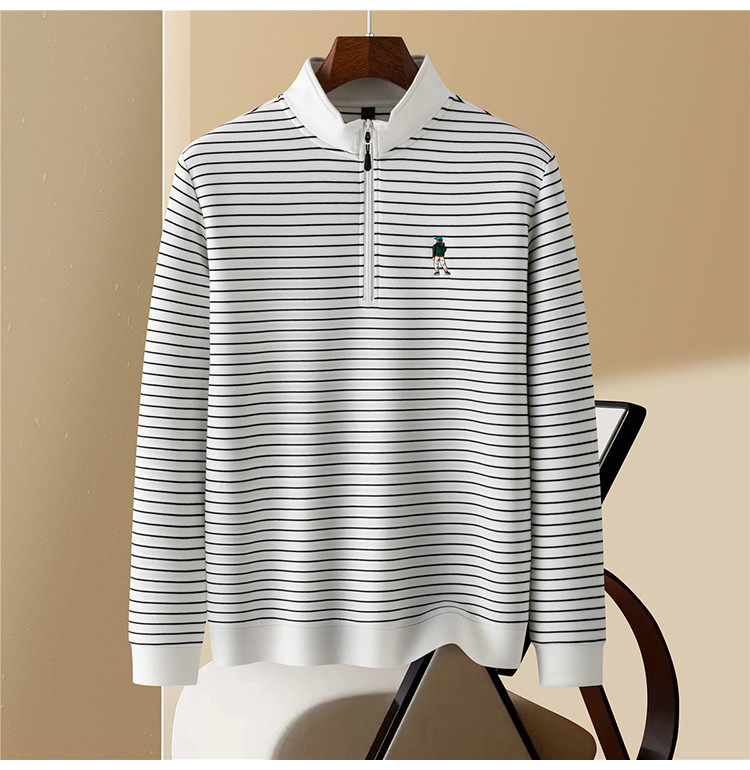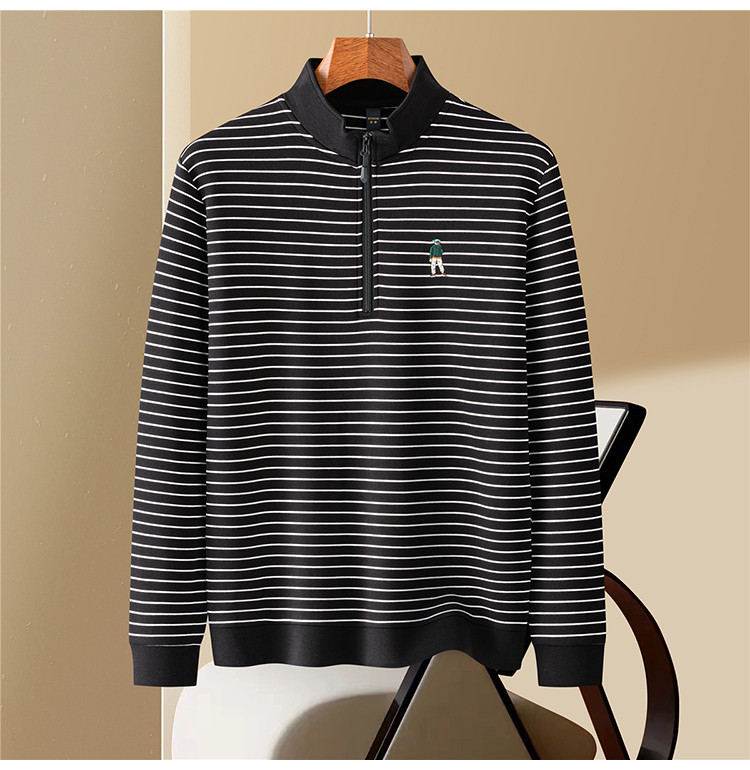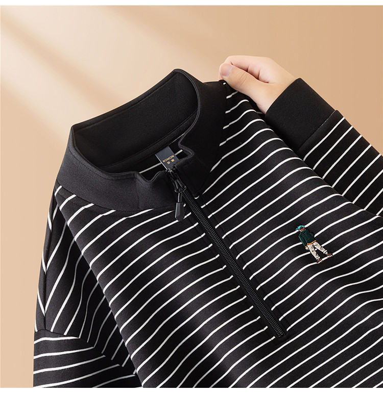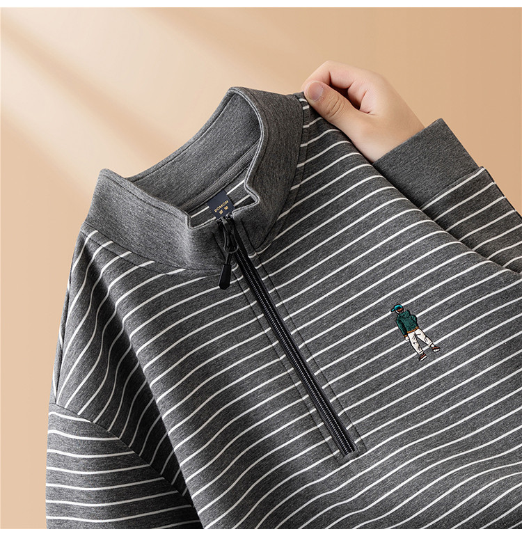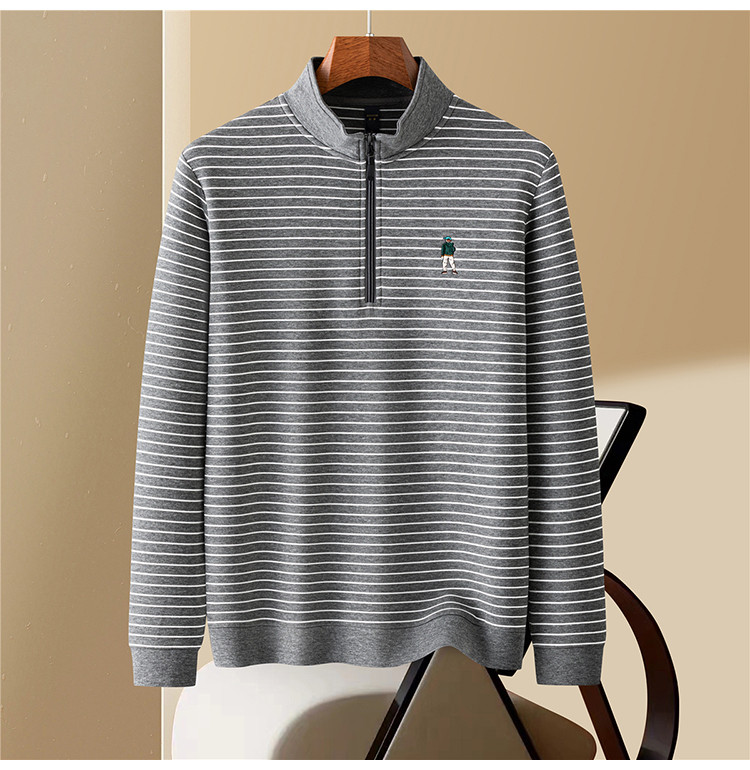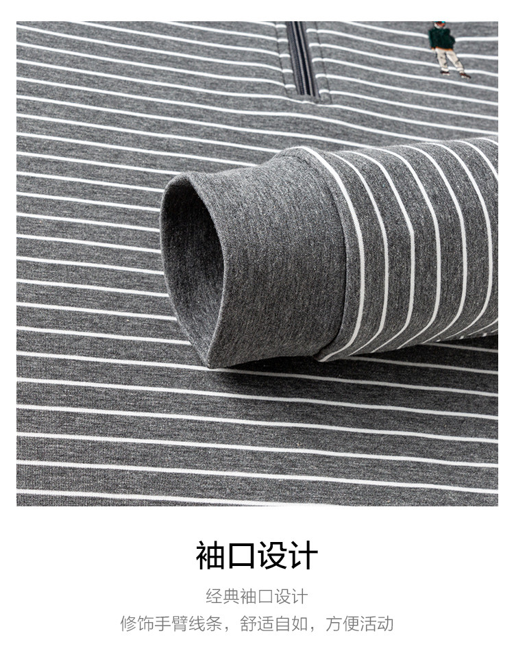 【色织空气层海魂衫】罗蒙春秋长袖T恤男士立领半拉链卫衣男春秋打底卫衣外套男