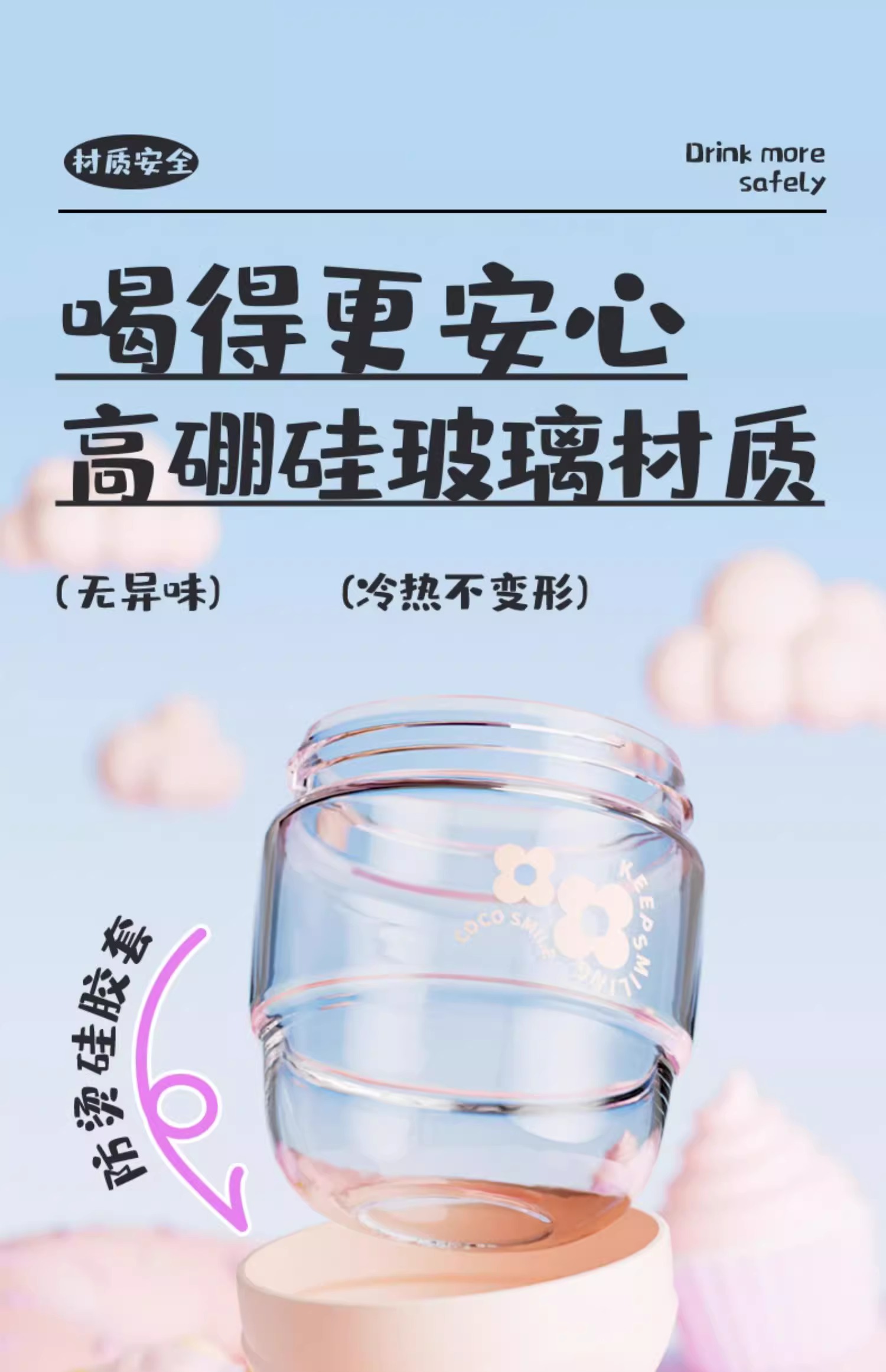 【多样屋专柜】多样屋DUDU吸管玻璃随手杯儿童水杯玻璃杯便携新款