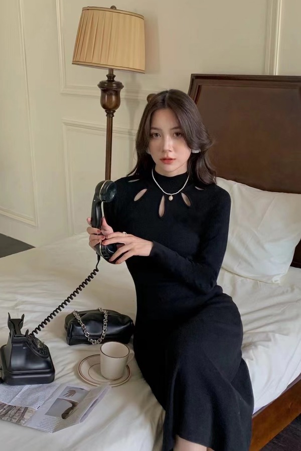 SIA SAYLOR 优雅镂空针织长款连衣裙 14812
