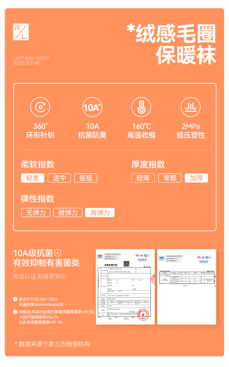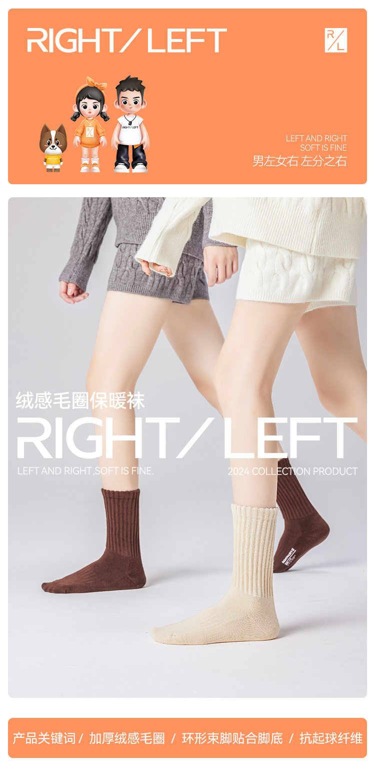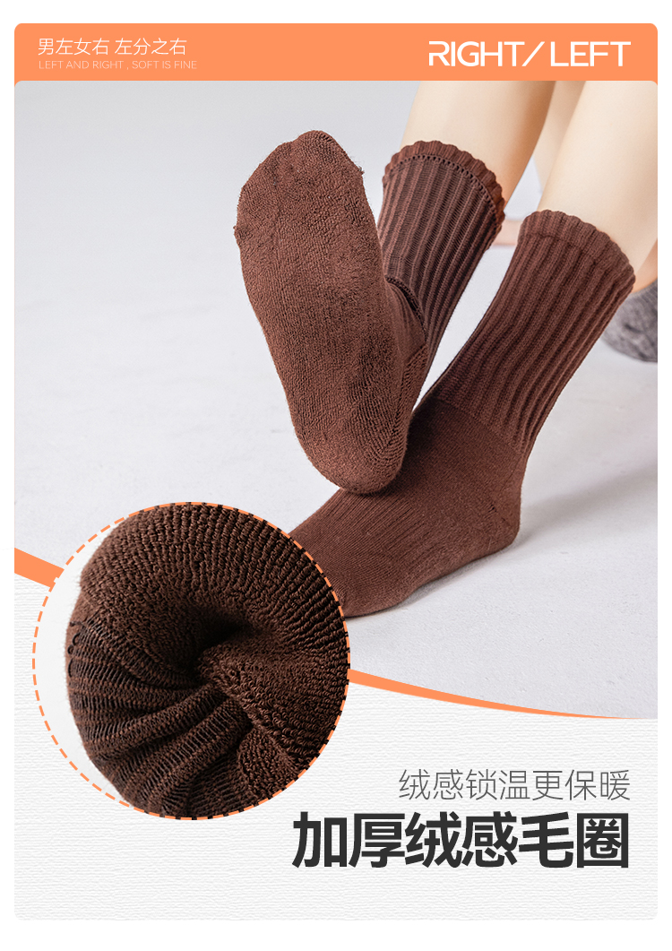 左分之右男女同款春秋季运动毛圈加厚10A舒适保暖抑菌中长筒袜子