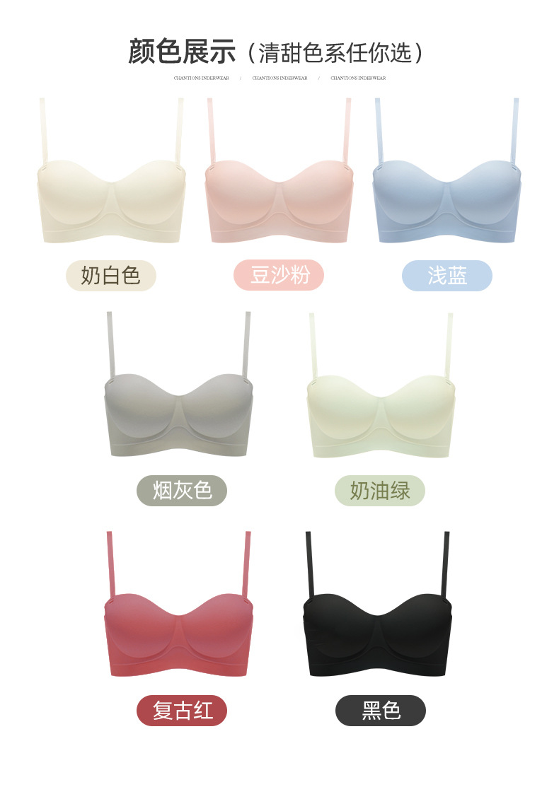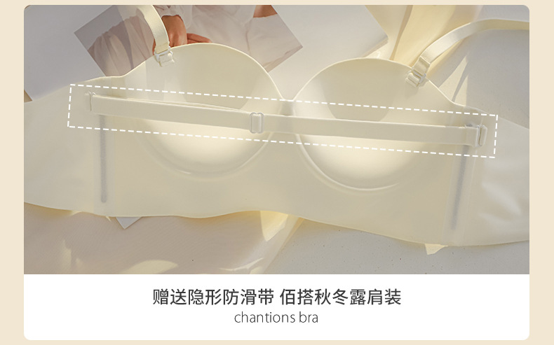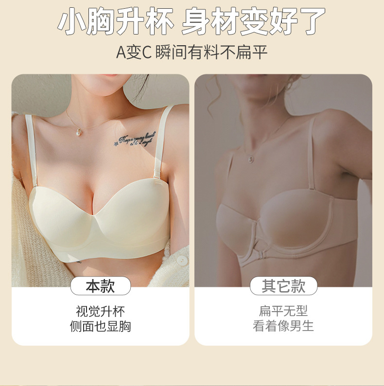 【超薄透气 凉感亲肤无痕裸感】爆款防滑无肩带,无痕内衣女小胸聚拢显大,无钢圈收副乳防下垂文胸罩,聚拢小胸专用夏季薄款无痕隐形文胸女