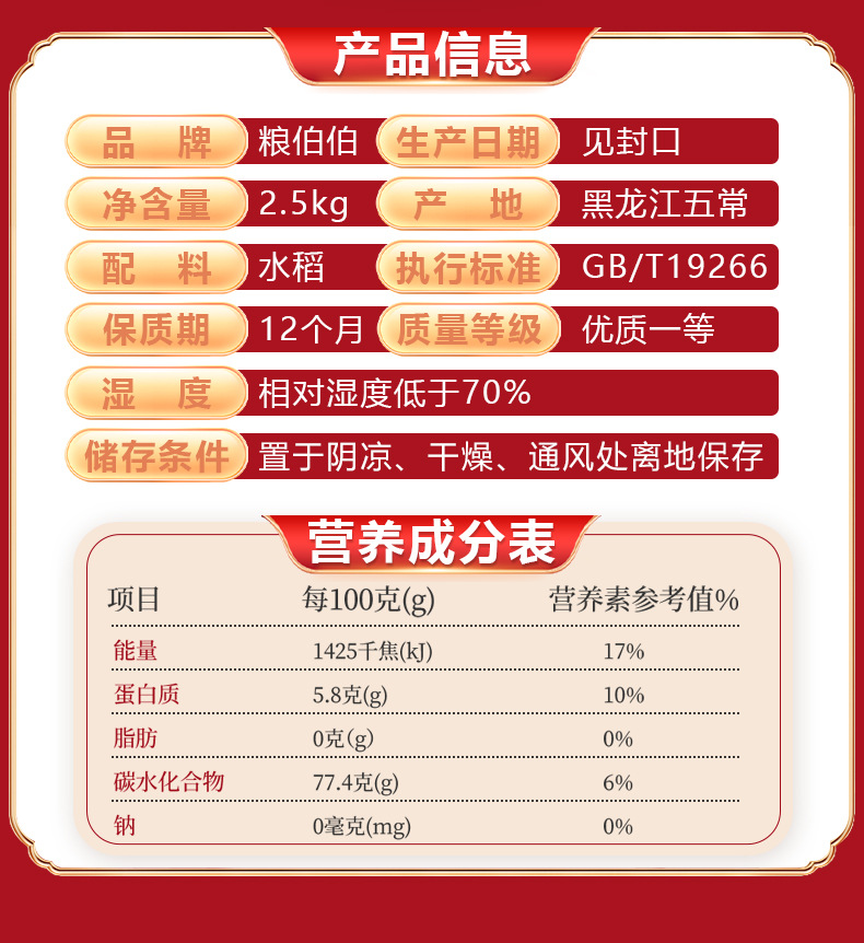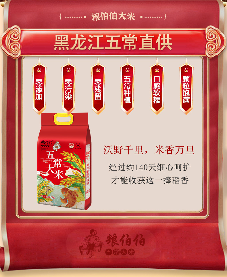 【新米】粮伯伯五常大米5斤稻香米真空包装黑龙江直发
