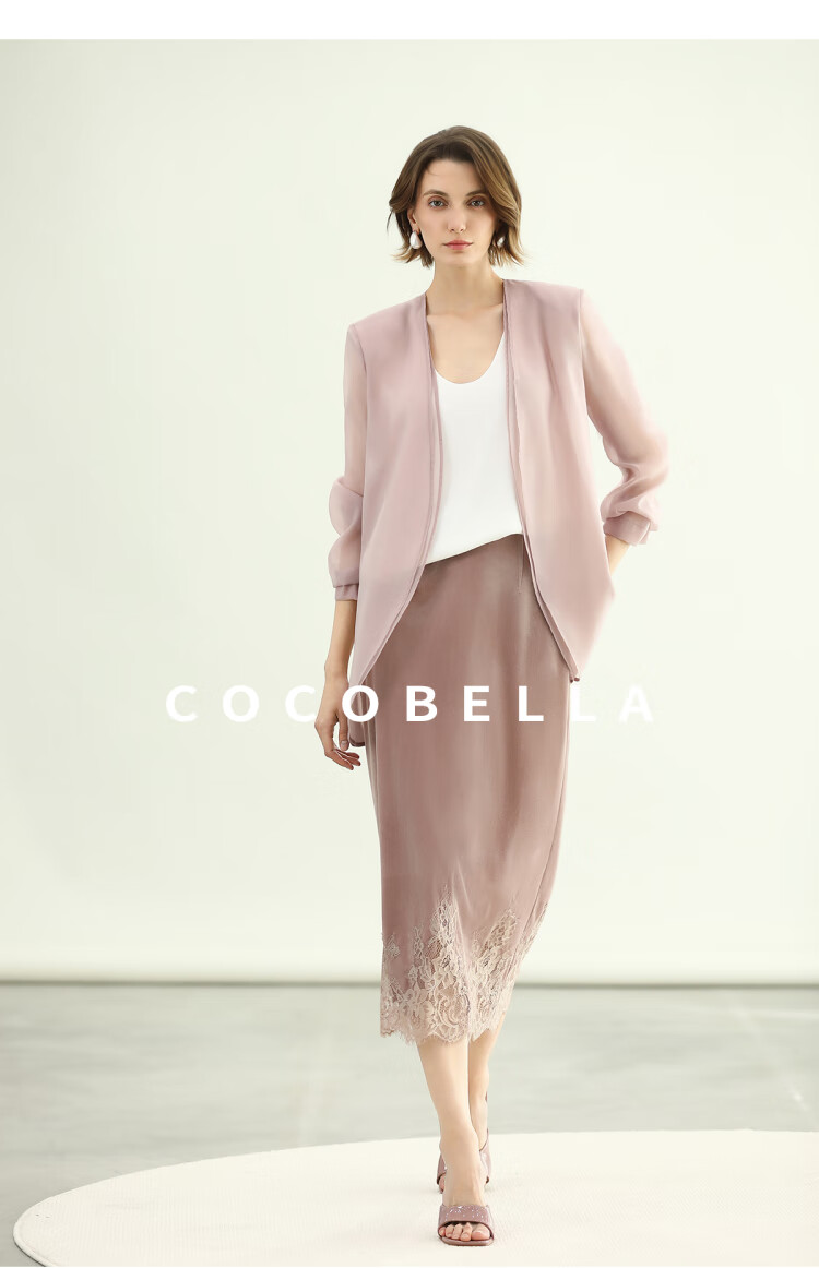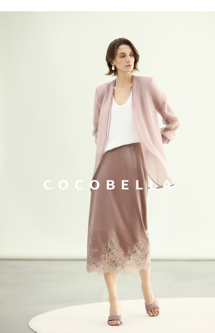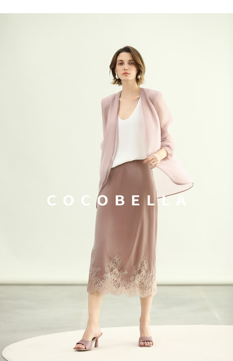 COCOBELLA优雅玫瑰粉丝绒半身裙女夏蕾丝拼接直筒裙HS3126-2