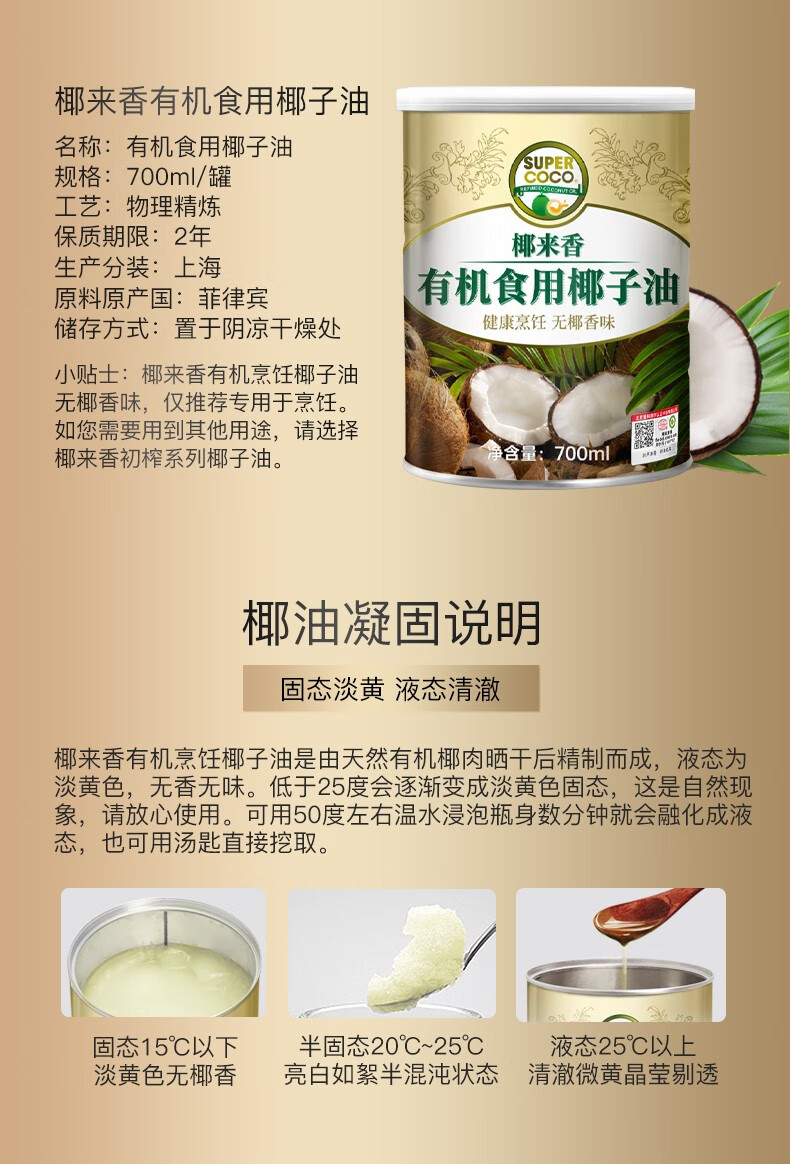 有机烹饪椰子油 700ML 无椰香 菲律宾进口