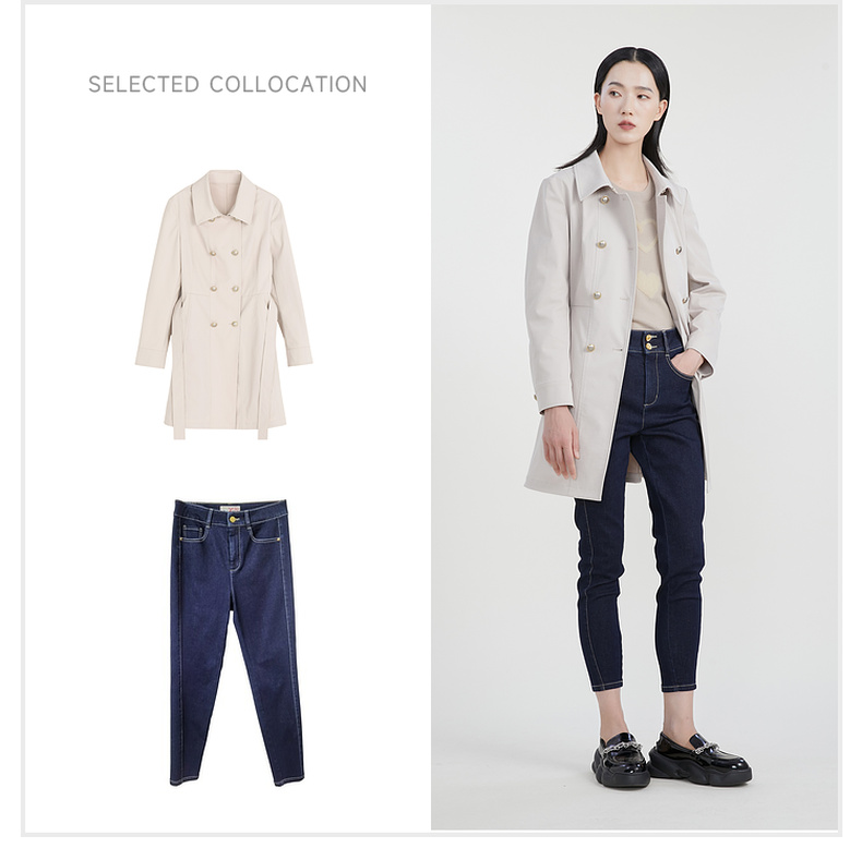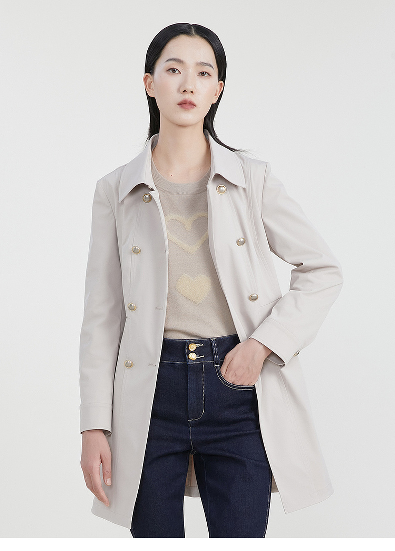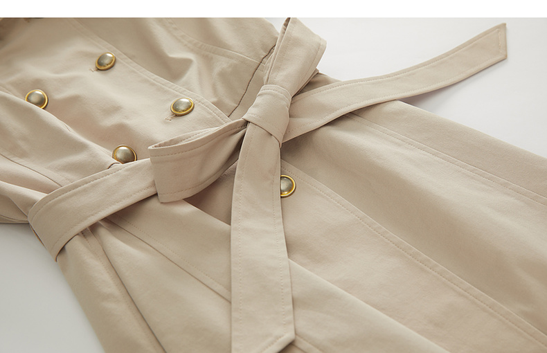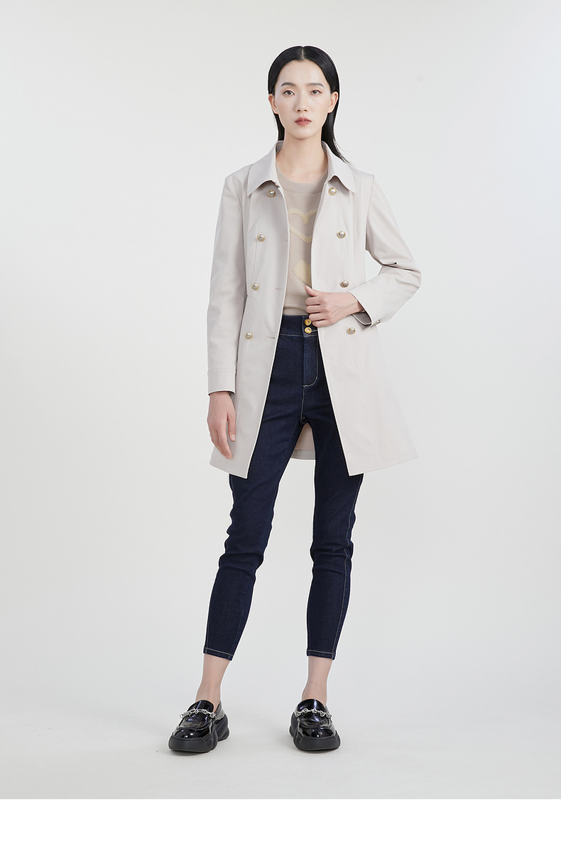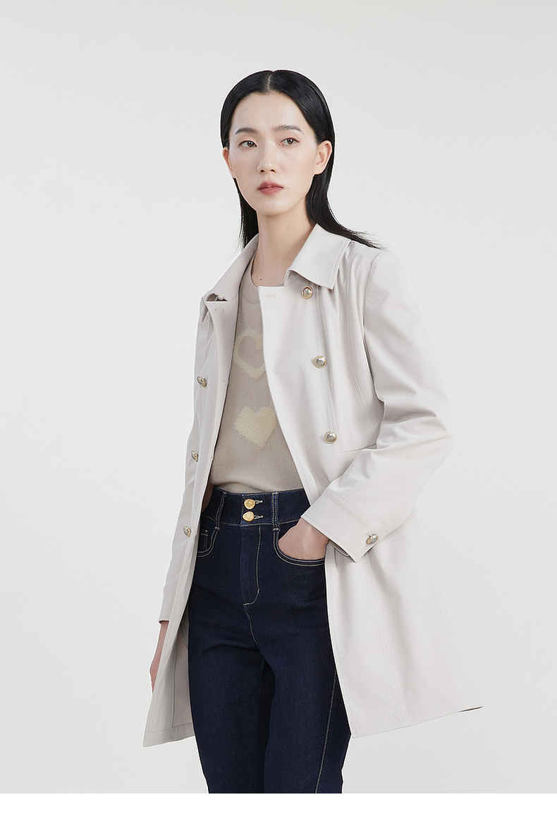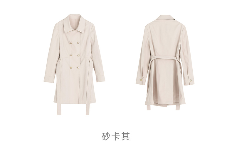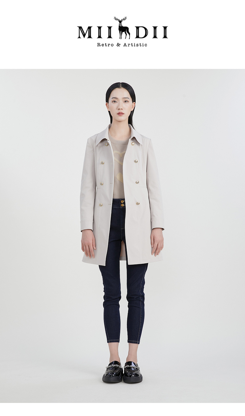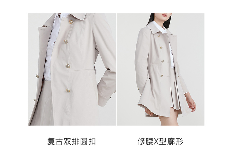 谜底双排扣风衣女23春新款简约时尚纯色中长款外套长袖231ME0095