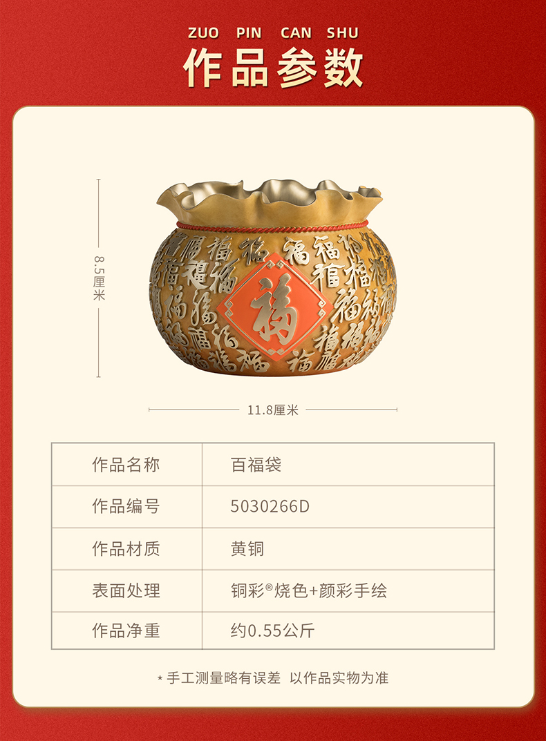 铜师傅《百福袋》客厅桌面铜摆件 家居装饰工艺品礼物
