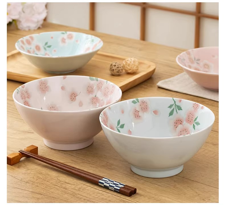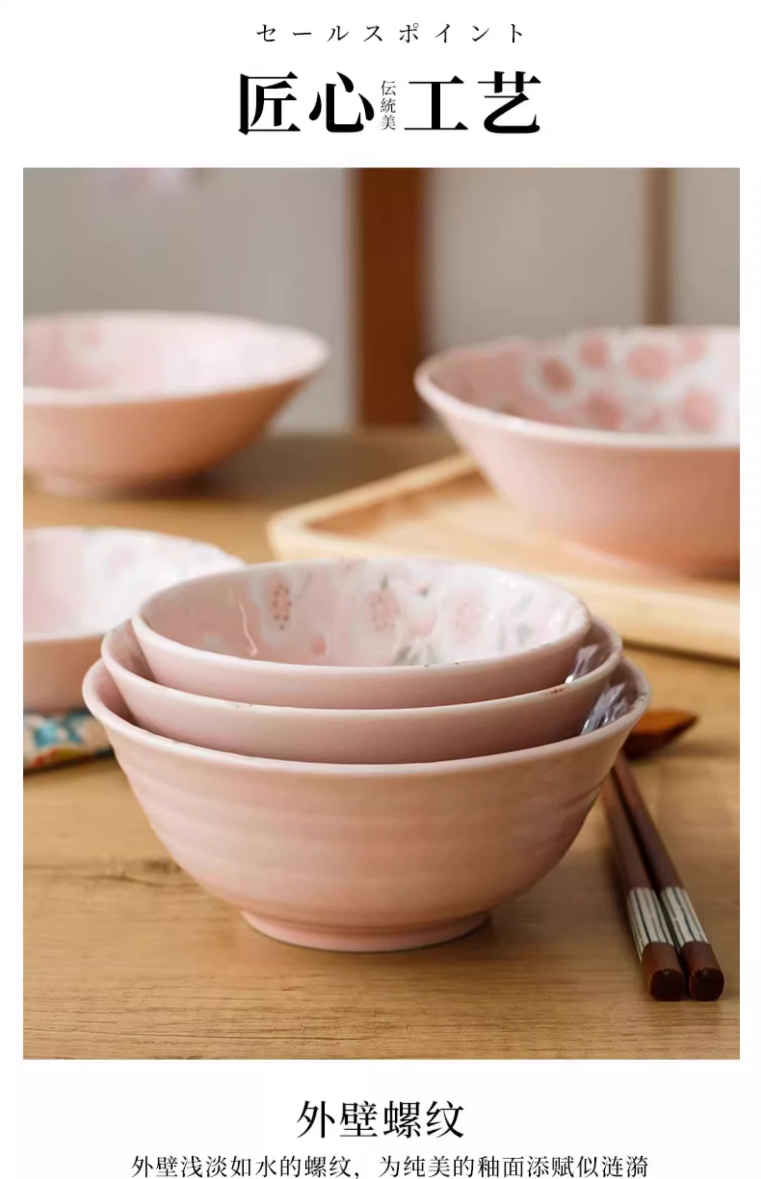 有古窑日本进口粉色樱花碗陶瓷饭碗盘子餐具日式小碗家用钵碗汤碗漫舞樱花16件套装(粉红)