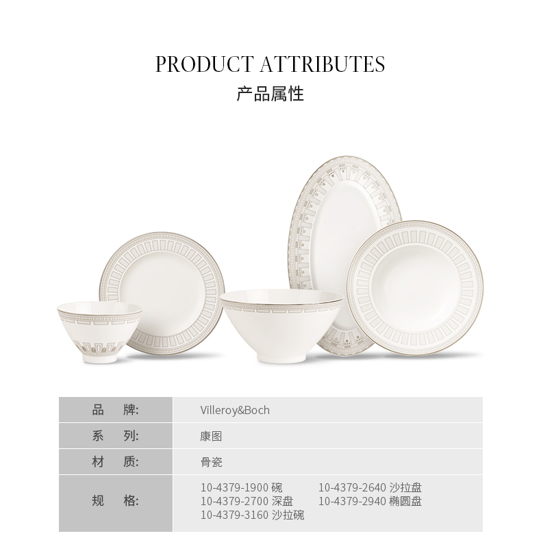 villeroyboch德国唯宝骨瓷餐具碗碟盘子菜盘家用骨瓷白色古典康图