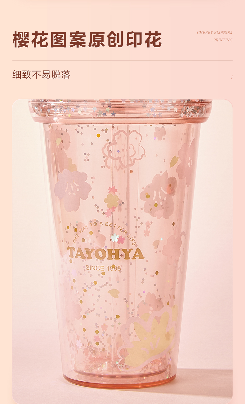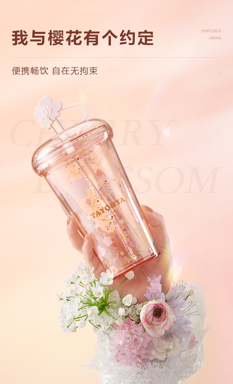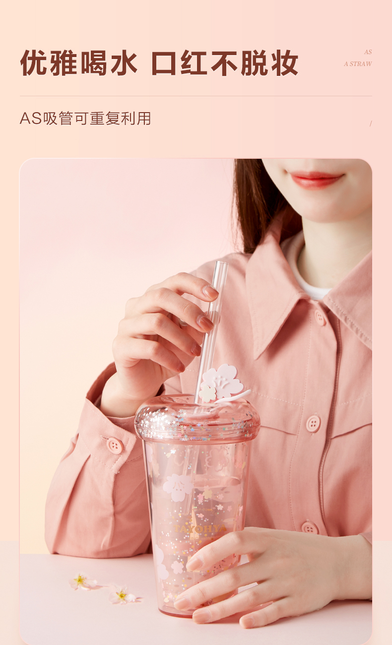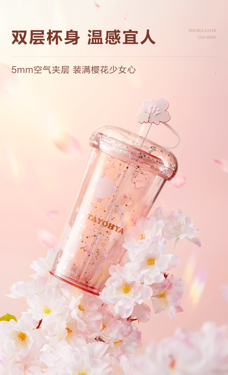 【多样屋专柜】多样屋樱花烂漫双层吸管杯-420ml
