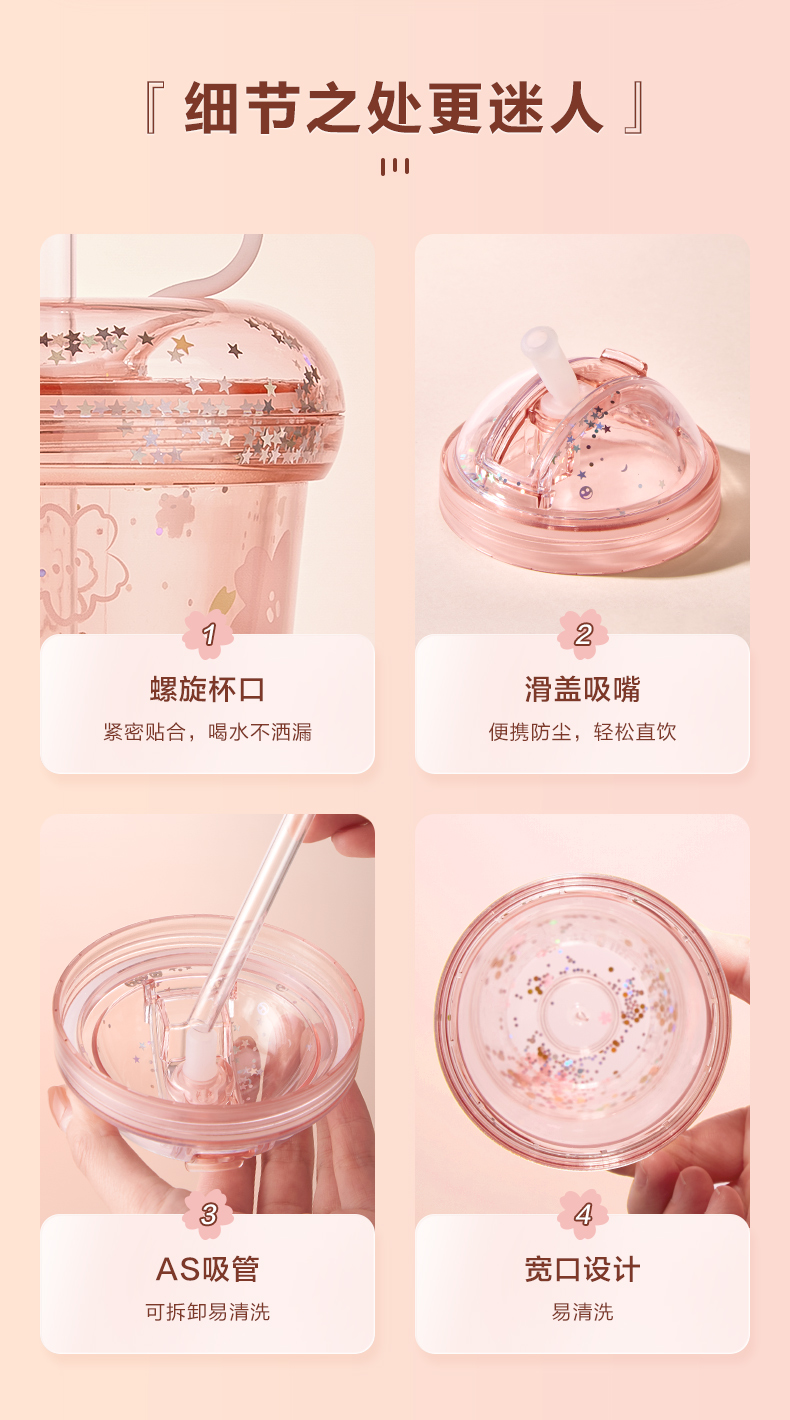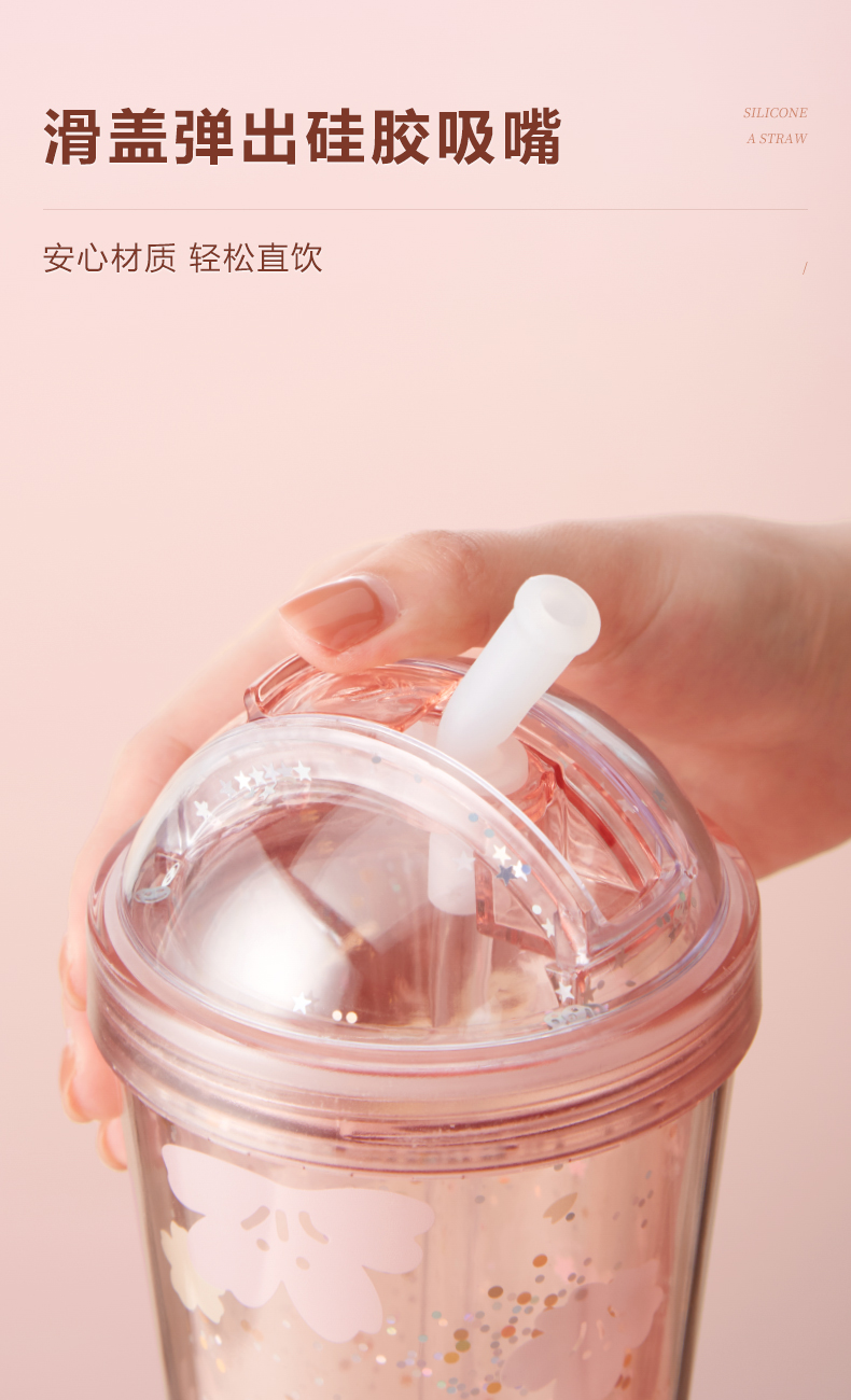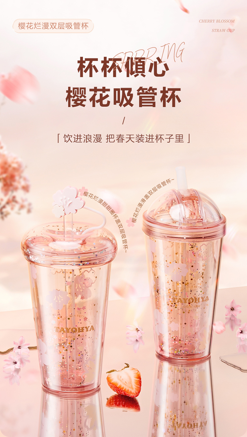 【多样屋专柜】多样屋樱花烂漫双层吸管杯-420ml