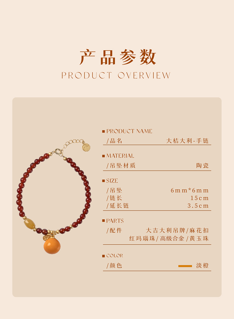 凡华造物大桔大利手链女轻奢小众设计水晶串珠手串简约高级感手饰 大桔大利手链