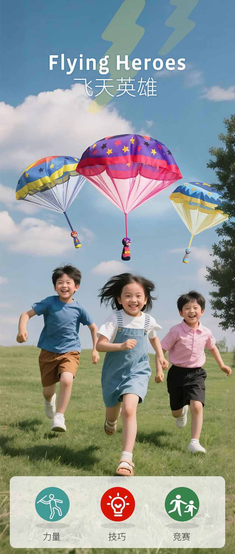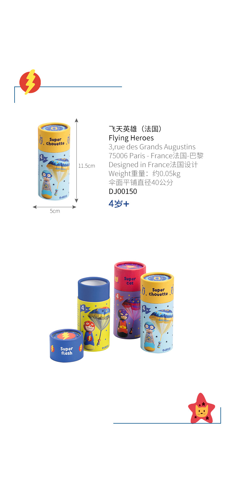 DJECO艺术降落伞兵户外放电 练追视道具(便携口袋玩具)