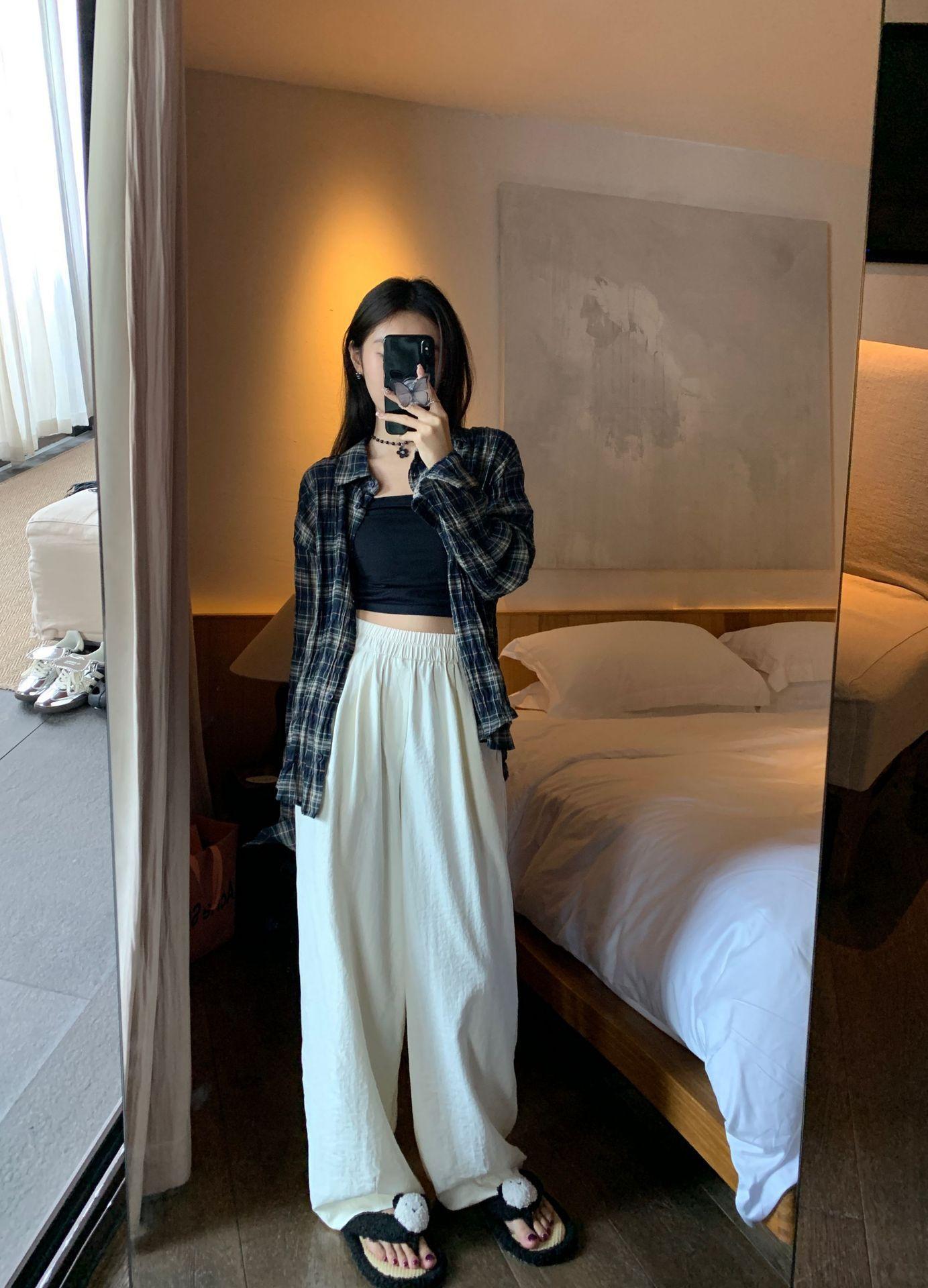 白色醋酸肌理感奶芙山本裤女夏季2025新款慵懒高腰垂感冰丝阔腿裤
