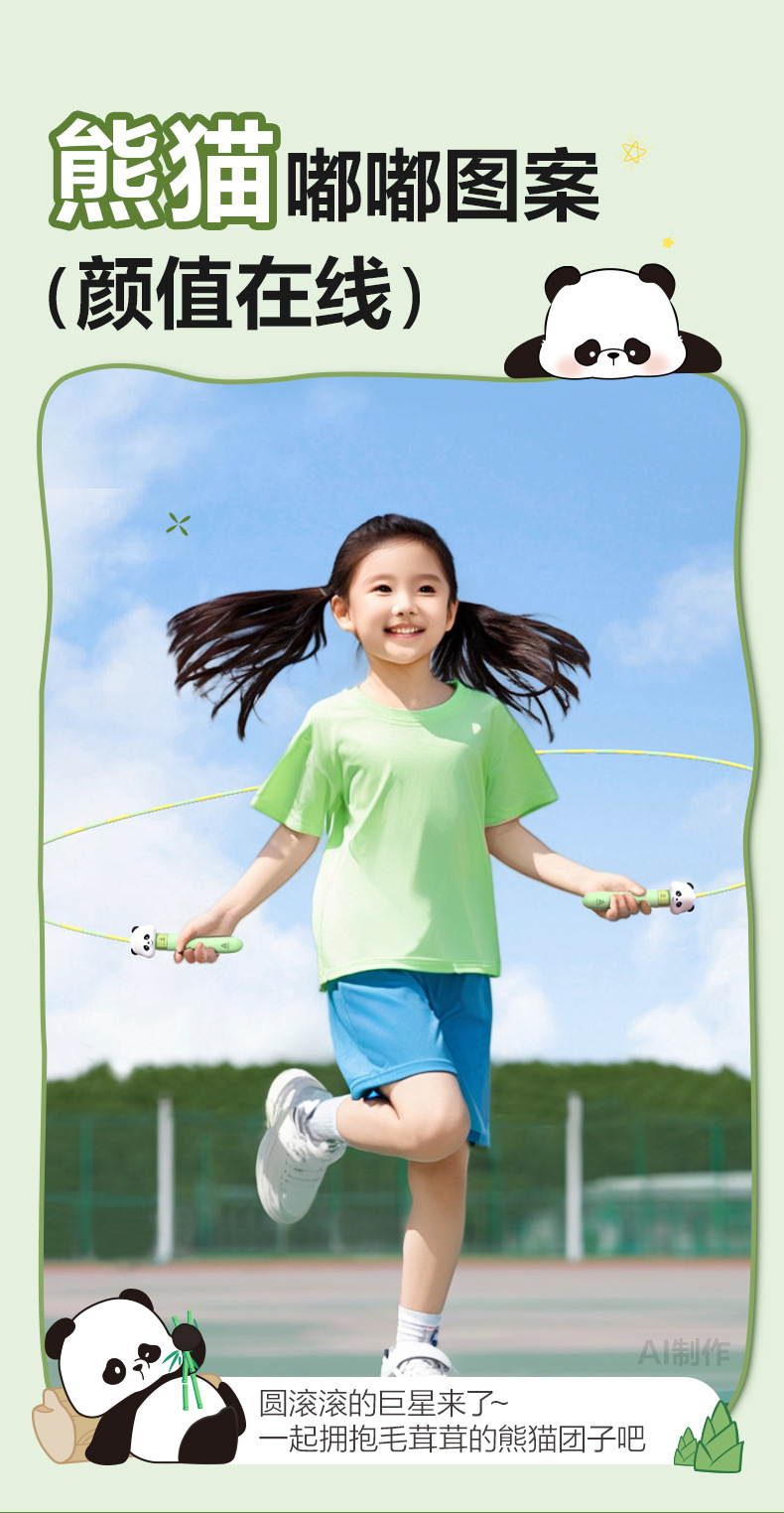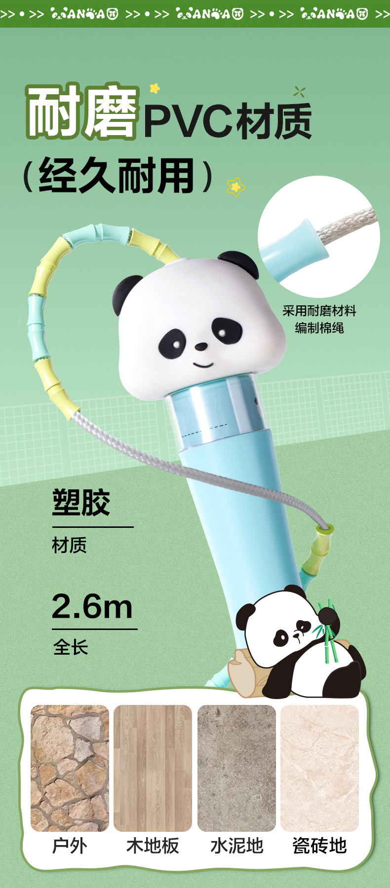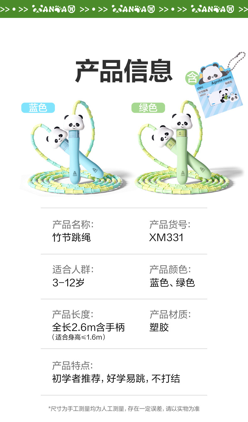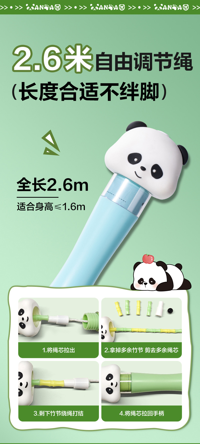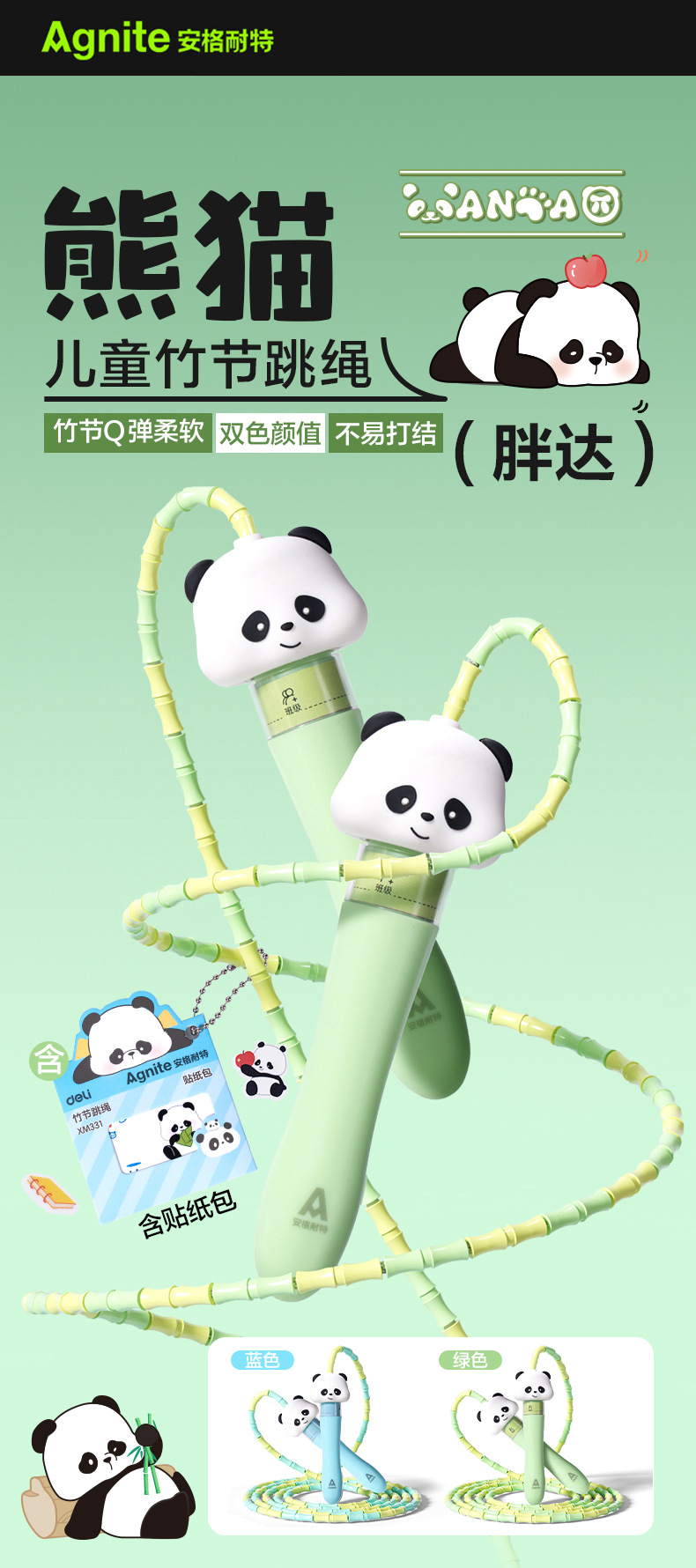 得力安格耐特XM331熊猫竹节跳绳 可调节不计数运动学生初学者跳绳