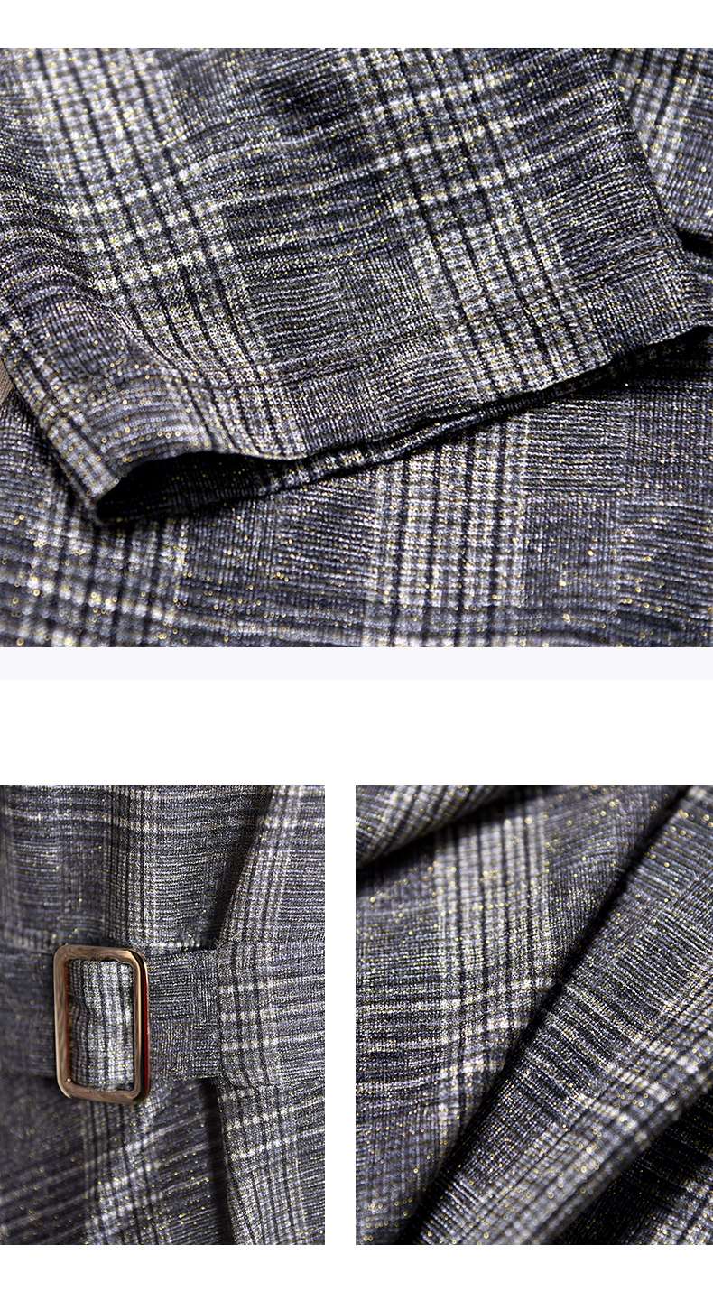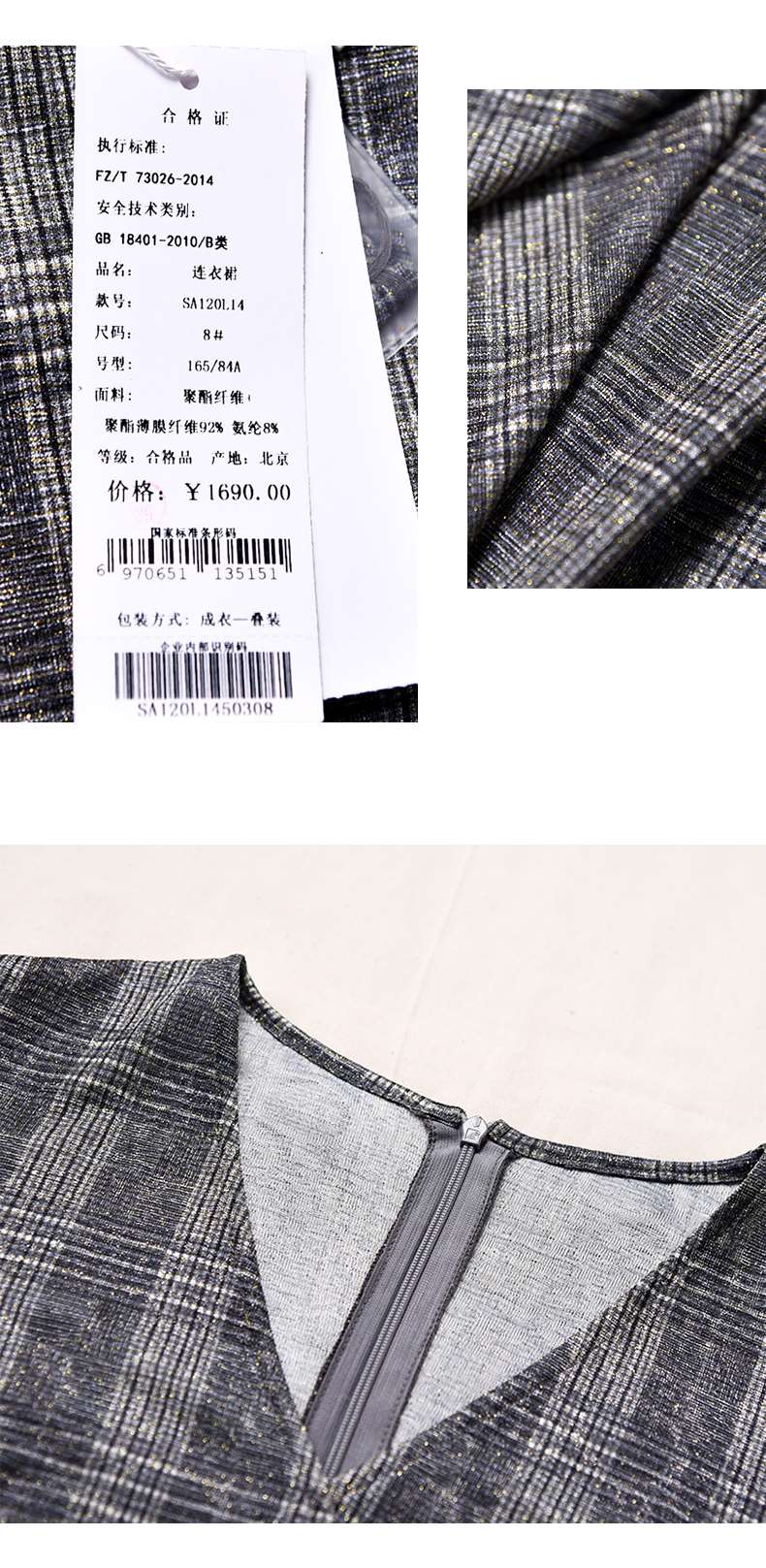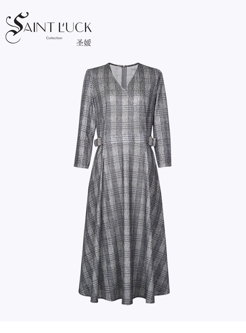 SAINT L’UCK/圣媛女装春季新款中长款V领格子连衣裙SA120L14