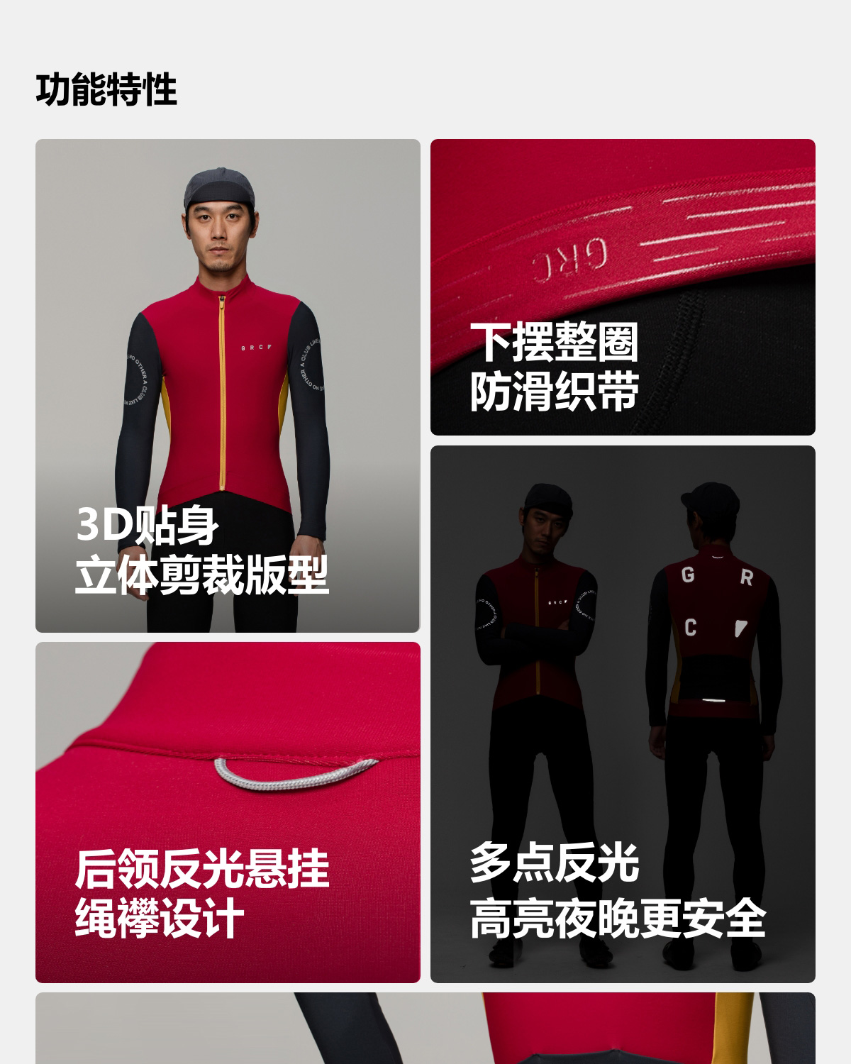 桀骜無盡GRC桀骜无尽秋冬新款TECH系列撞色长袖抓绒保暖公路自行车骑行服 Forest 森林 XS