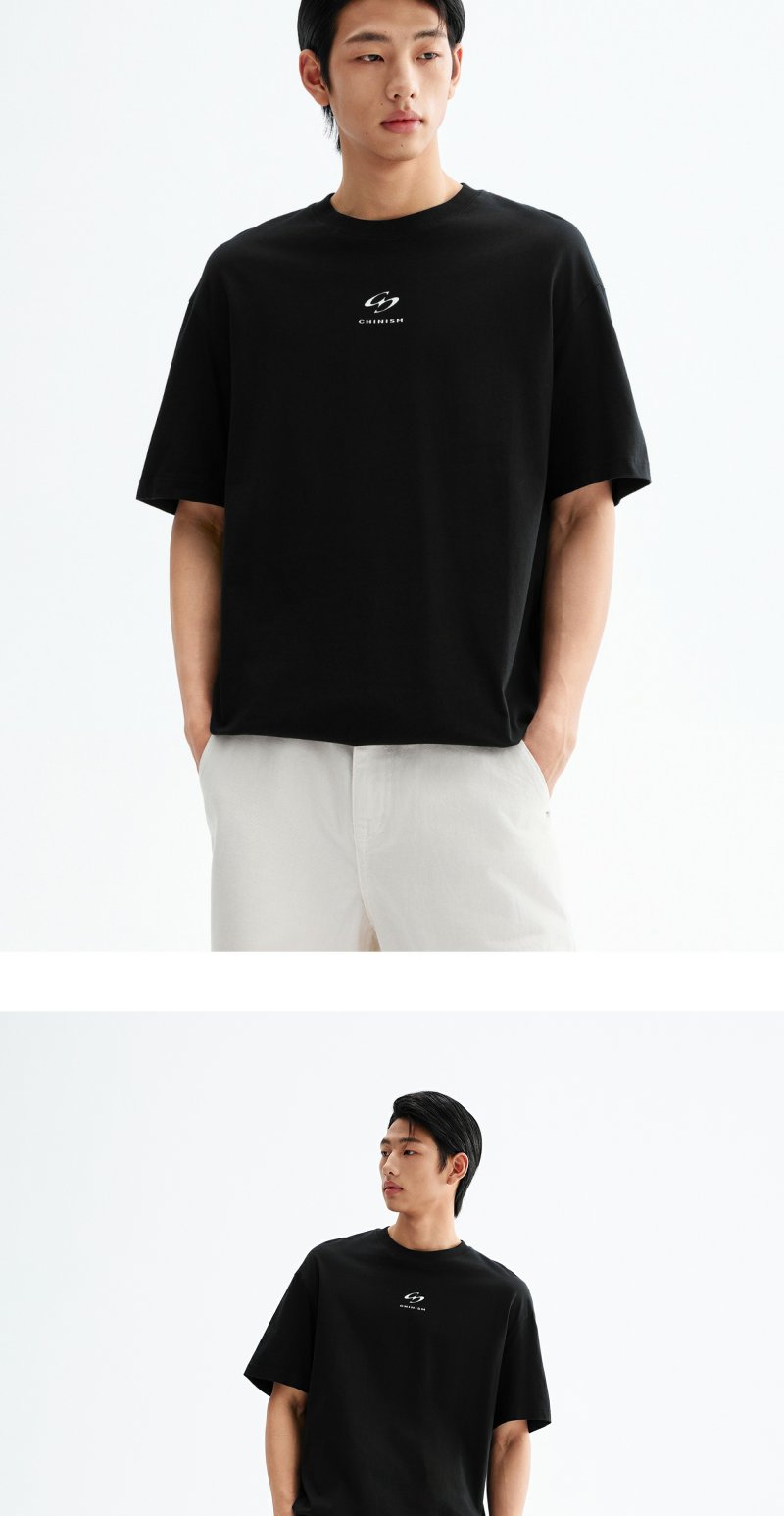 CHINISM赤尘 轻薄黑水logo印花短袖T恤男夏季纯棉宽松五分袖上衣