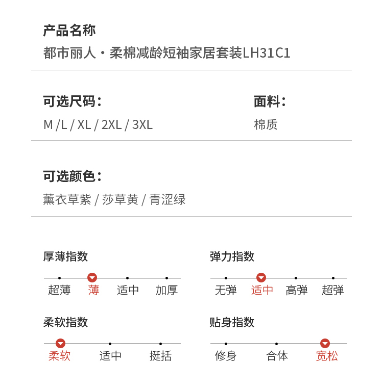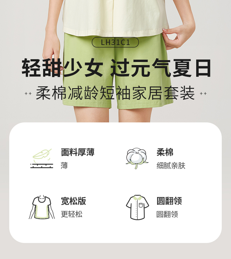 都市丽人32支棉质单面薄短袖家居服睡衣LH31C1