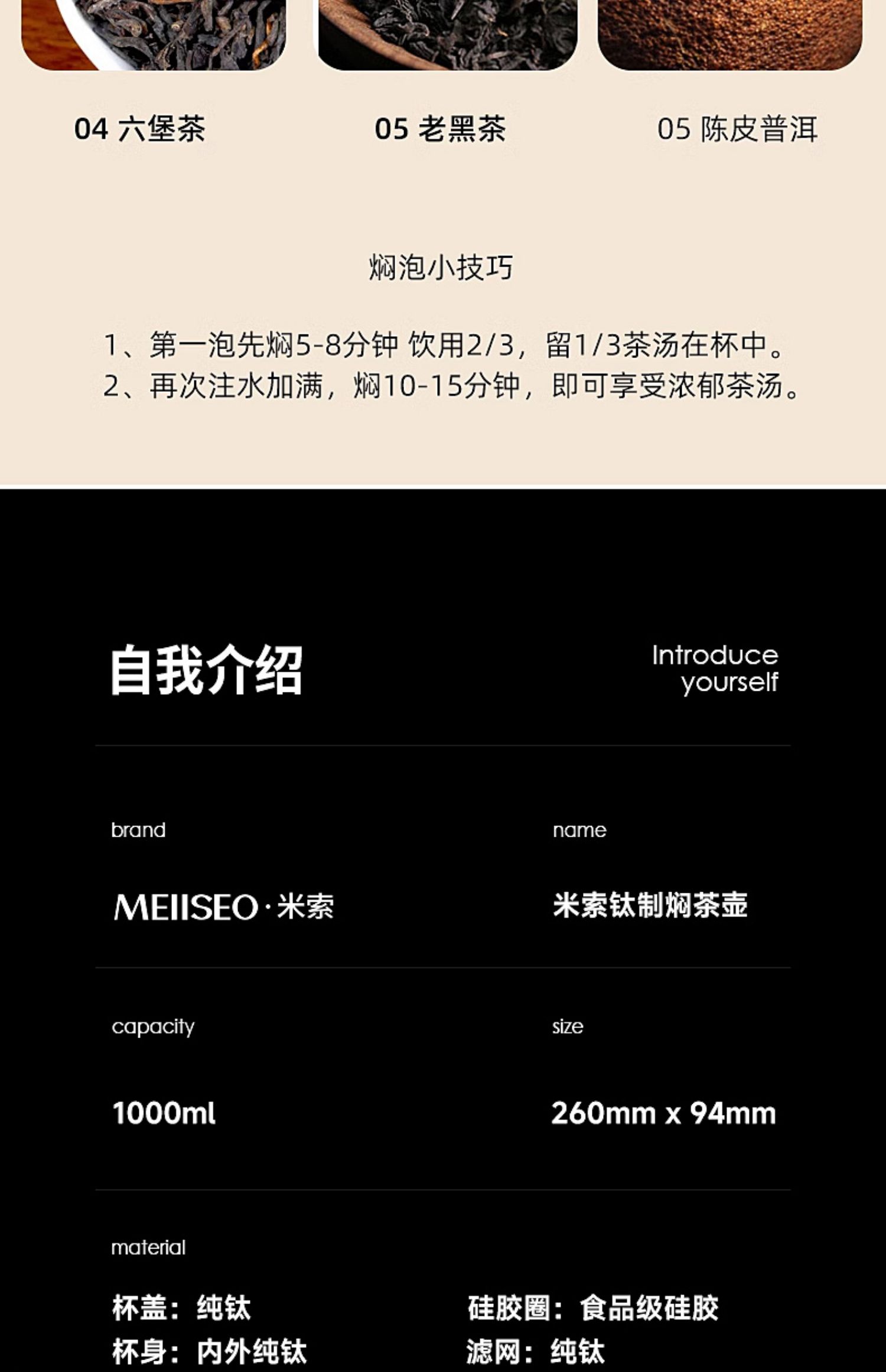 【纯钛闷茶壶】米索纯钛焖茶壶家用大容量保温壶暖水壶白茶闷泡茶壶户外便携新款