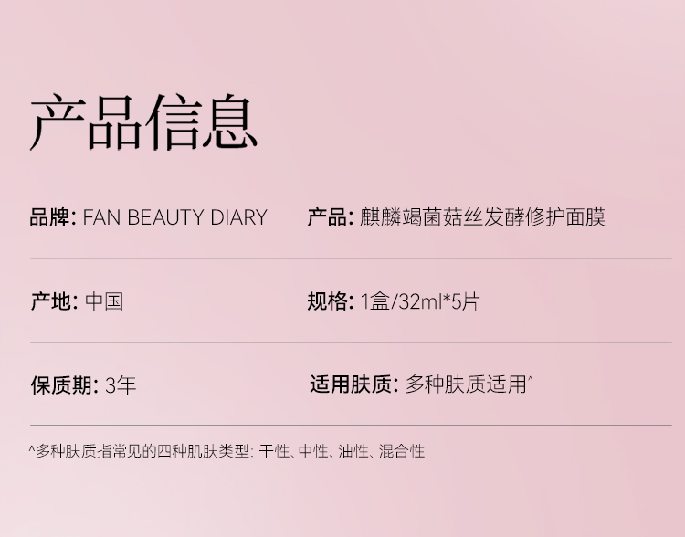 FAN BEAUTY DIARY 麒麟竭菌菇丝发酵修护面膜32ml*5片/盒(龙血面膜)