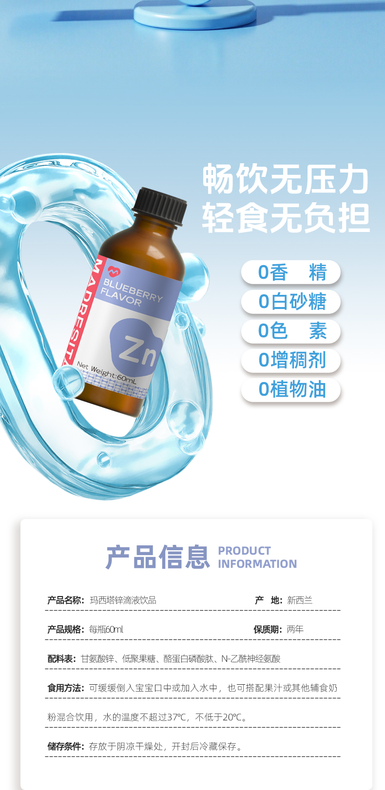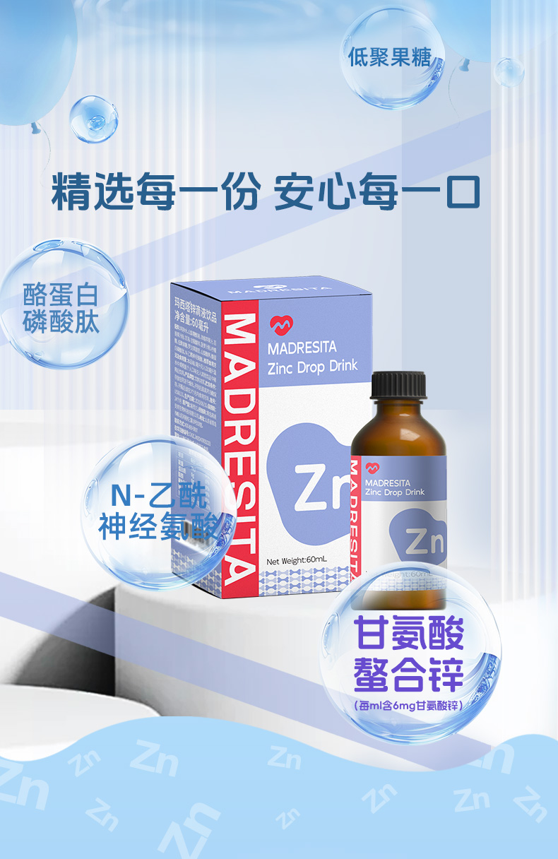 【特惠活动】玛西塔婴幼儿宝宝儿童第三代甘氨酸整合锌滴剂 60ml/瓶