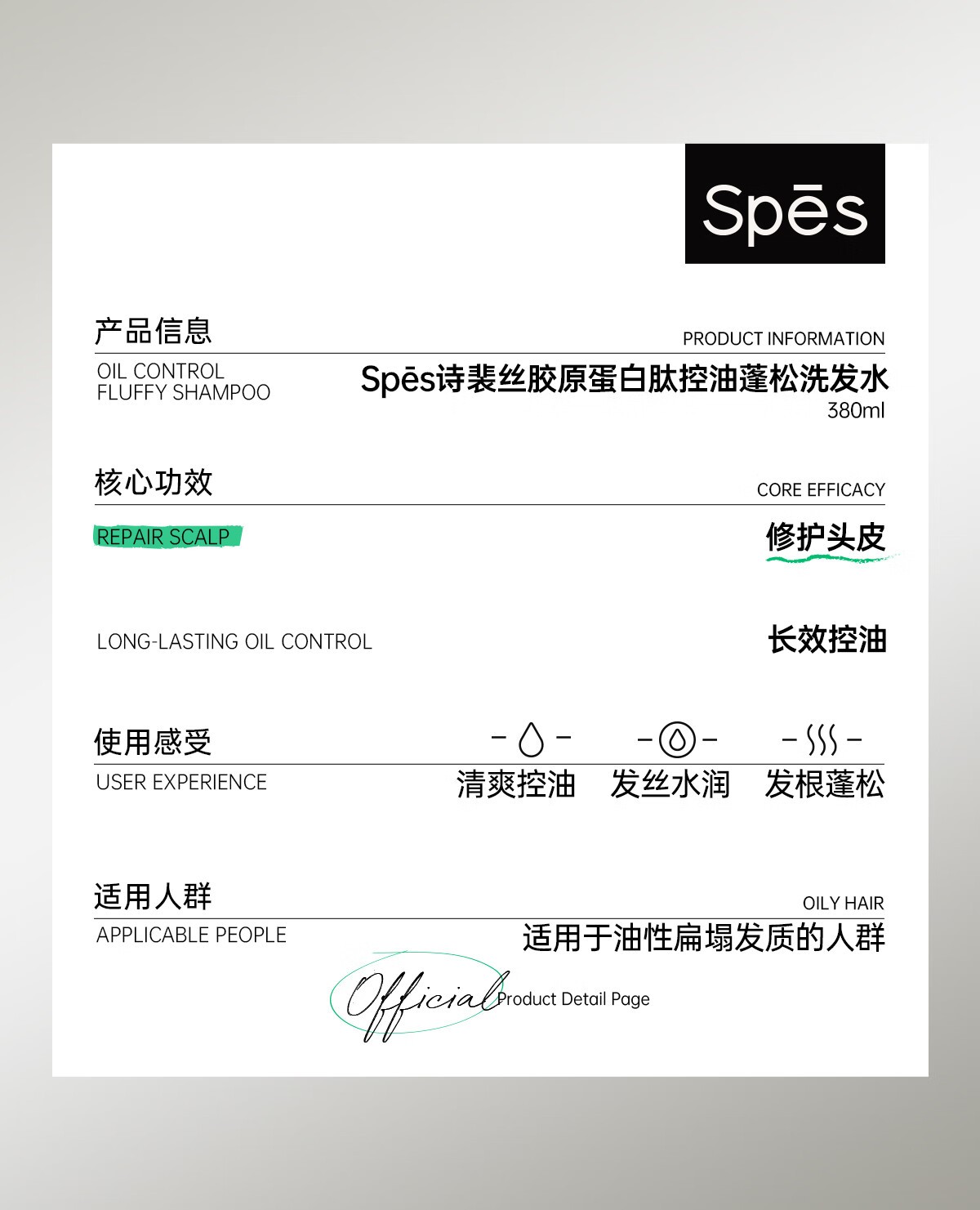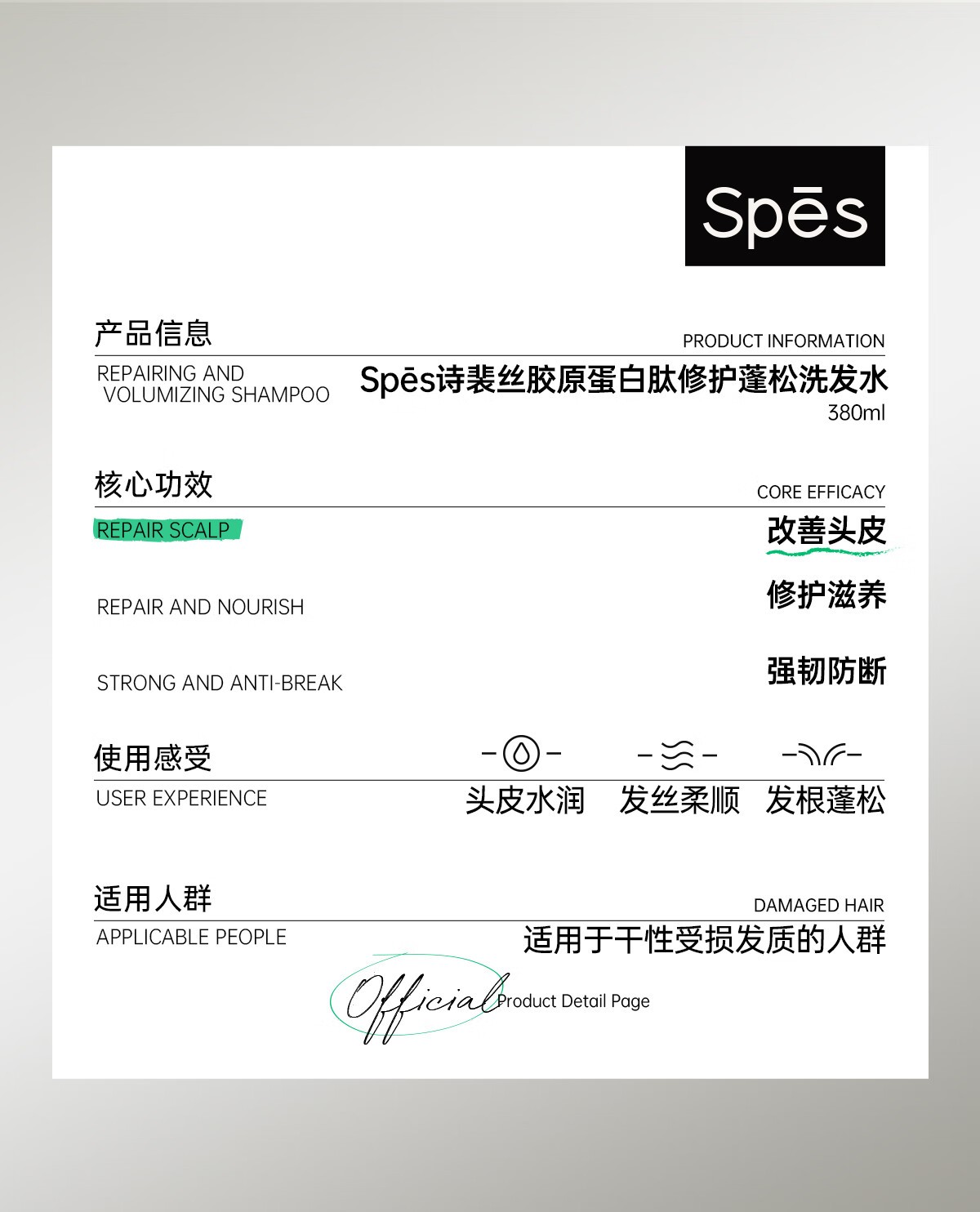 Spēs 诗裴丝胶原蛋白修护蓬松洗发露 380ml