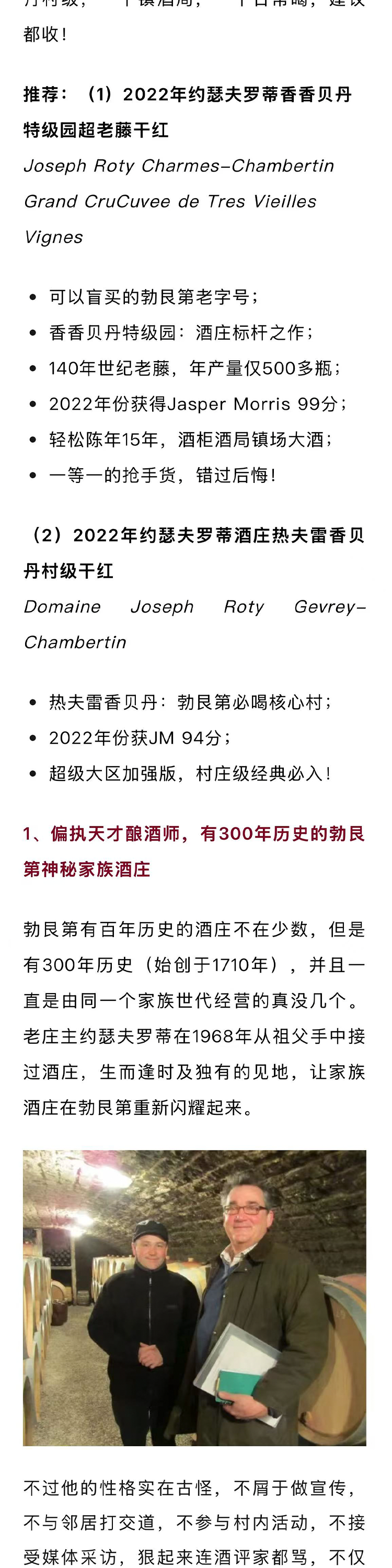 【JM94分】法国勃艮第约瑟夫罗蒂酒庄2022年热夫雷香贝丹村级干红/2021年马沙内村级黑皮诺干红