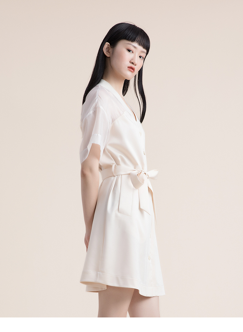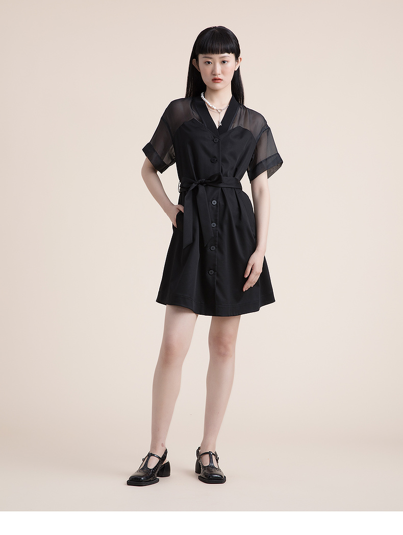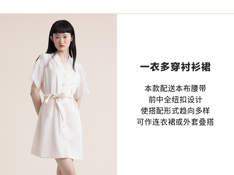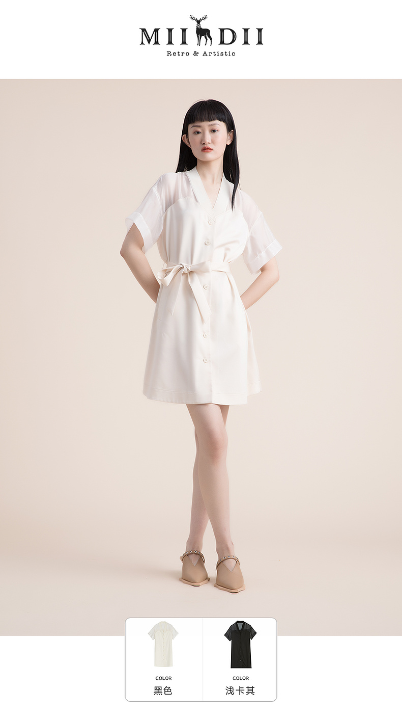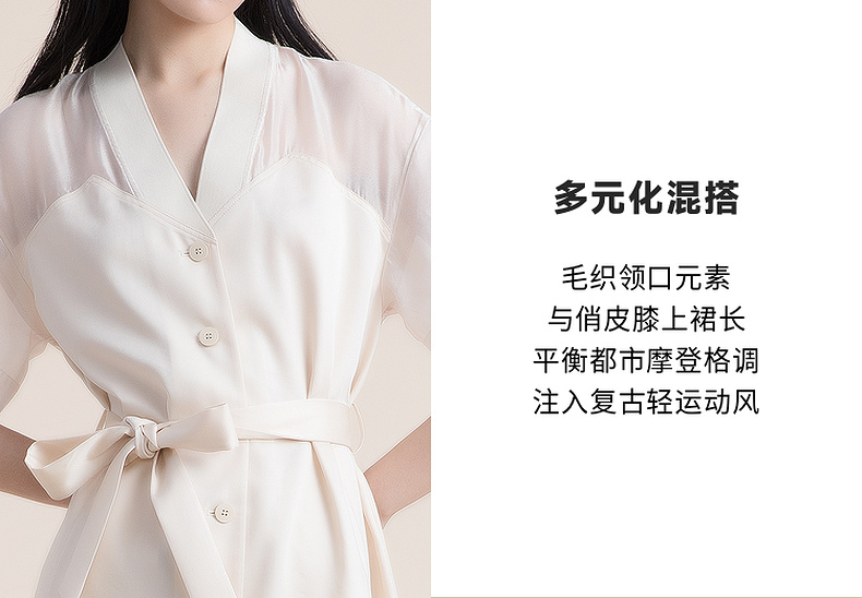 谜底2022夏新款复古质感舒适收腰显瘦天丝短袖感连衣裙222ML0551