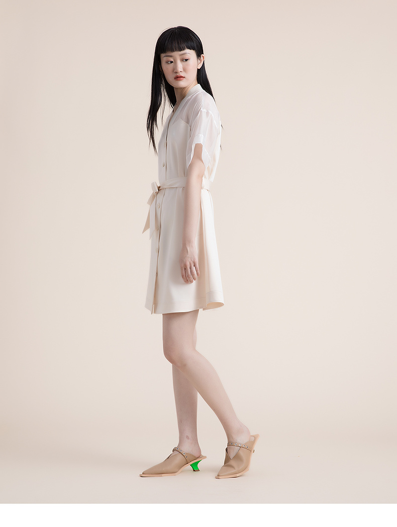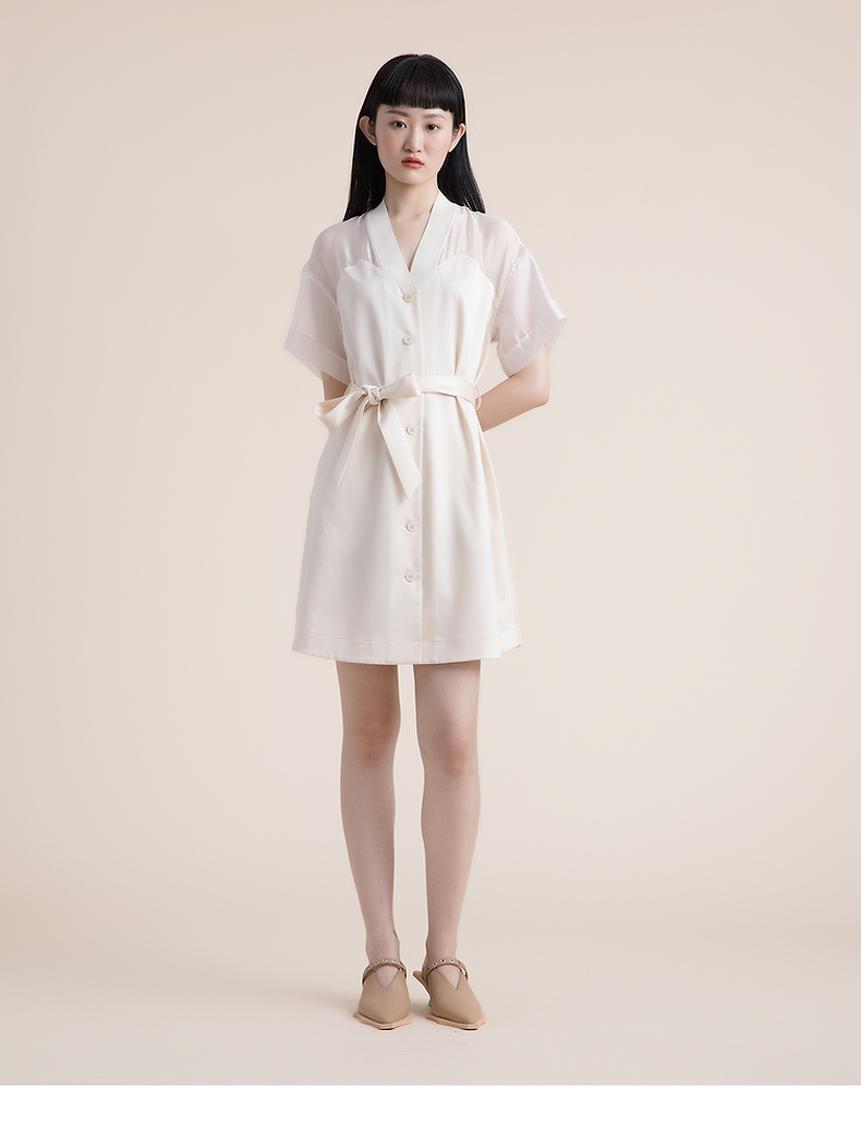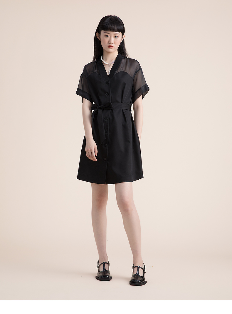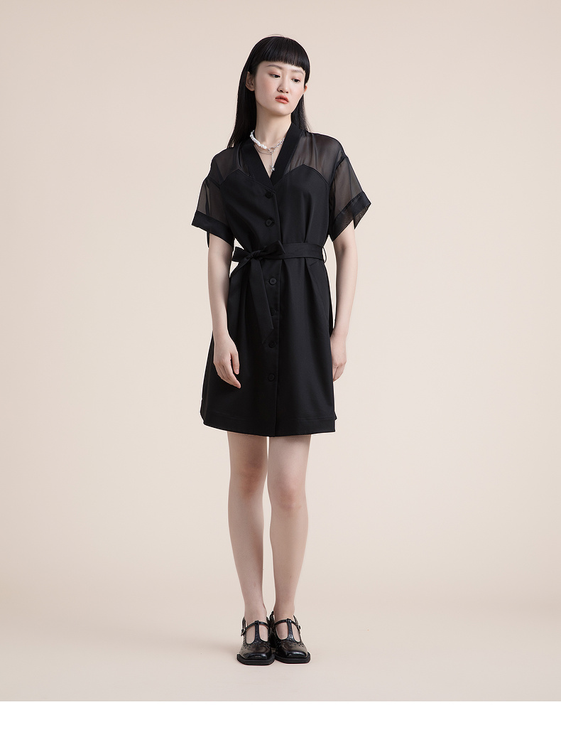 谜底2022夏新款复古质感舒适收腰显瘦天丝短袖感连衣裙222ML0551