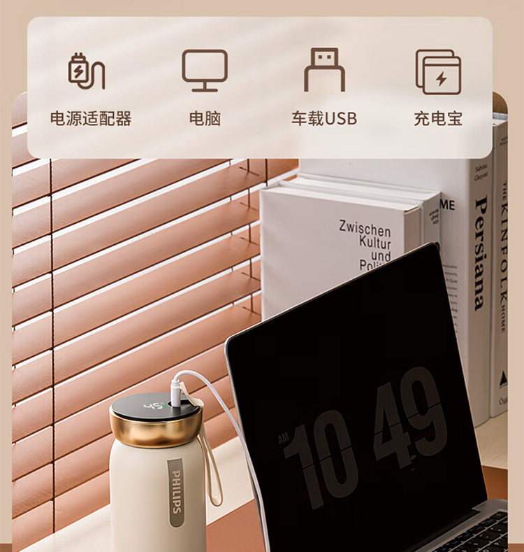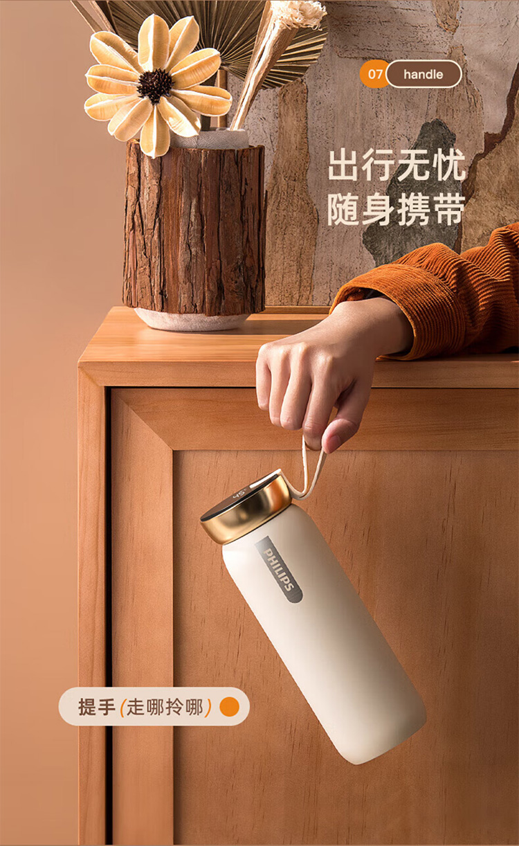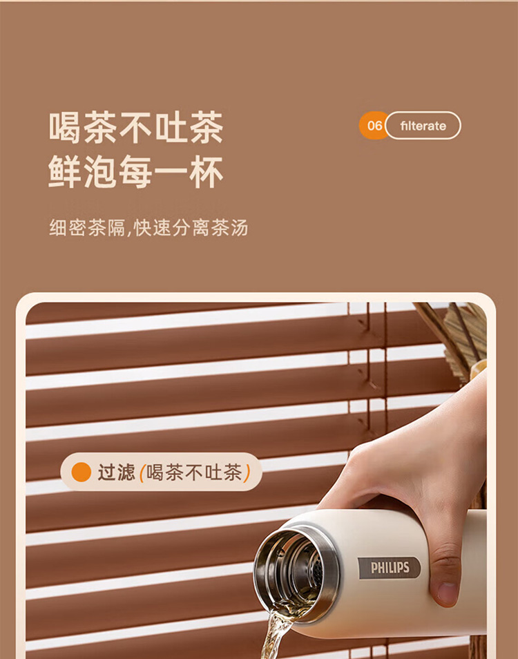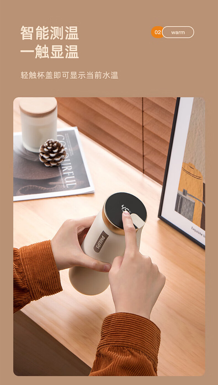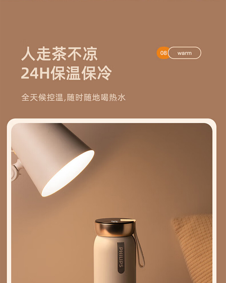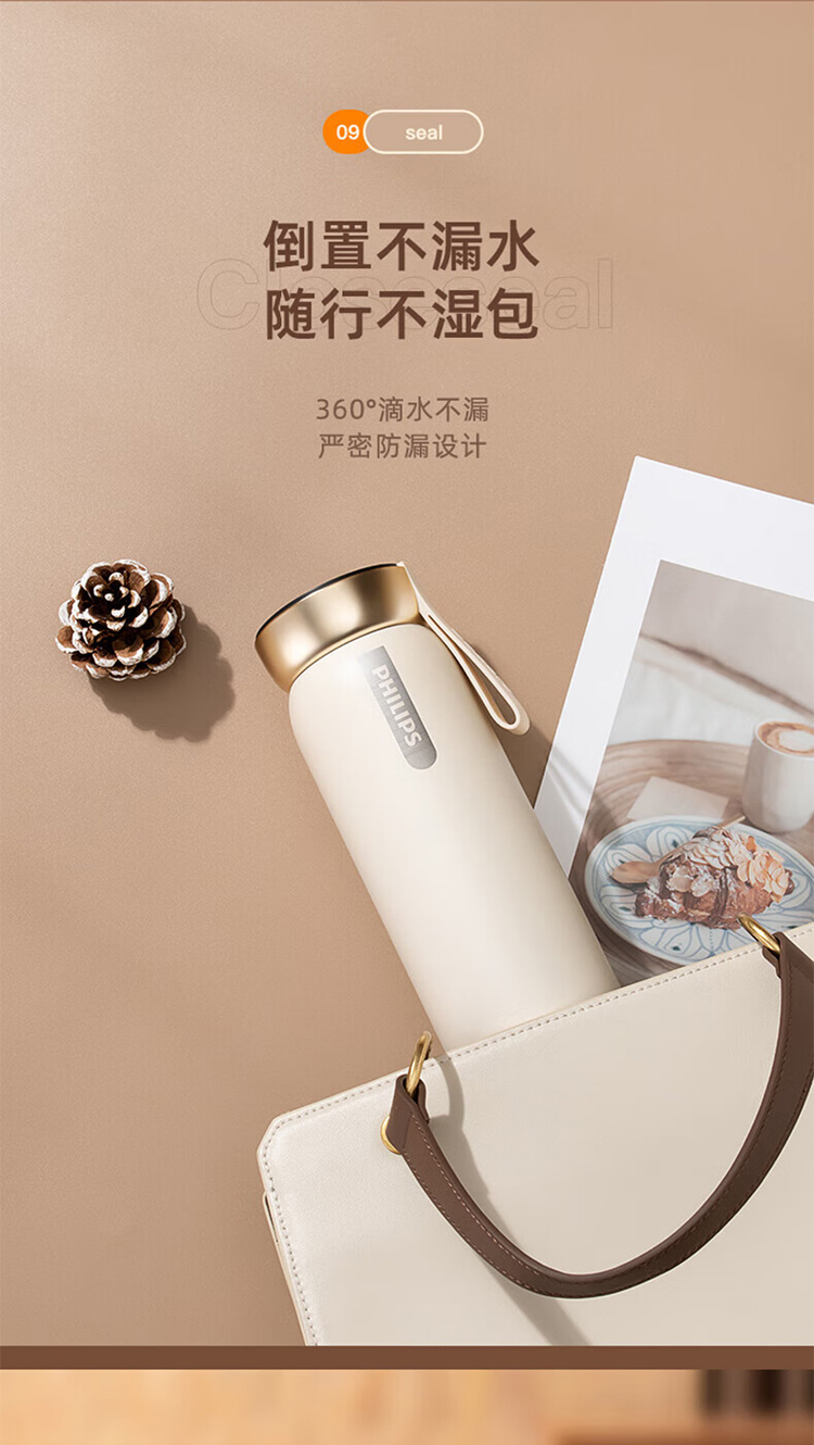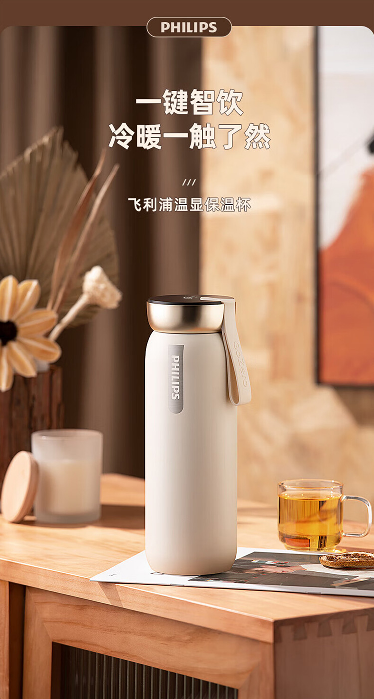 飞利浦PHILIPS智能温显可充电保温杯316不锈钢茶水分离水杯 AWP2775