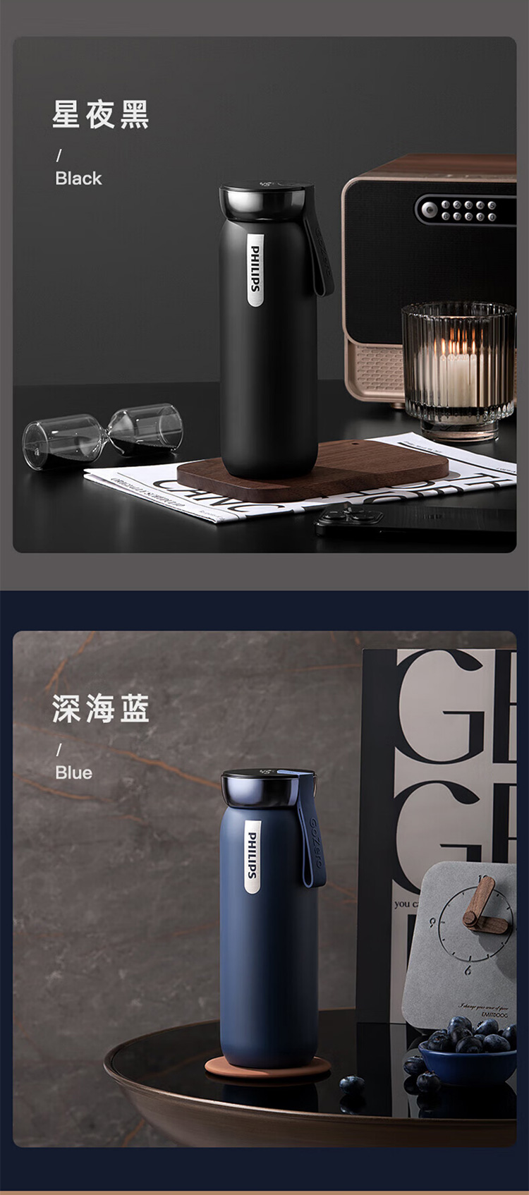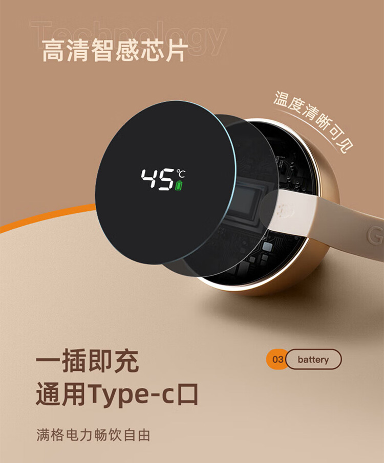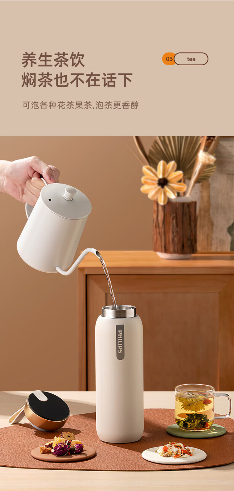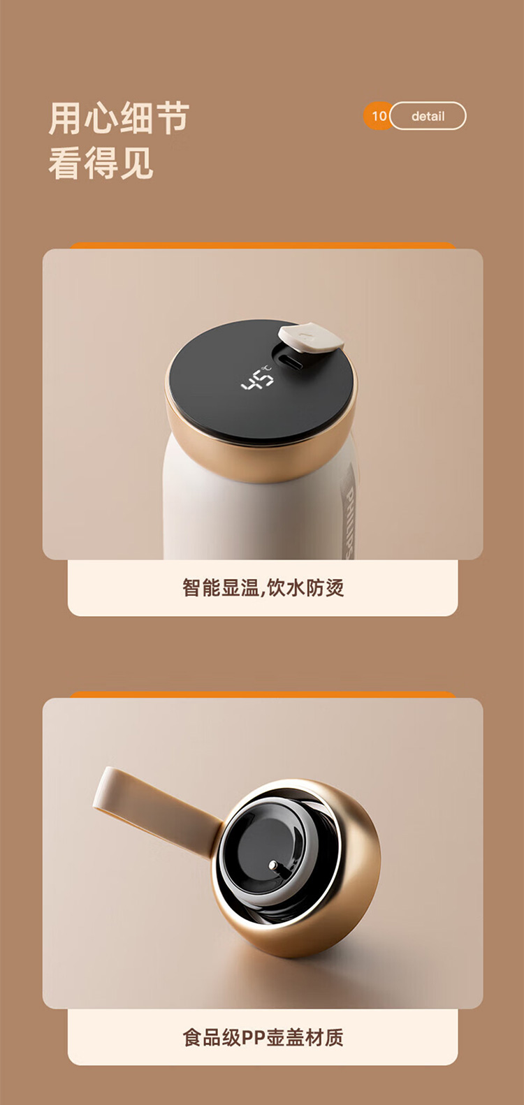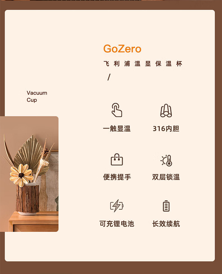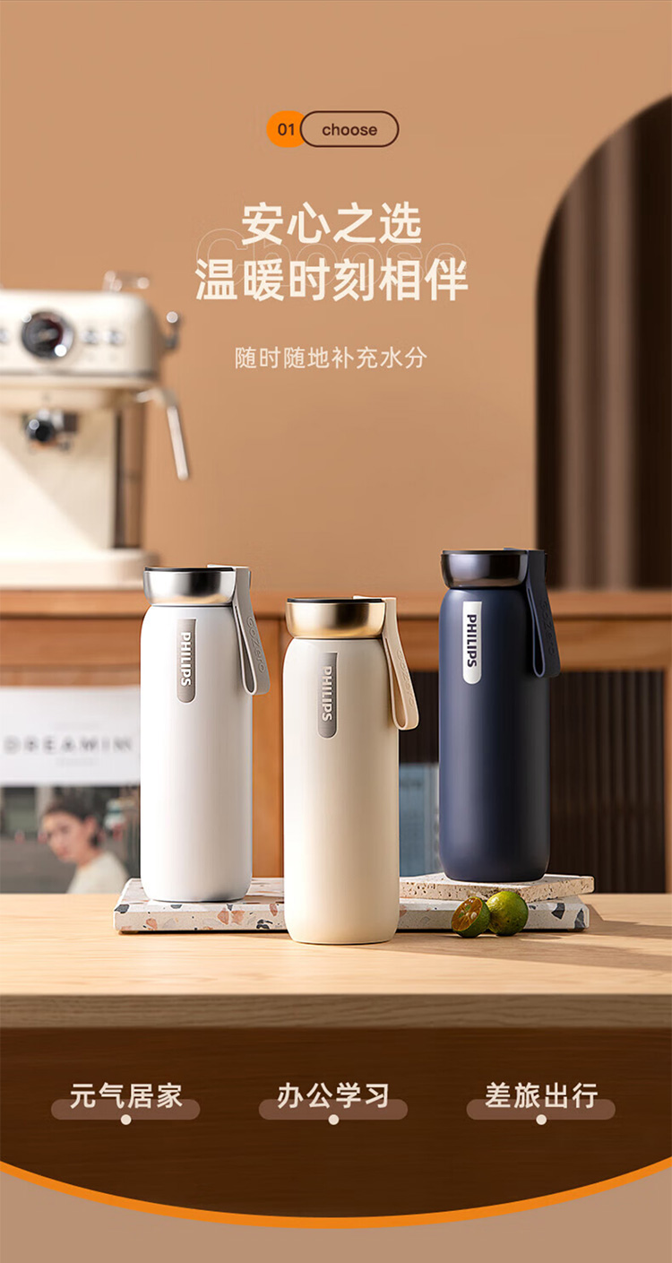飞利浦PHILIPS智能温显可充电保温杯316不锈钢茶水分离水杯 AWP2775