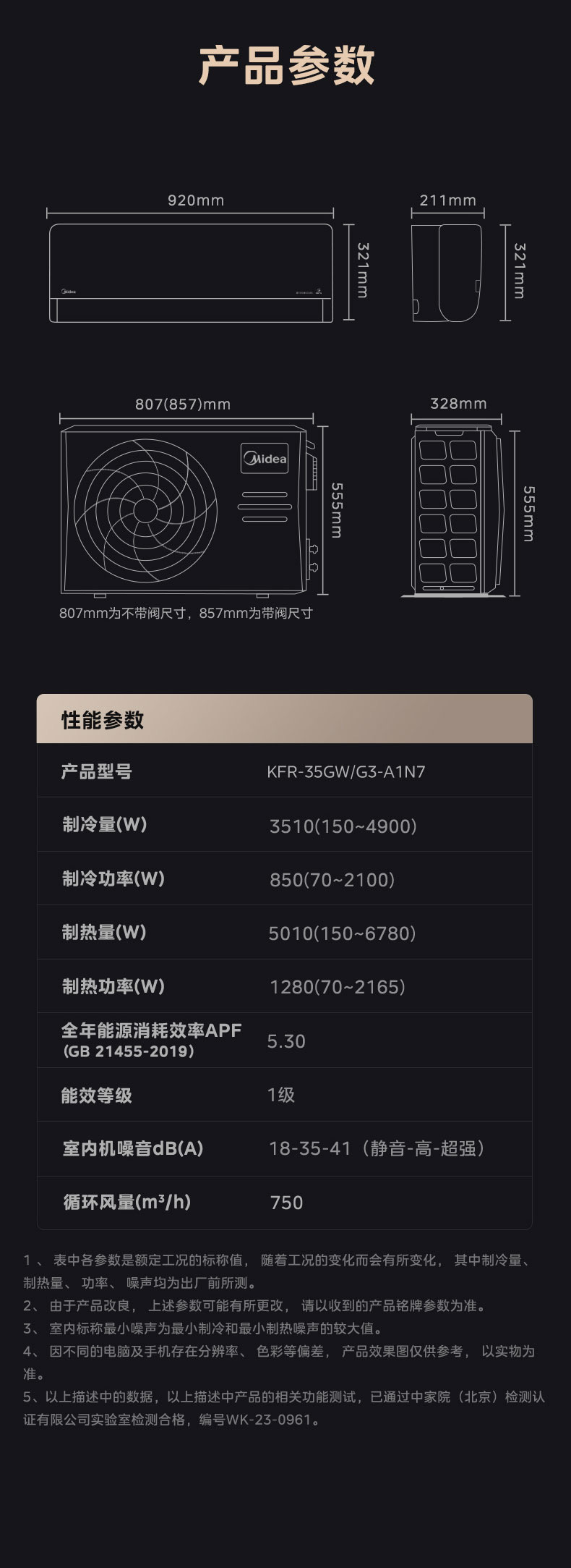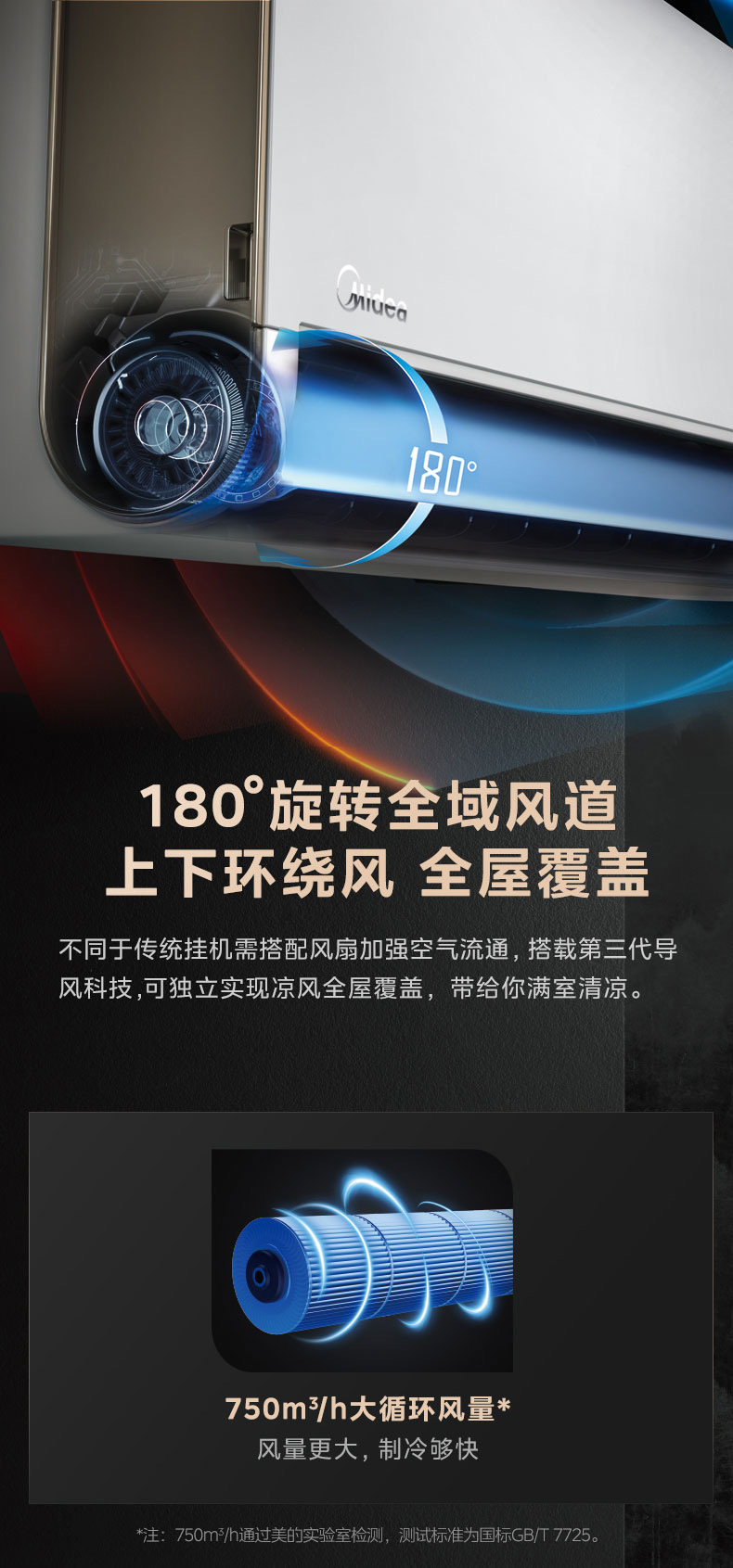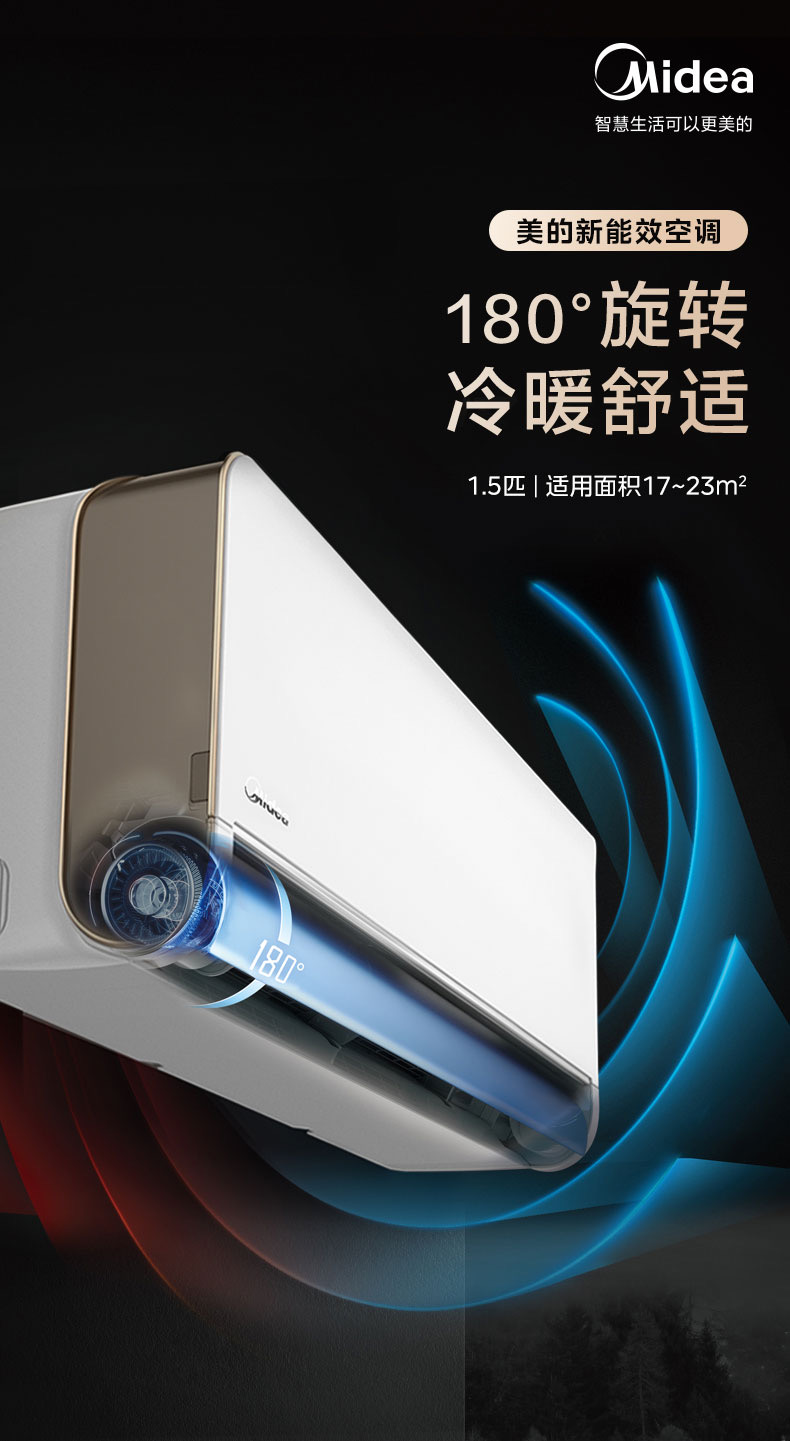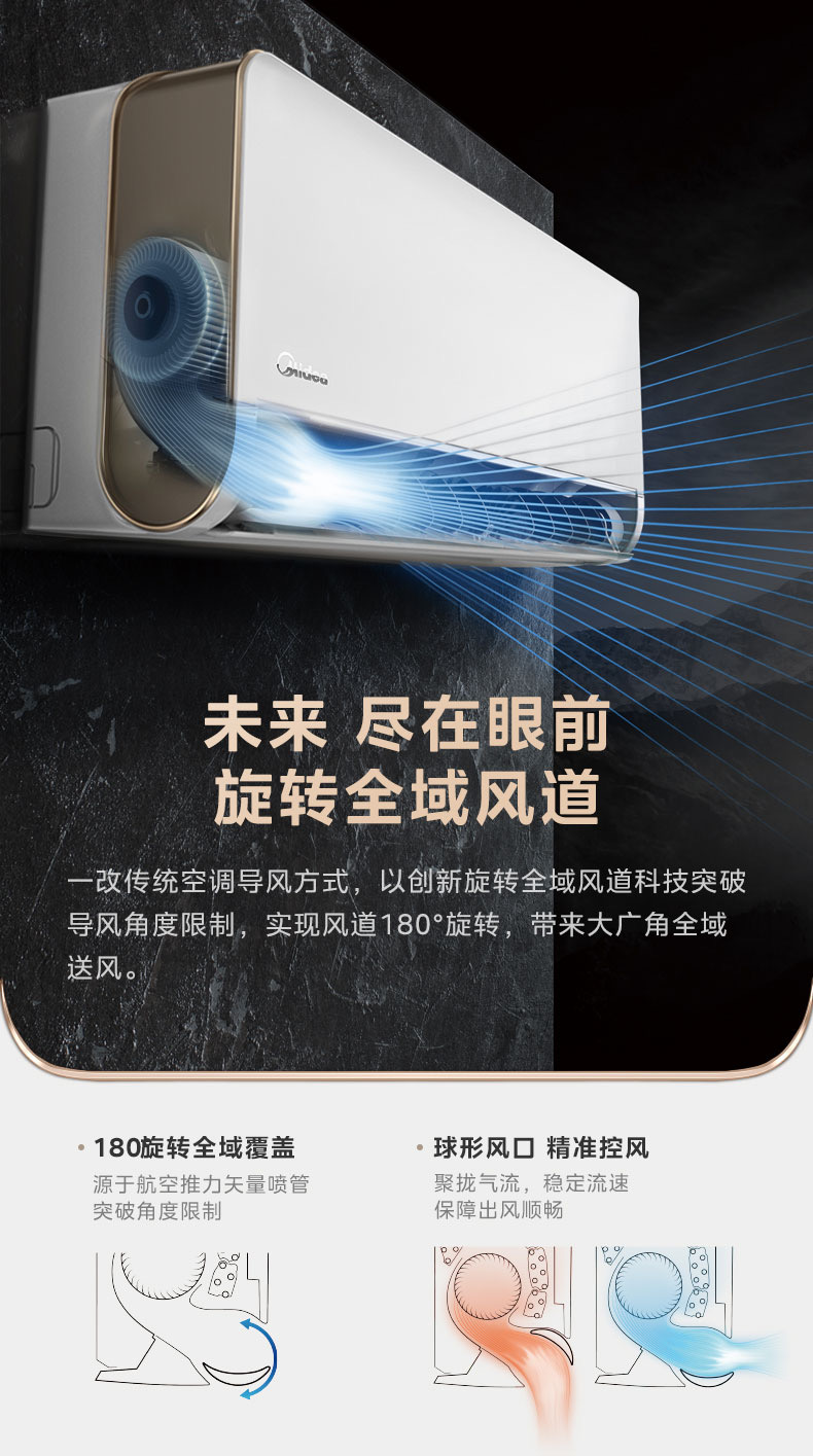 美的空调1.5匹家用变频一级能效 180度旋转全域风道KFR-35GW/G3-A1N7 变频 分体套机 极地白 美的