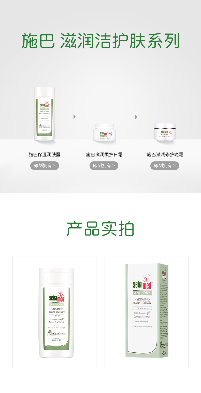 【中欧班列】德国施巴滋润系列保湿润肤露 原装进口滋润修护干燥肌肤清爽润肤露 200ml/瓶