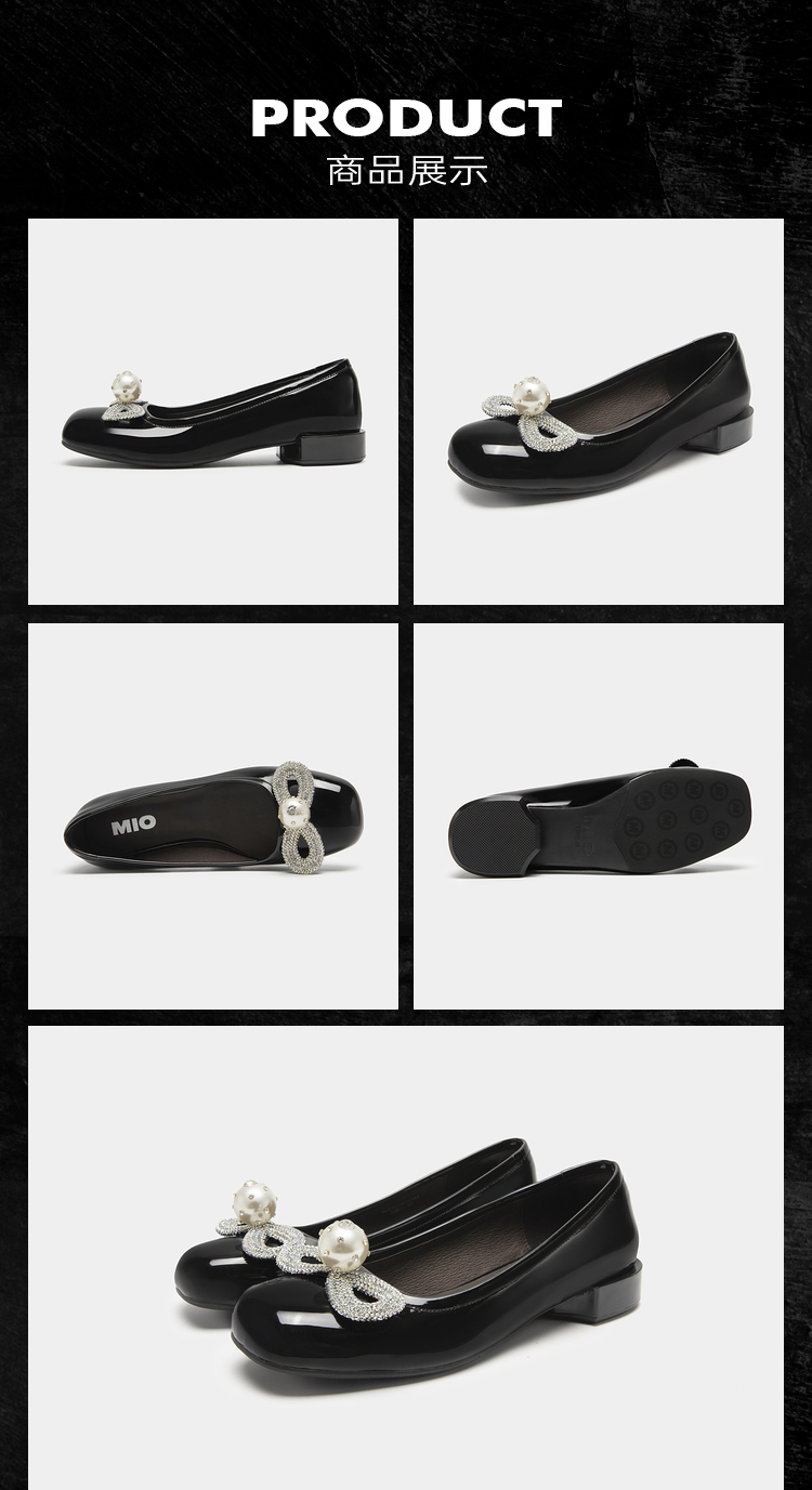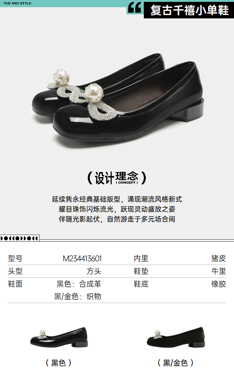 MIO米奥晚晚鞋方头复古千禧粗跟浅口单鞋女真皮一脚蹬女鞋小皮鞋M234413601