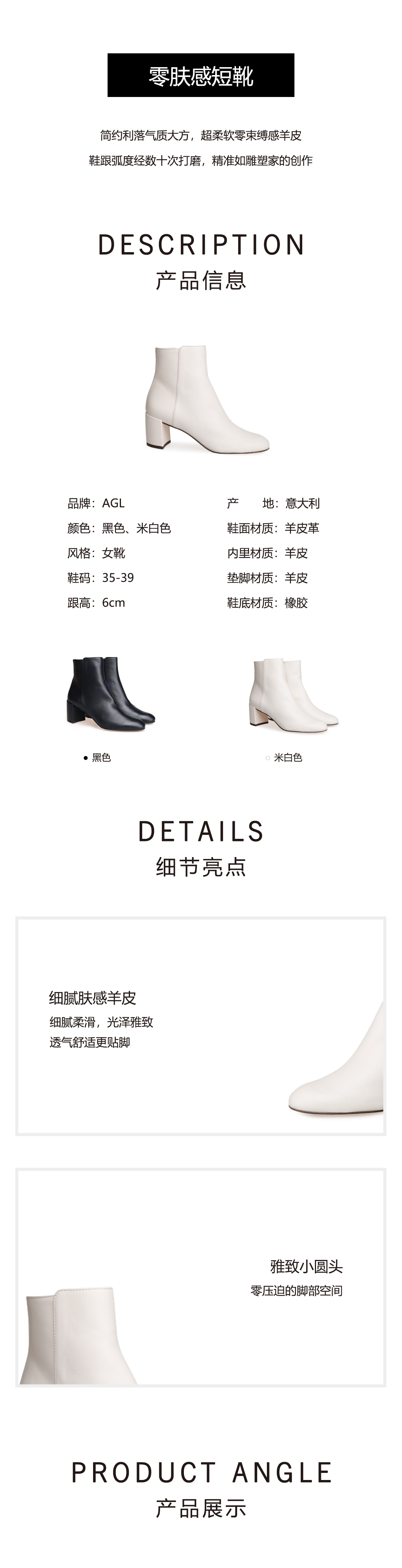 豪麟名鞋AGL女鞋短靴羊皮革D140622黑色