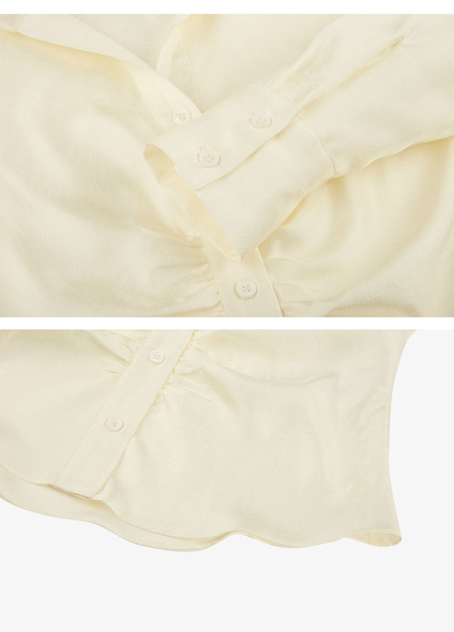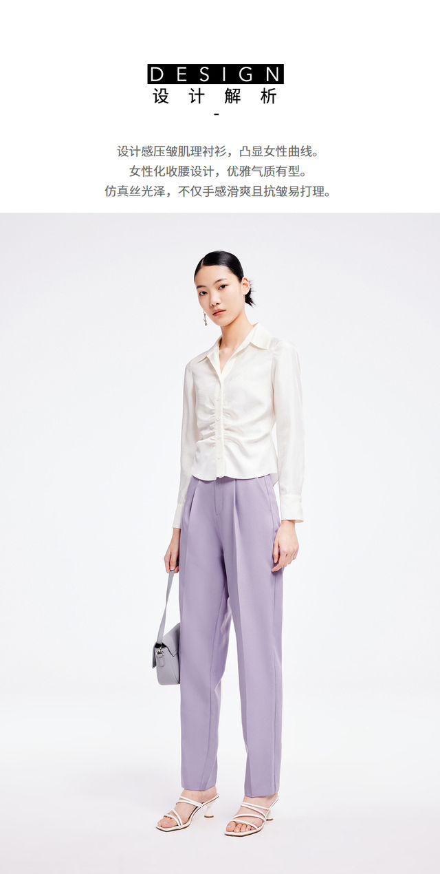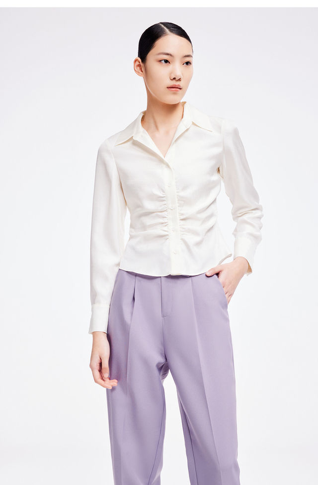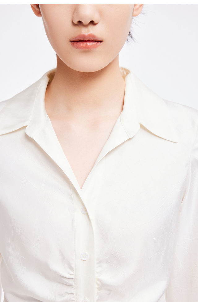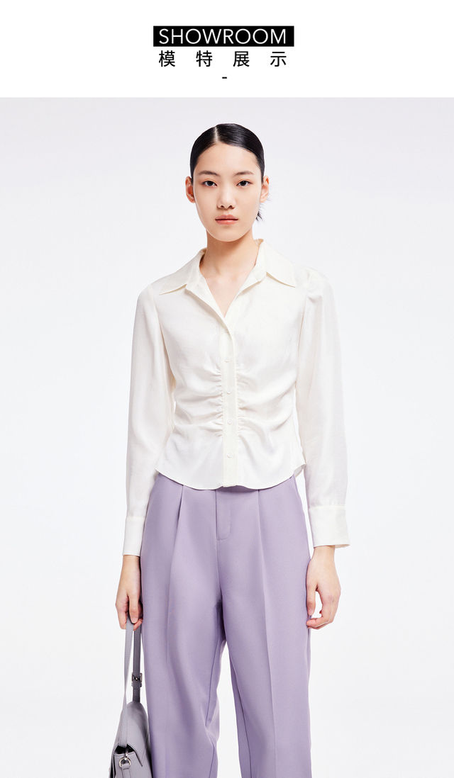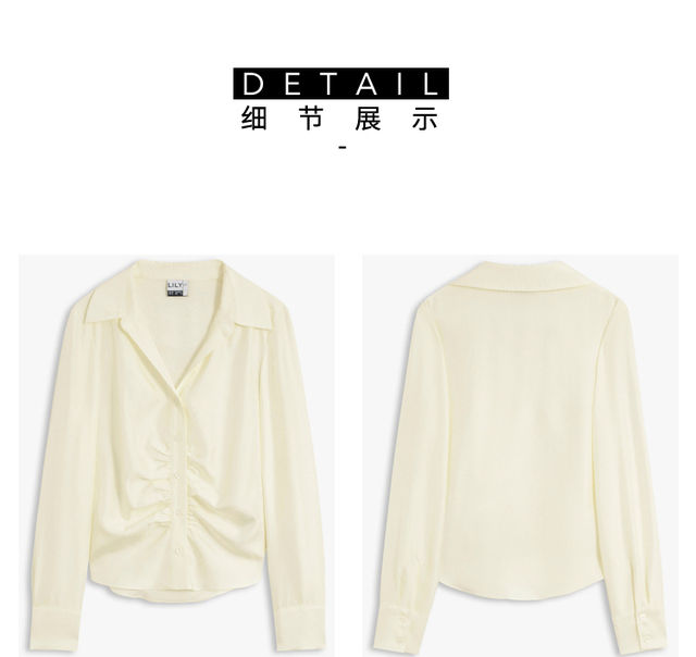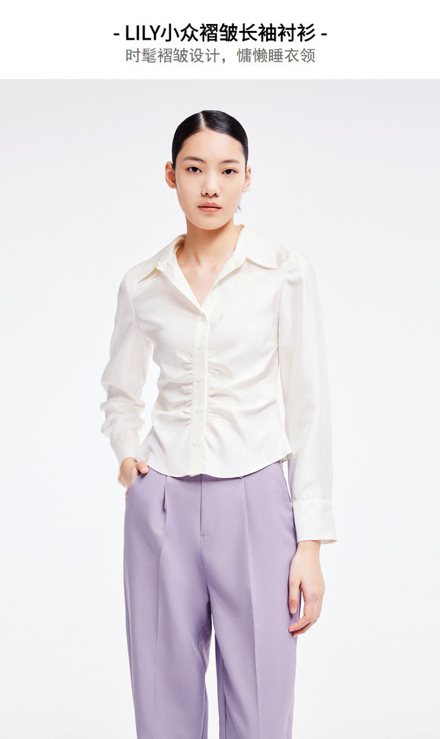 LILY2022夏新款女装小众设计感褶皱光泽气质长袖衬衫122220C4132
