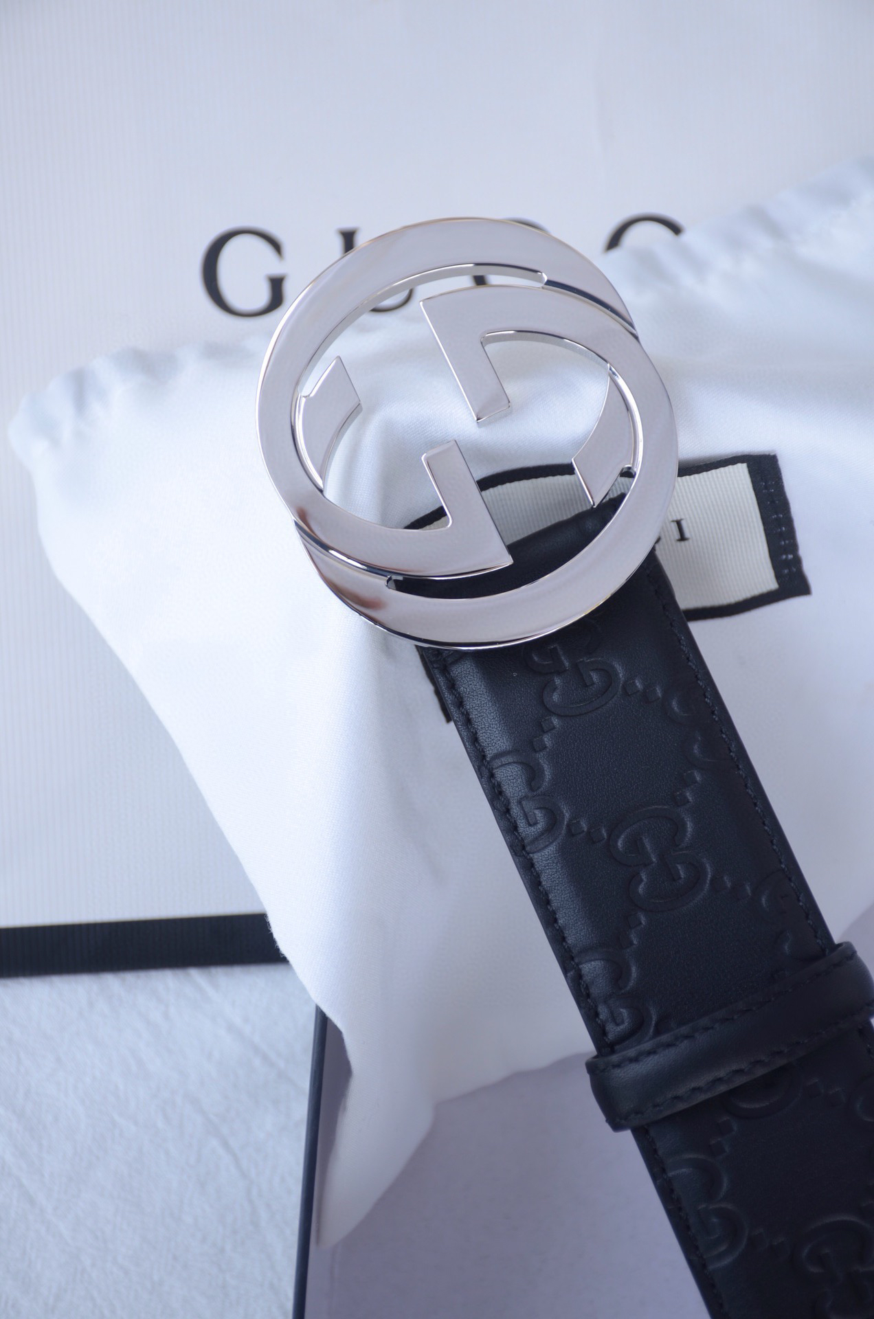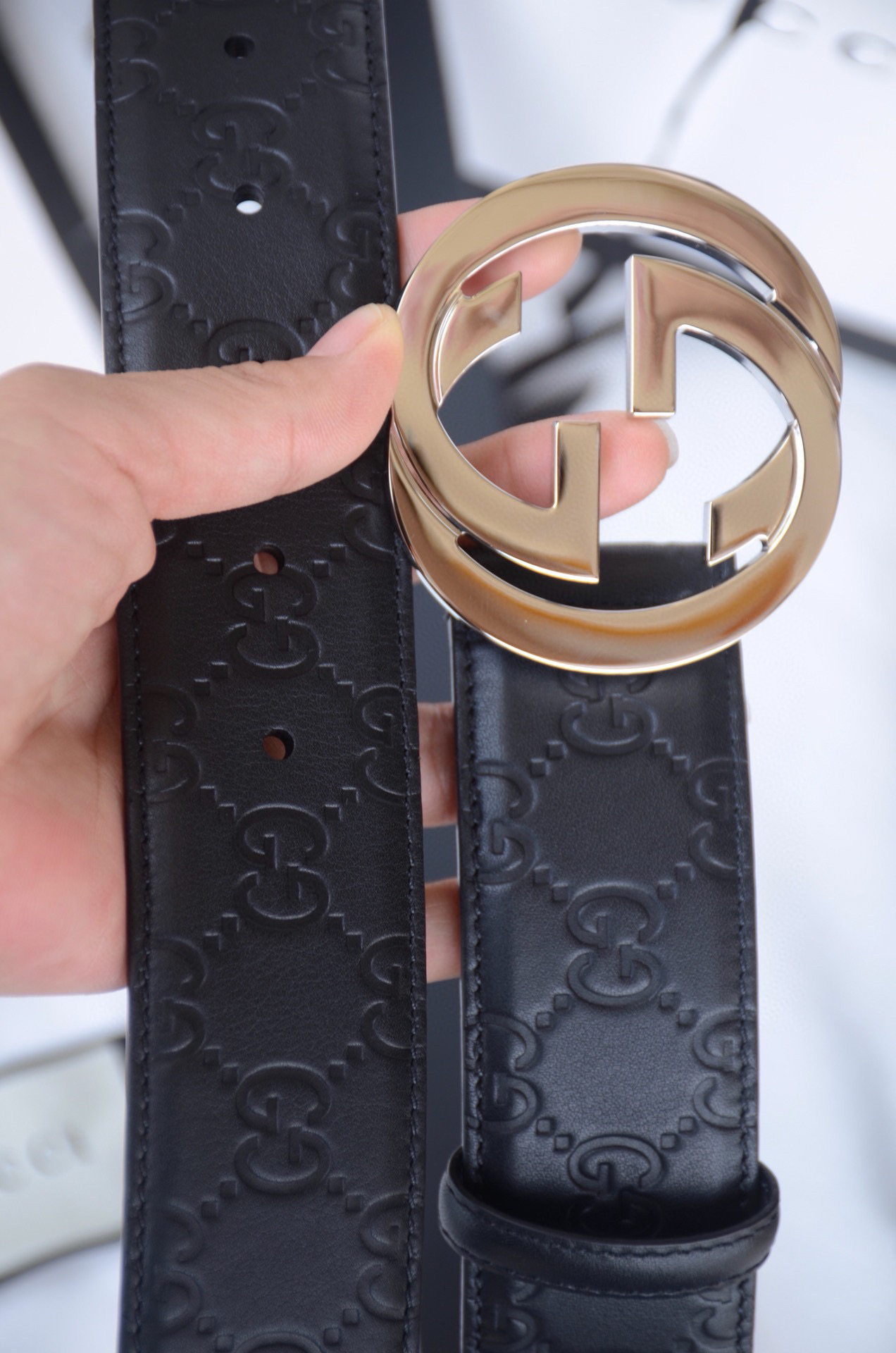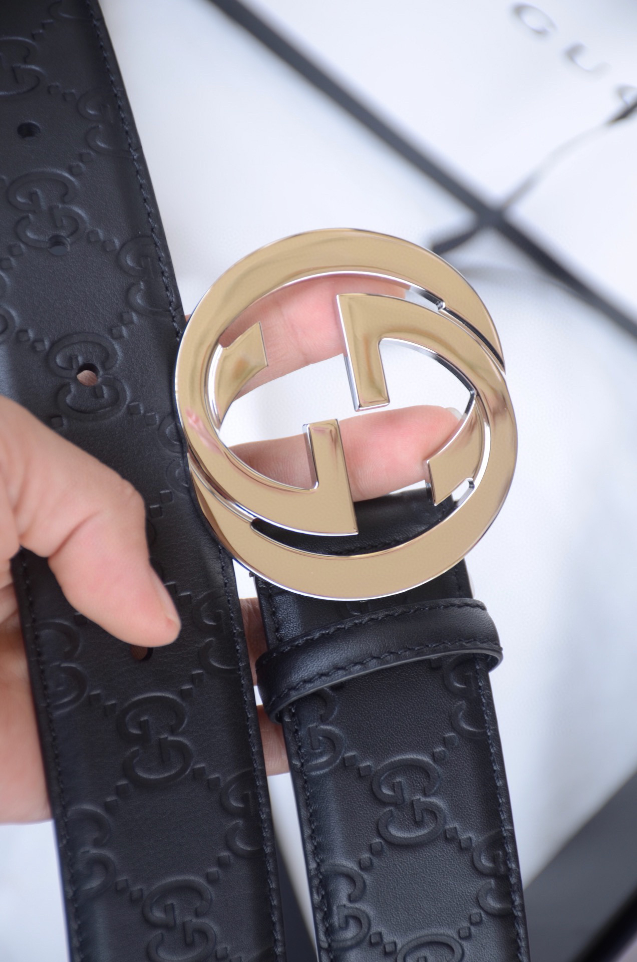 GG压花银扣单面男士腰带