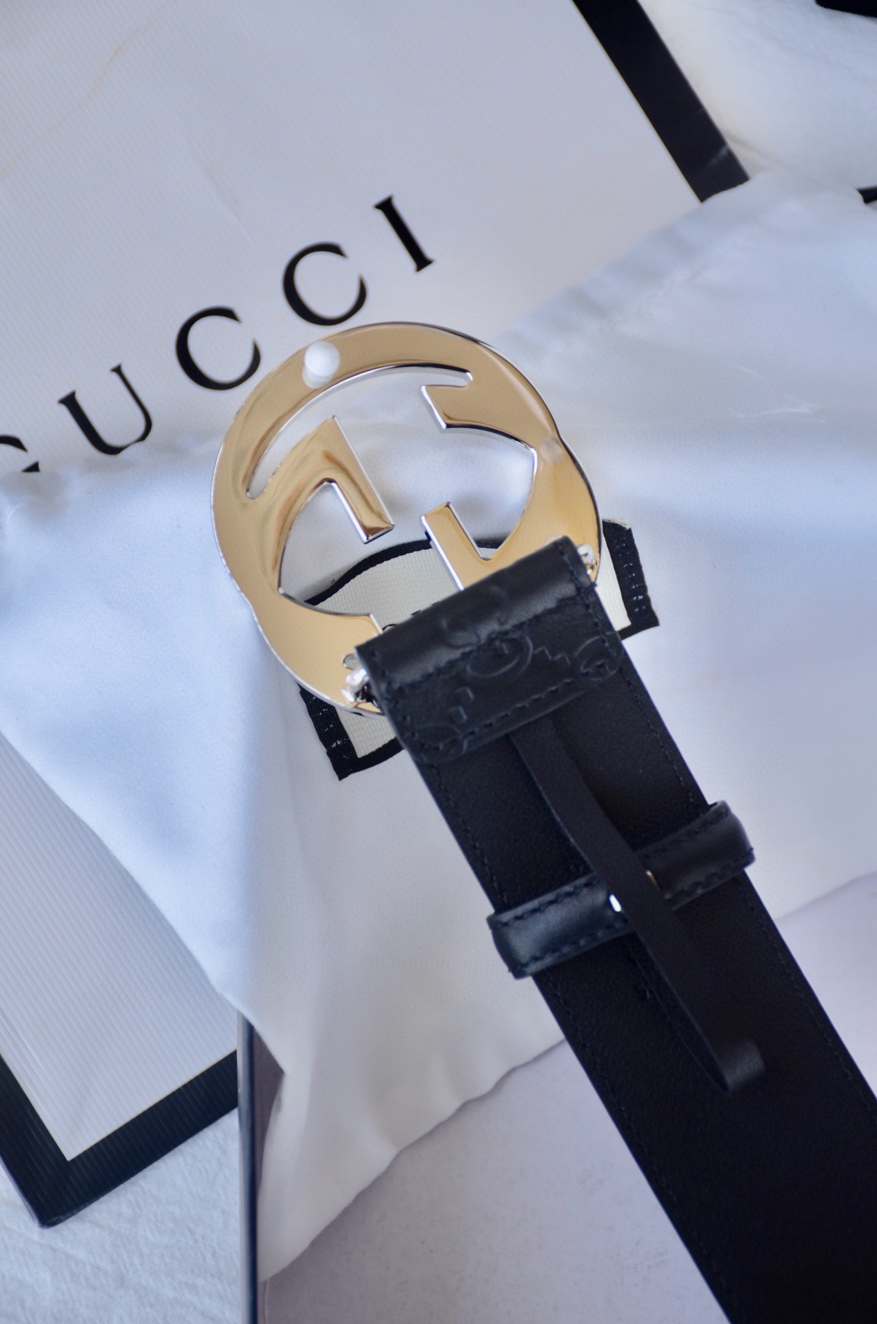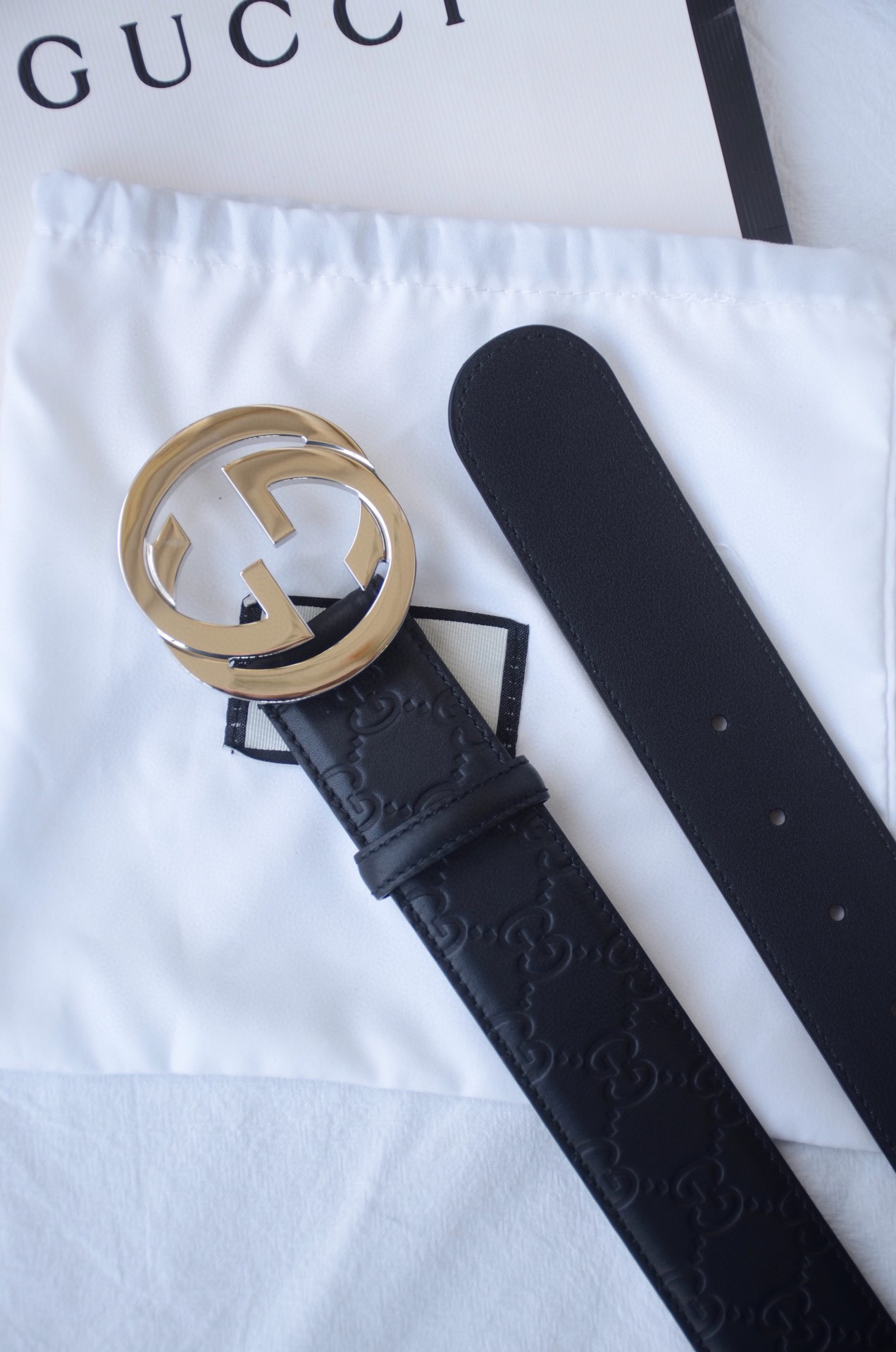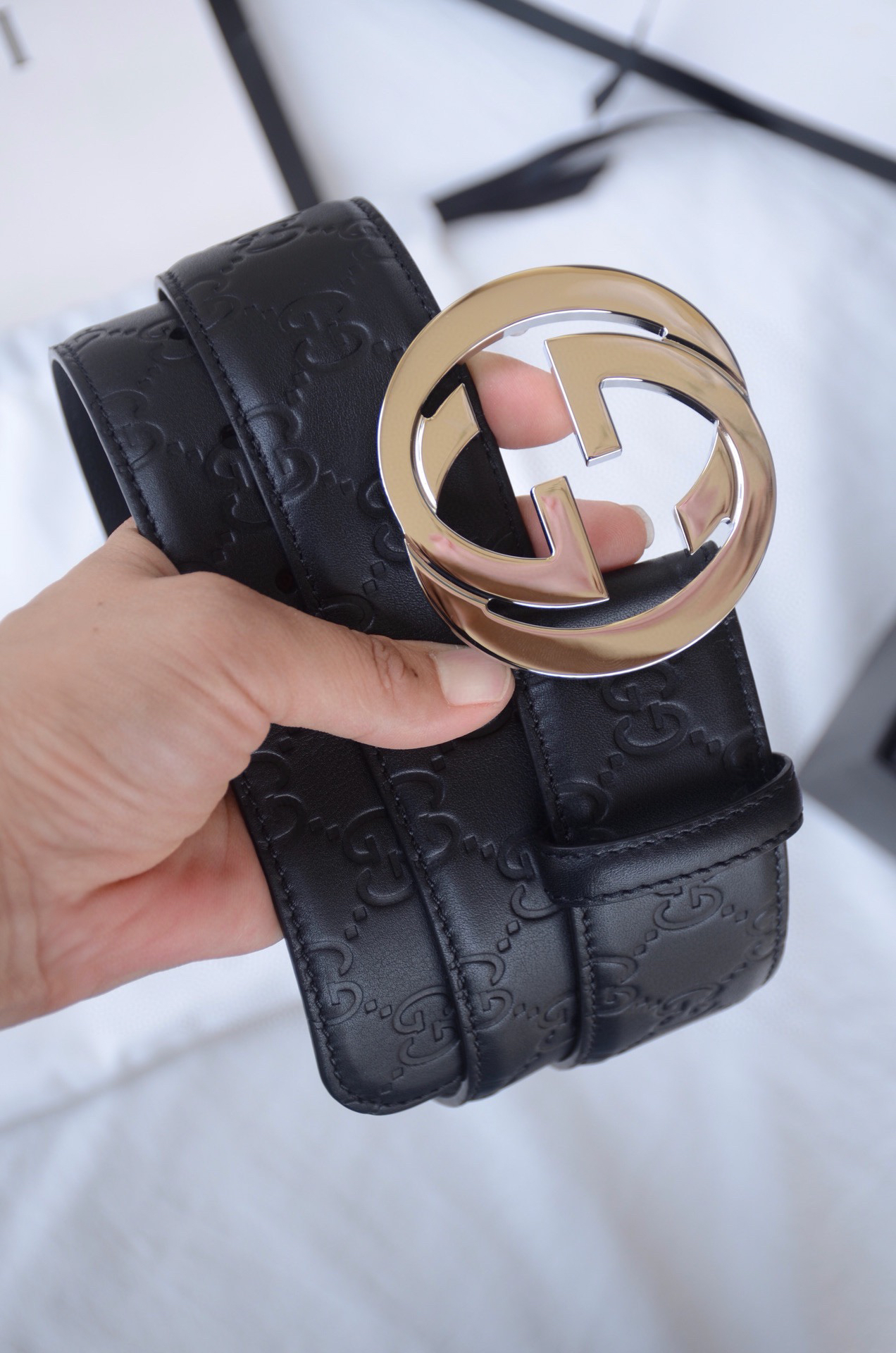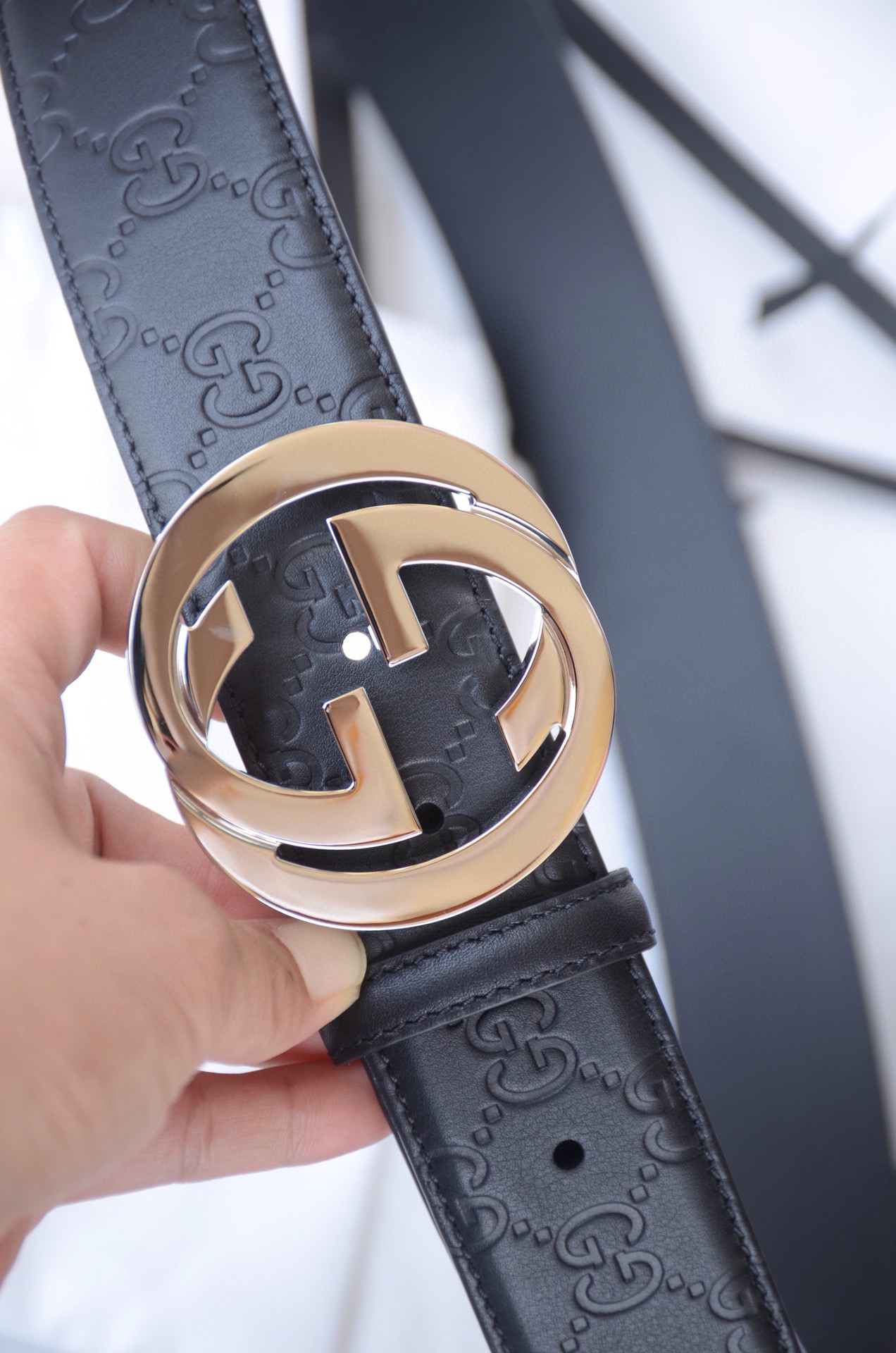GG压花银扣单面男士腰带