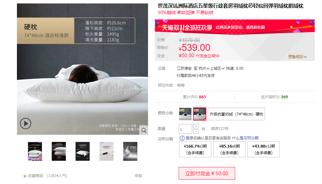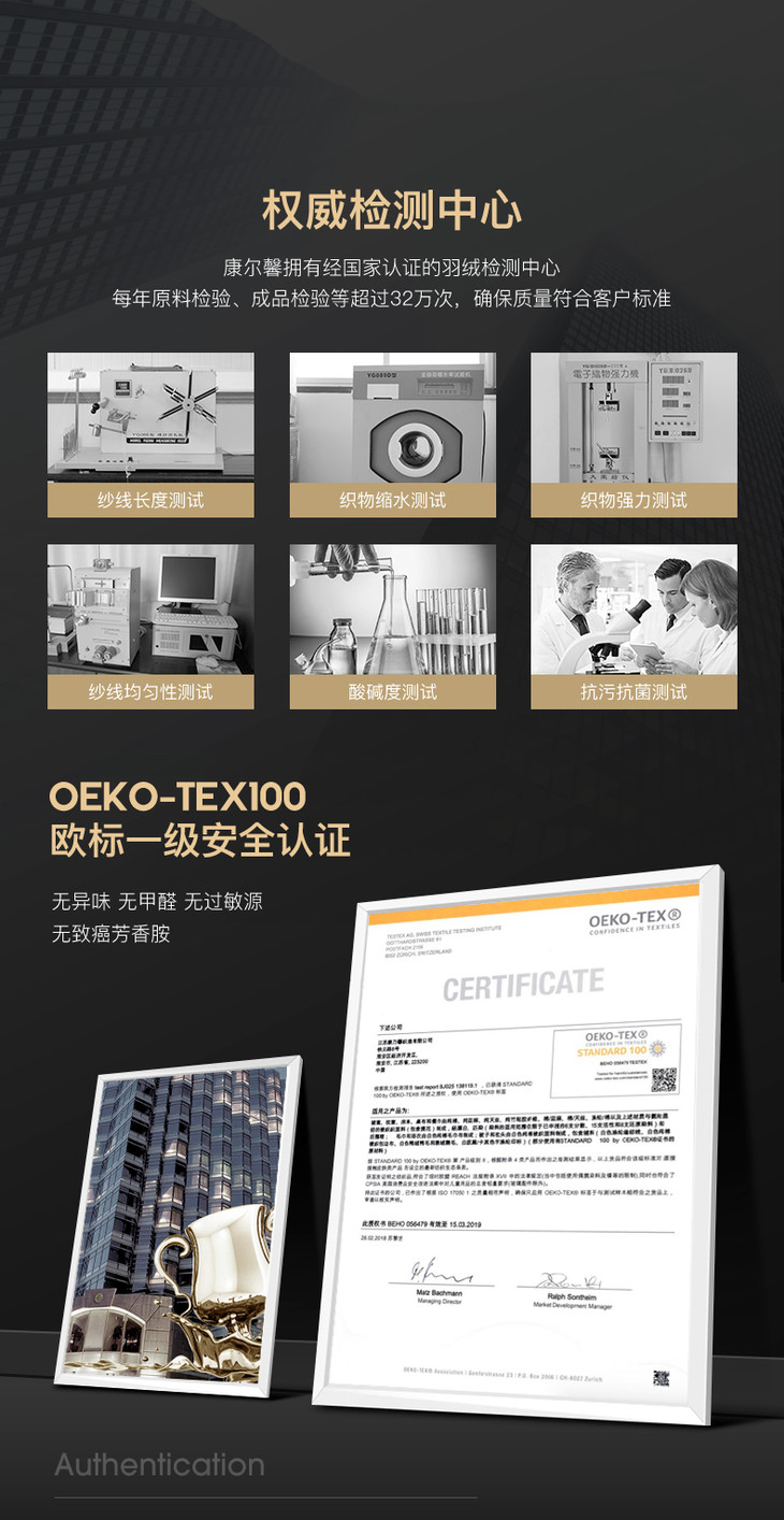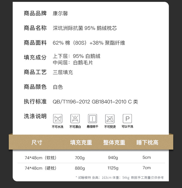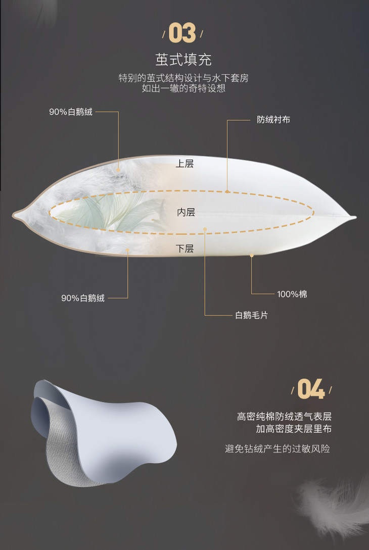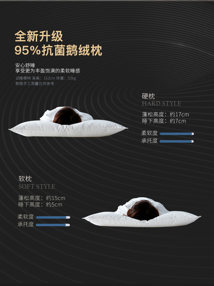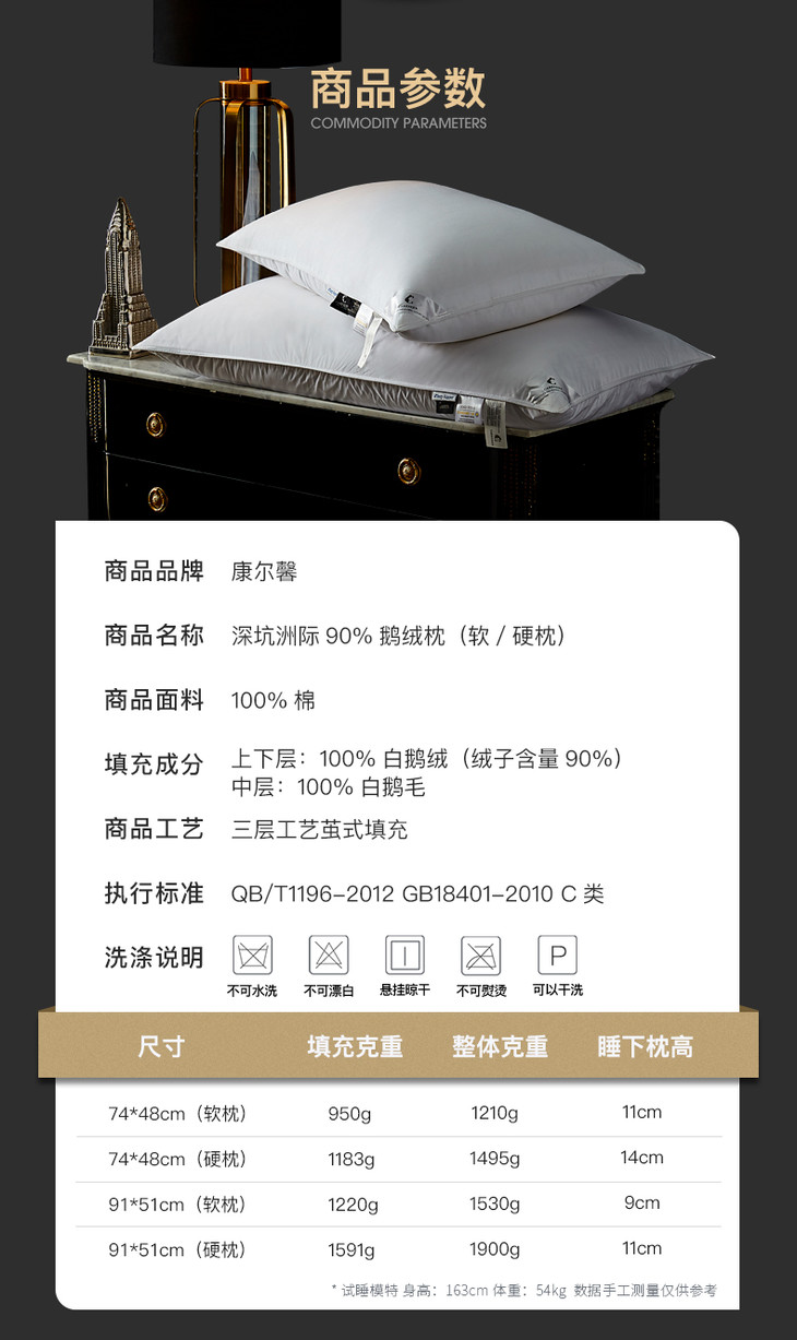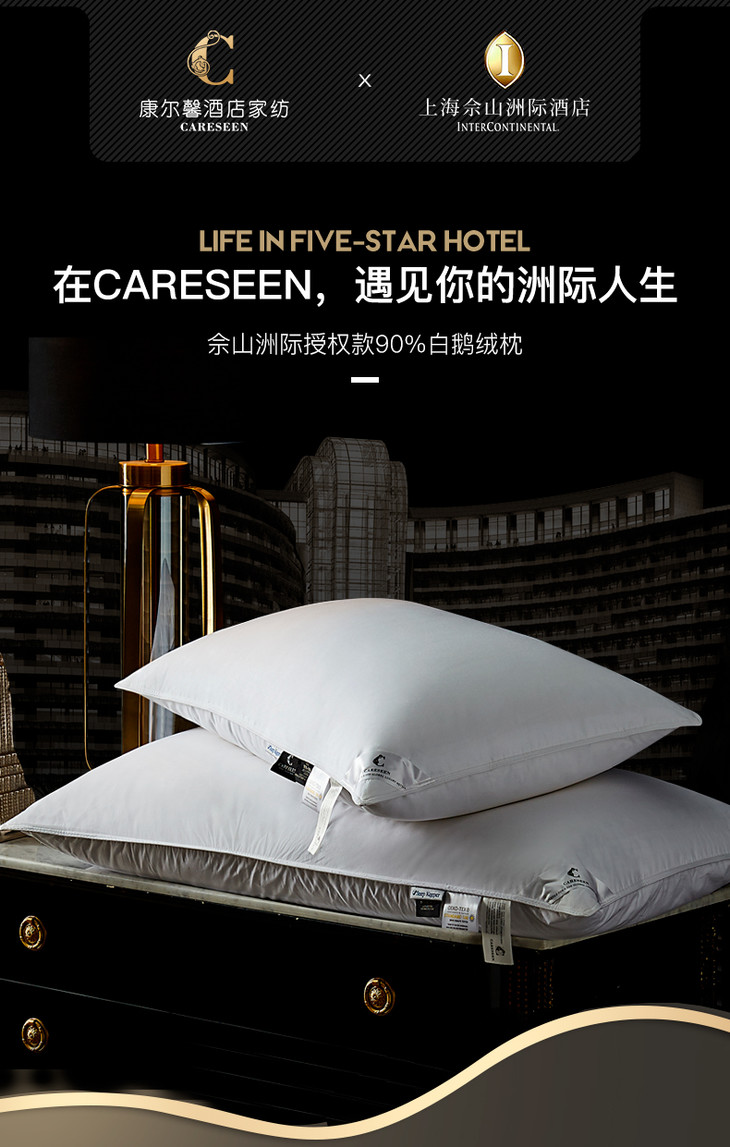 康尔馨世茂深坑洲际授权款90白鹅绒高密面料欧标一级安全认证羽绒枕芯