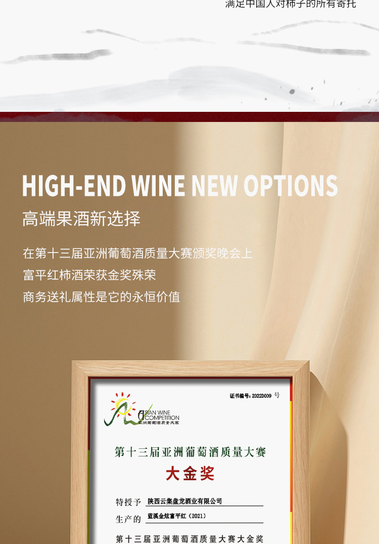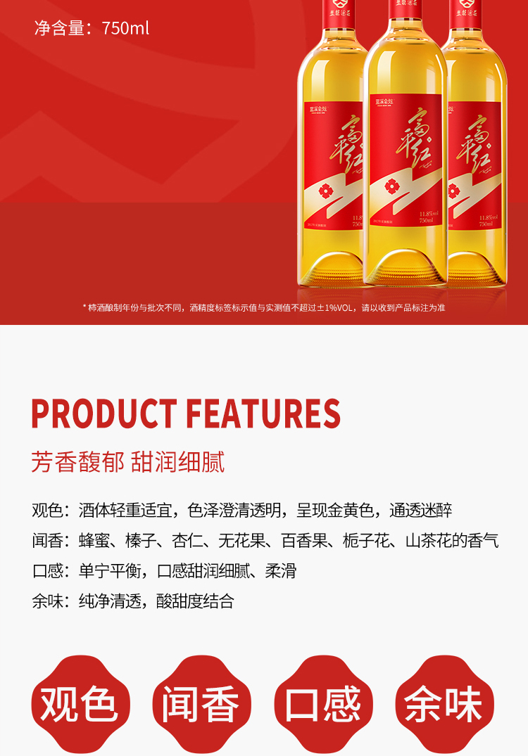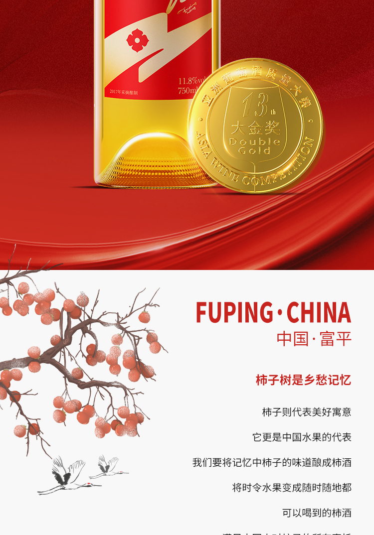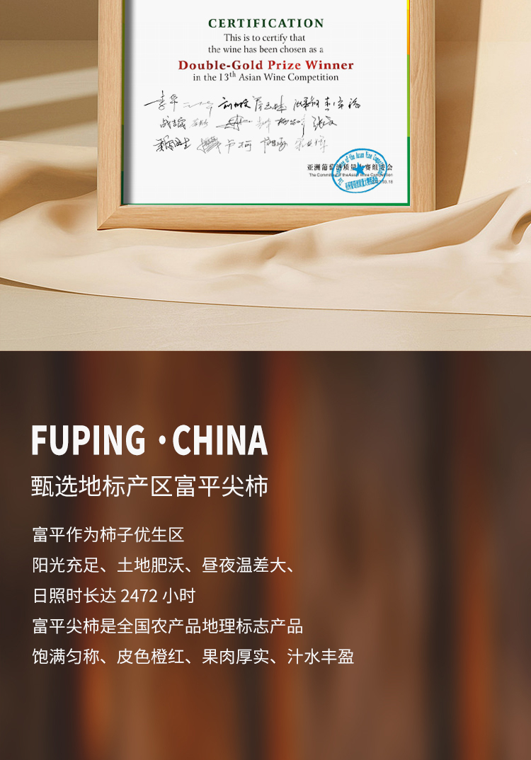 【金奖富平红】蓝溪金炫 原酿柿子酒 甜白型 11.8%vol 750ml