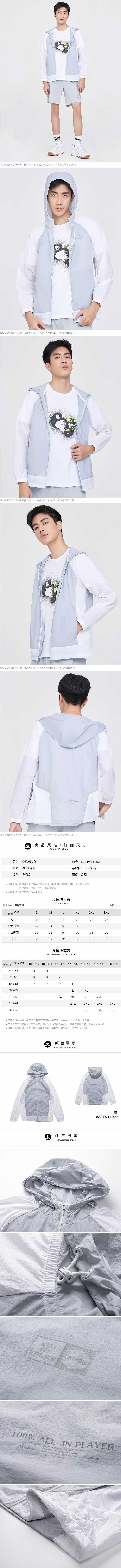 KELME卡尔美梭织皮肤衣外套男2022夏季新款透气防晒连帽运动开衫6224WT1002